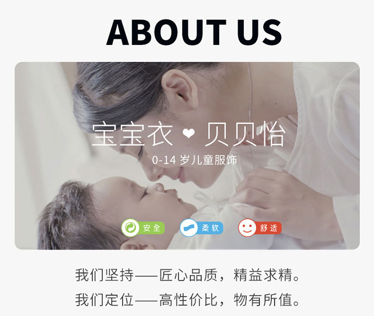- 贝贝怡专注0-6岁婴幼儿服饰,坚持安全、柔软、舒适的产品理念,为千万中国家庭提供超高品质、安全可靠的婴幼儿服饰产品,妈妈放心,宝宝开心!