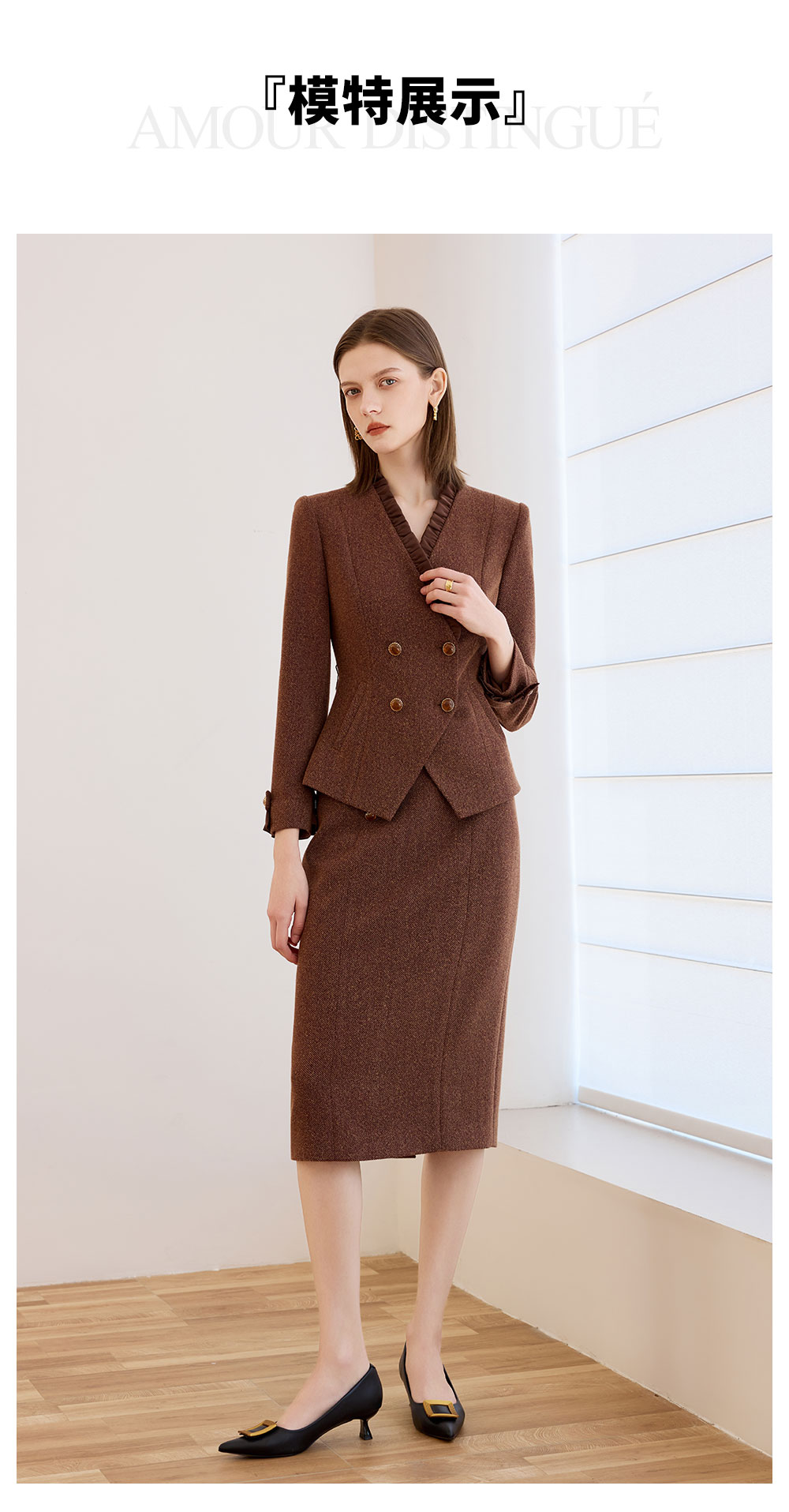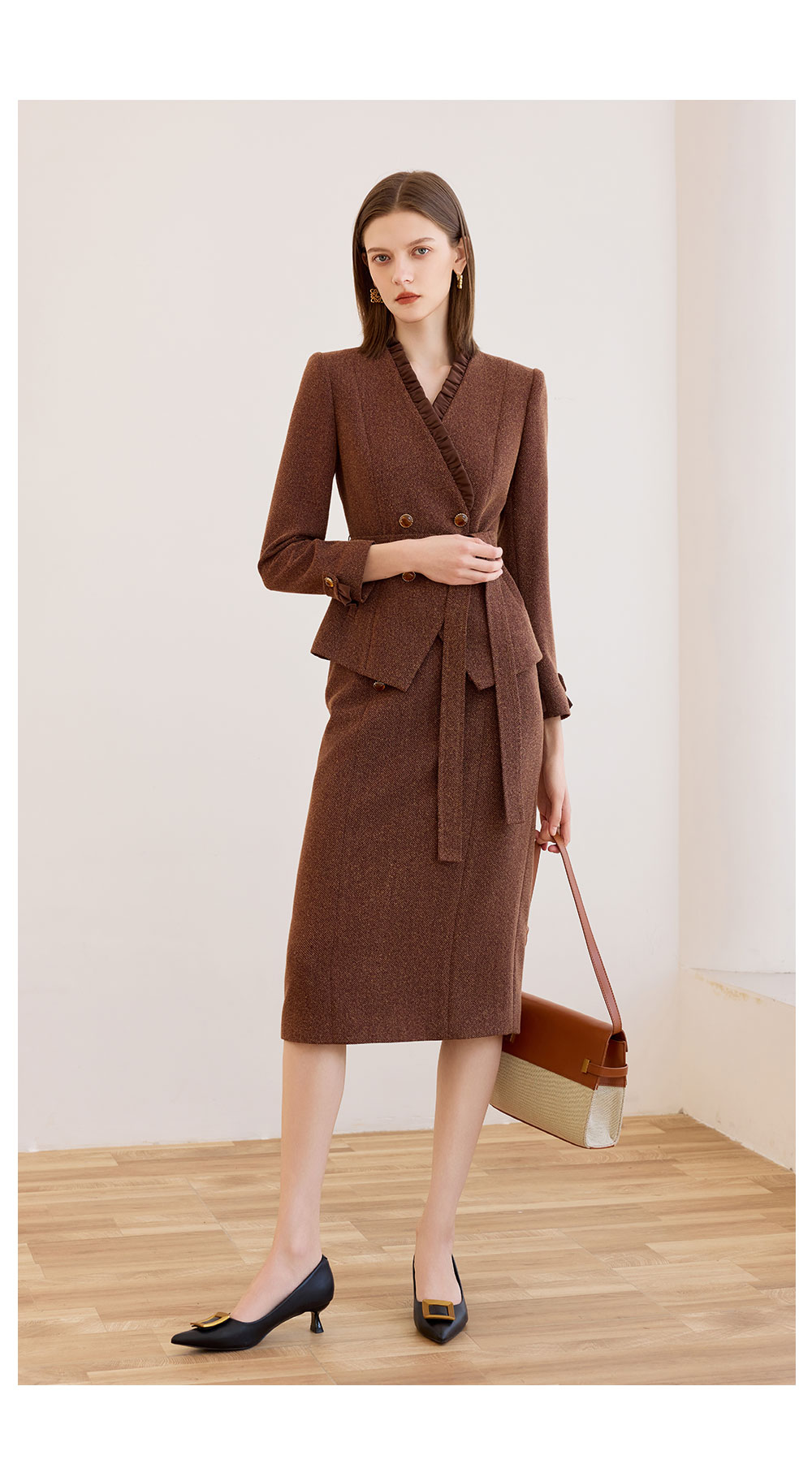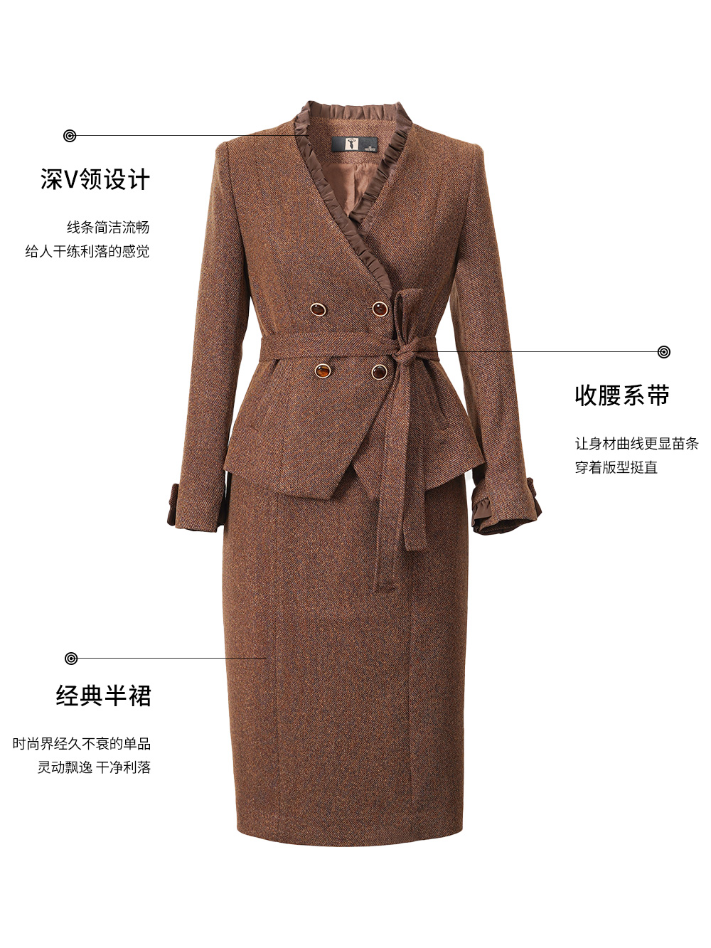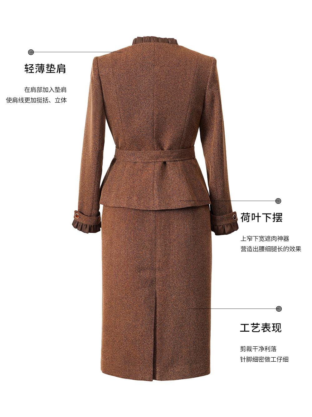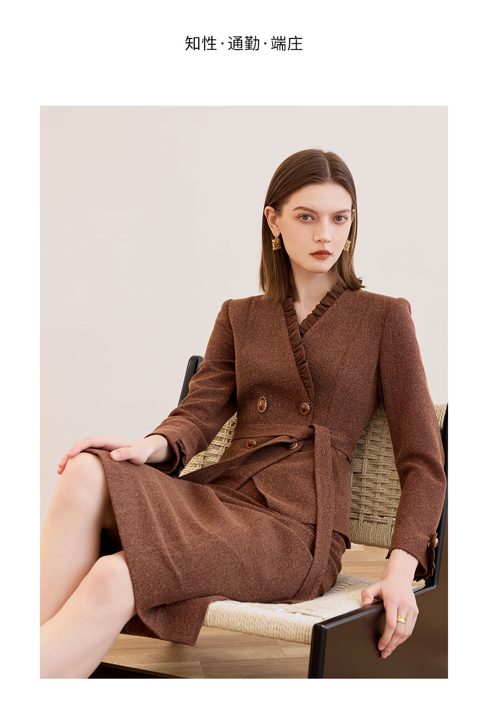 AD优雅时尚小香风毛呢套装系带2025秋冬高级感气质通勤职业装正装