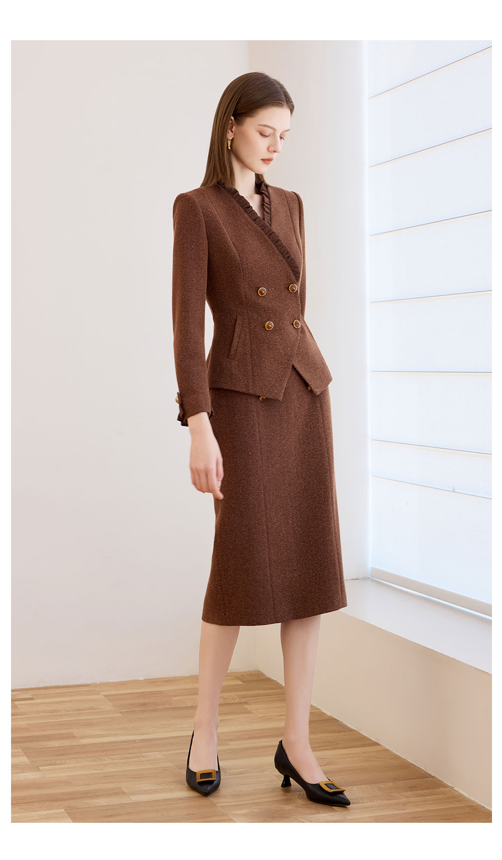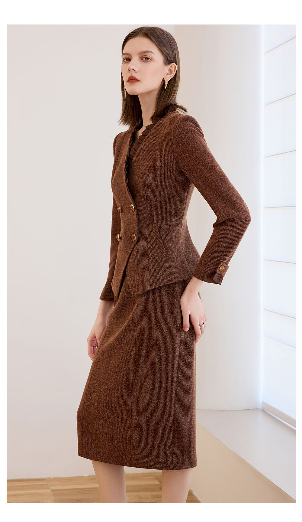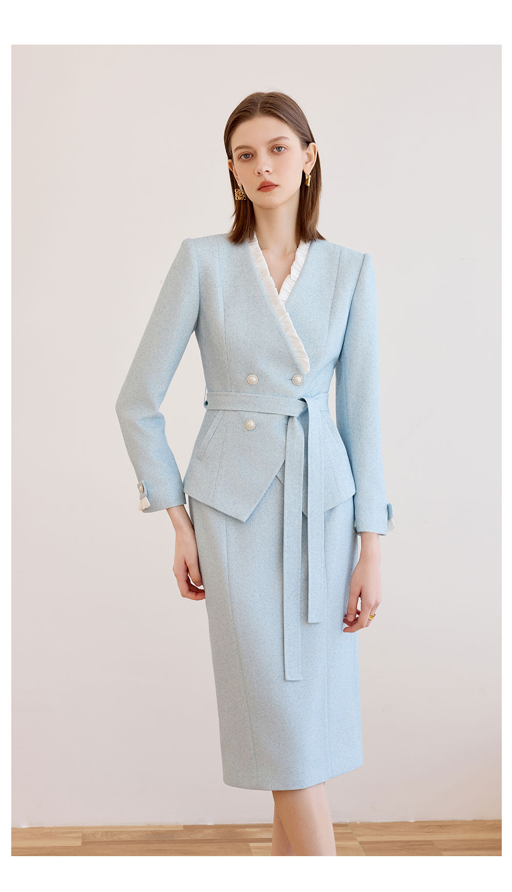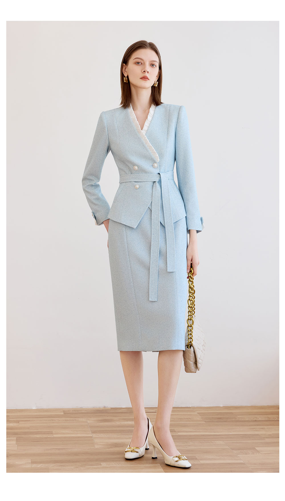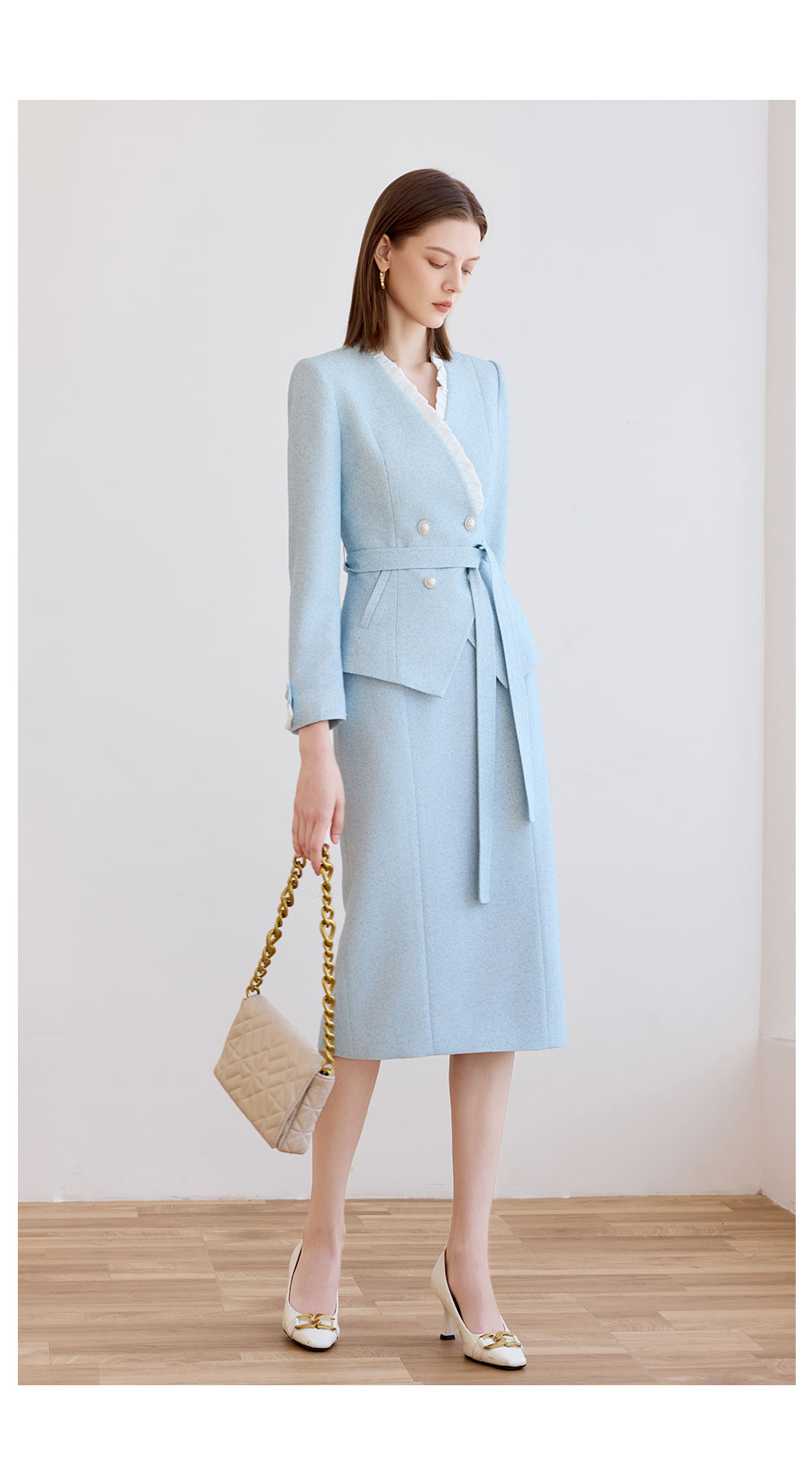 AD优雅时尚小香风毛呢套装系带2025秋冬高级感气质通勤职业装正装