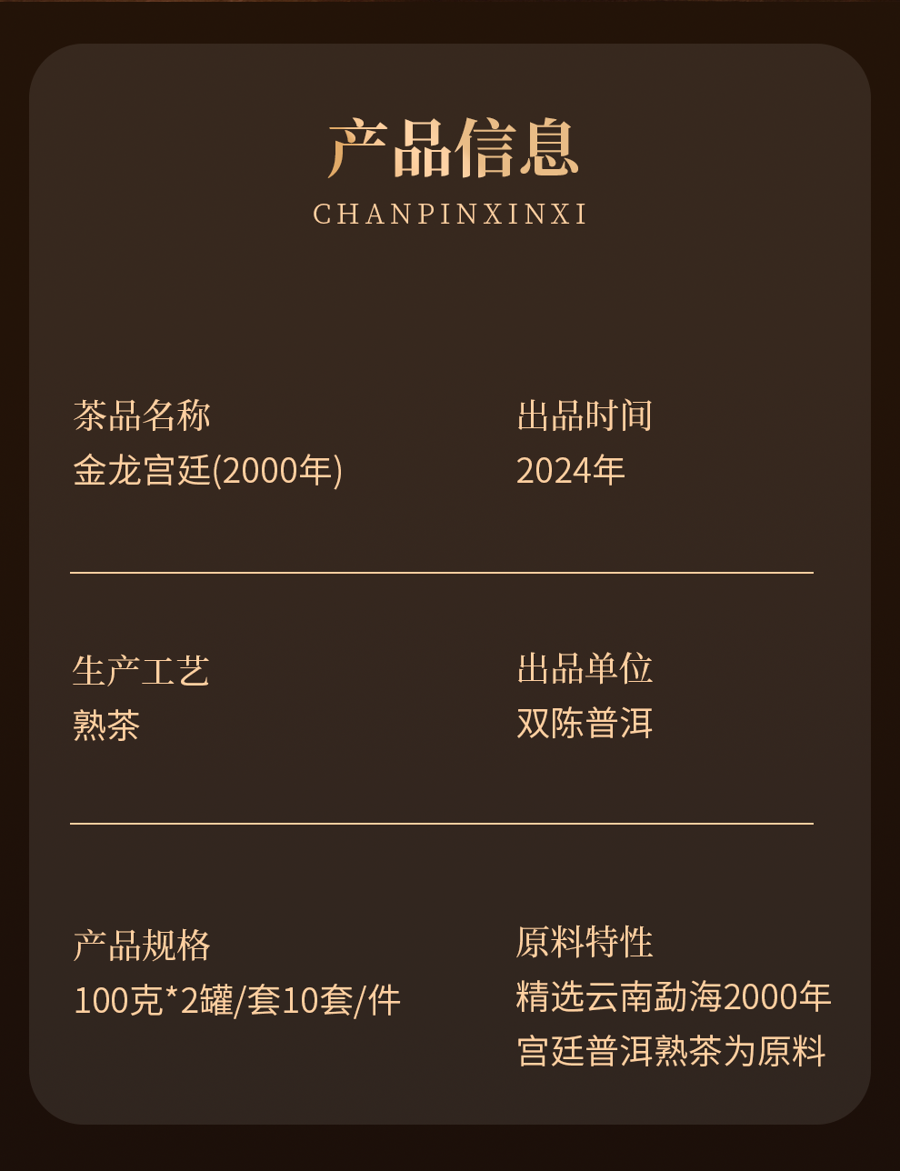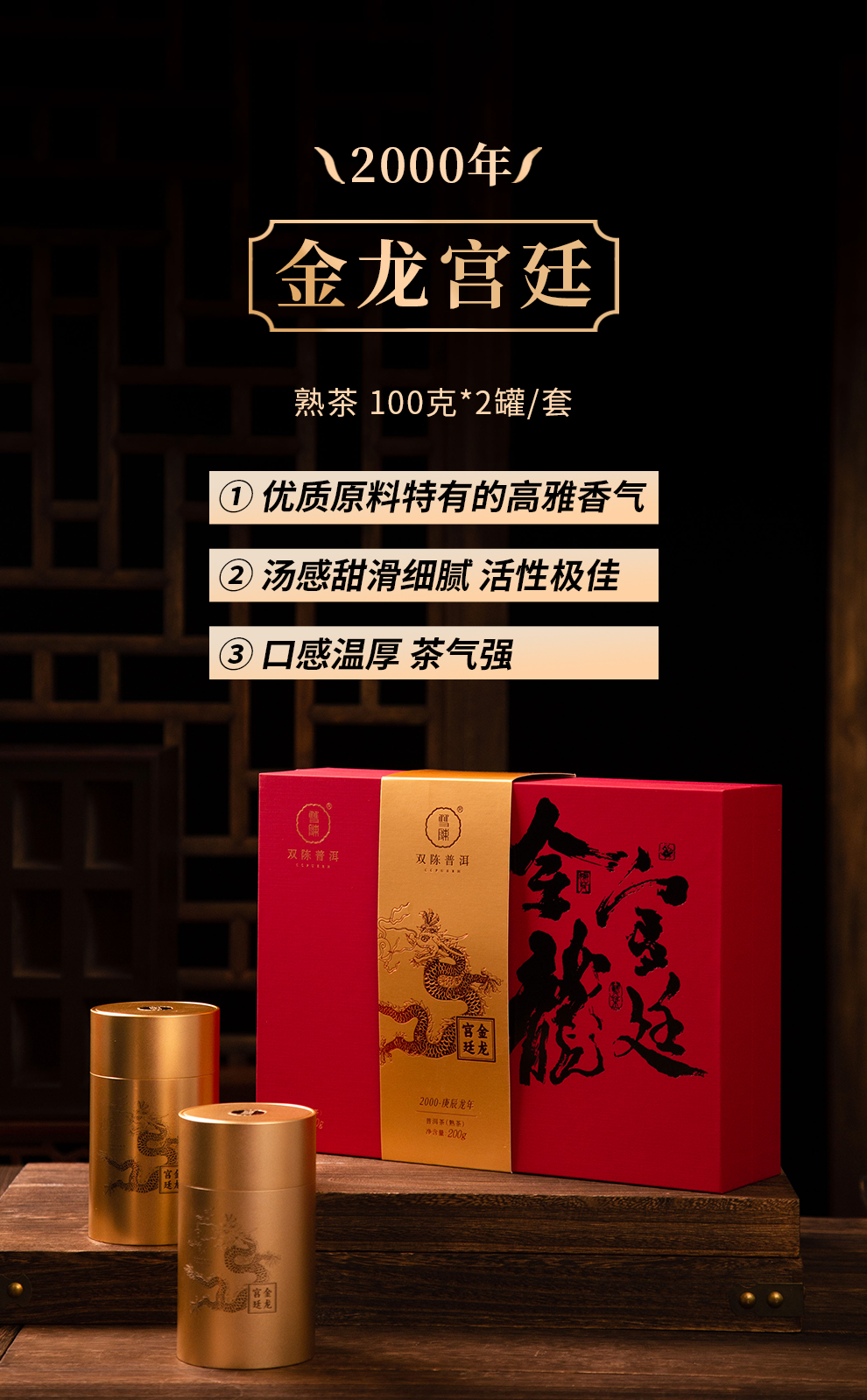 2000年金龙宫廷普洱熟茶 100克*2罐/套