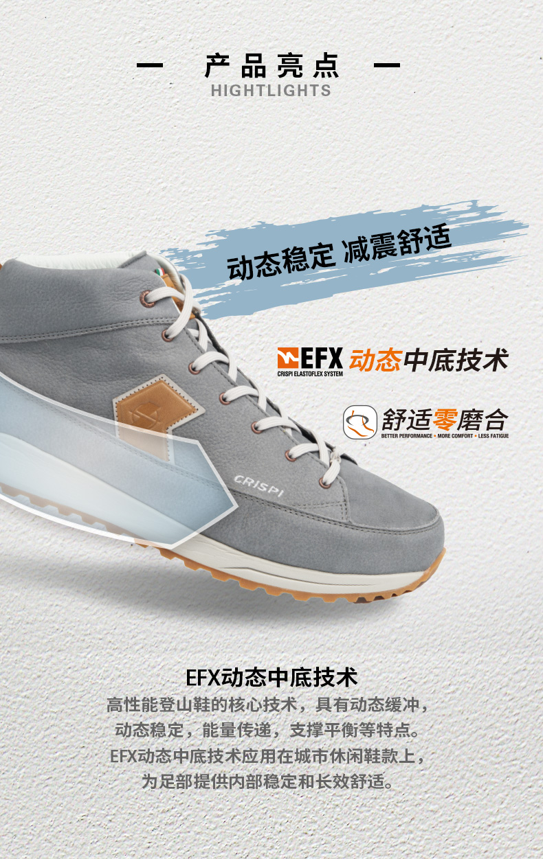CRISPI意大利春秋防滑防水户外鞋徒步登山鞋靴男女休闲 Unica EFX Mid 203131803