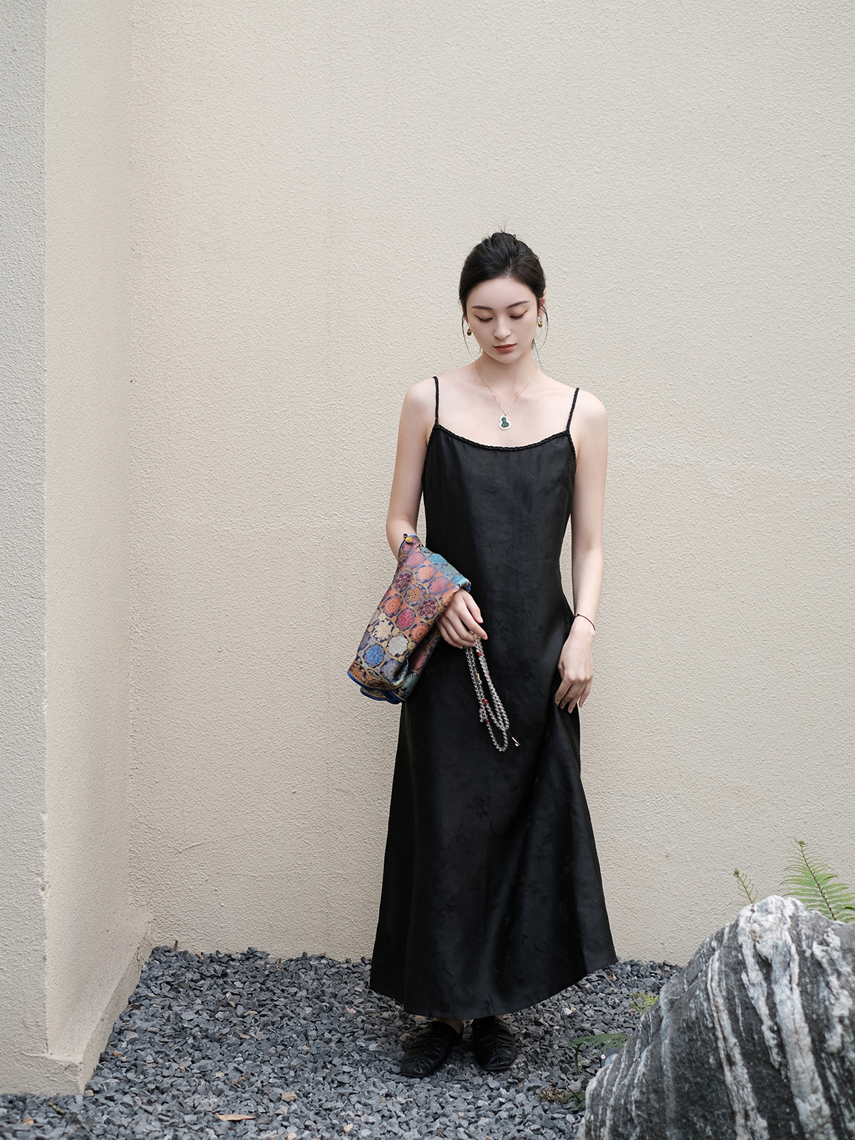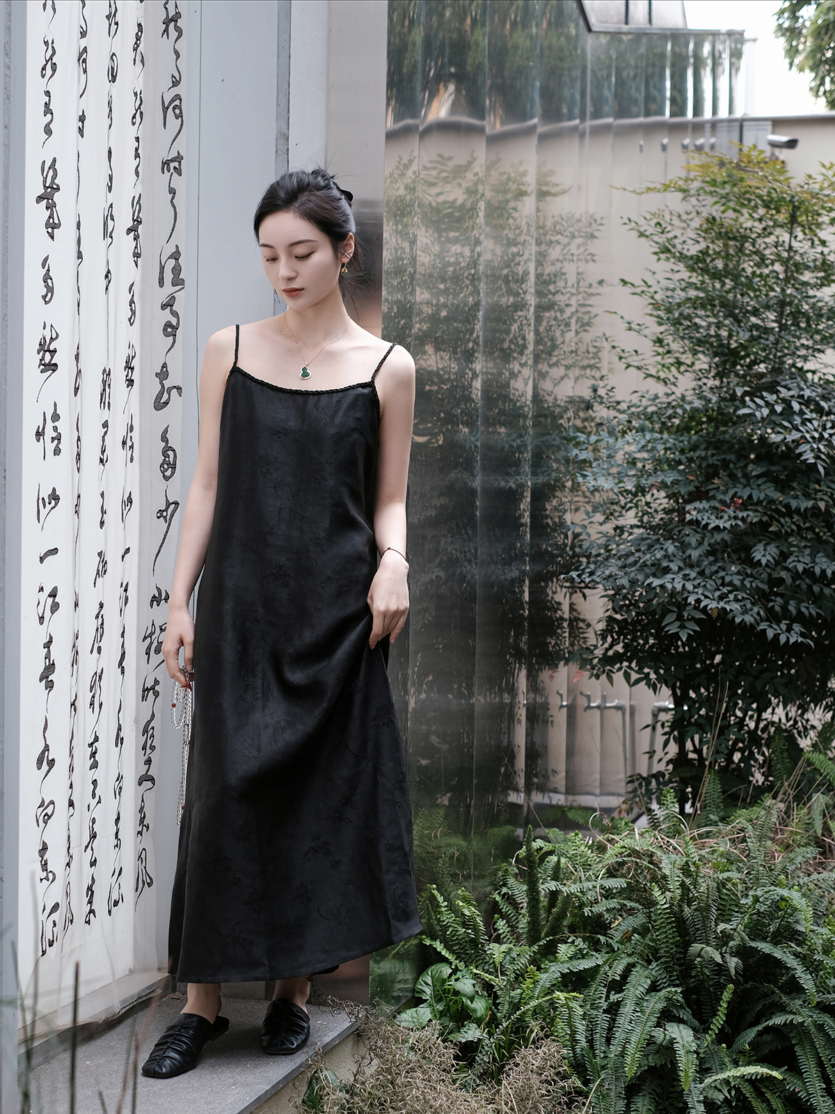 盛唐牡丹 |梅兰竹菊香云纱吊带裙