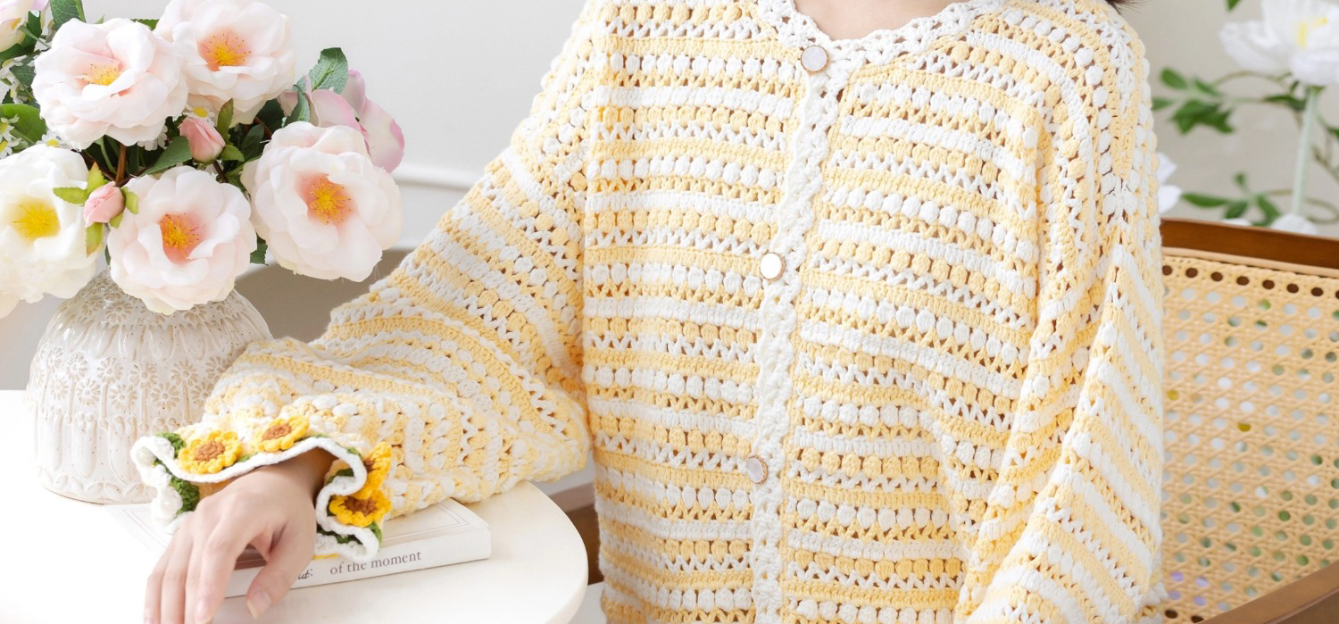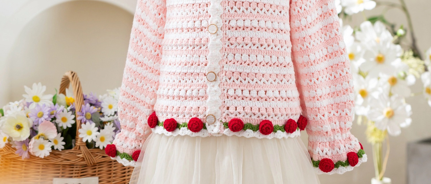 苏苏姐家花朵开衫手工diy亲子毛线团4股棉编织钩针自制材料包