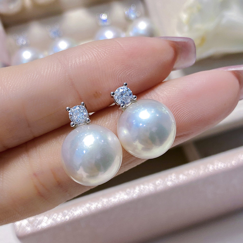 S925纯银王妃珍珠耳钉 K金工艺日常百搭 10-11mm淡水爱迪生珍珠 皮光透亮 圆润饱满