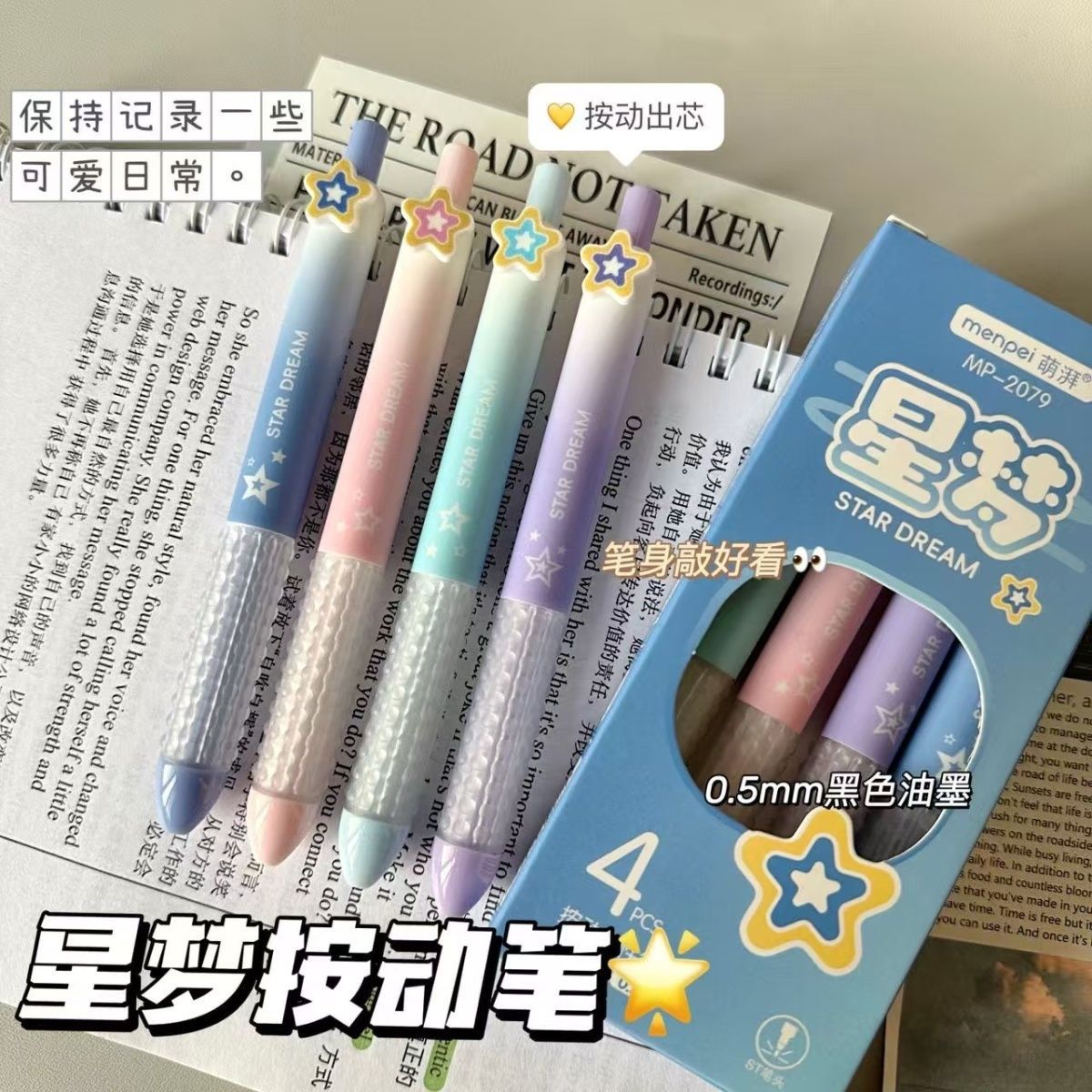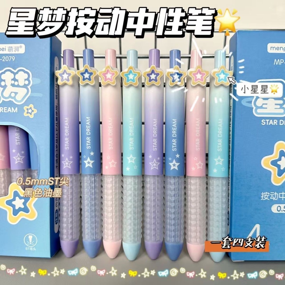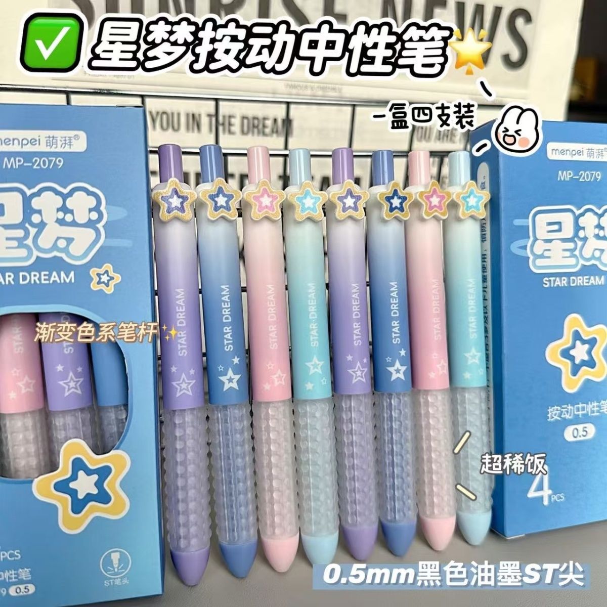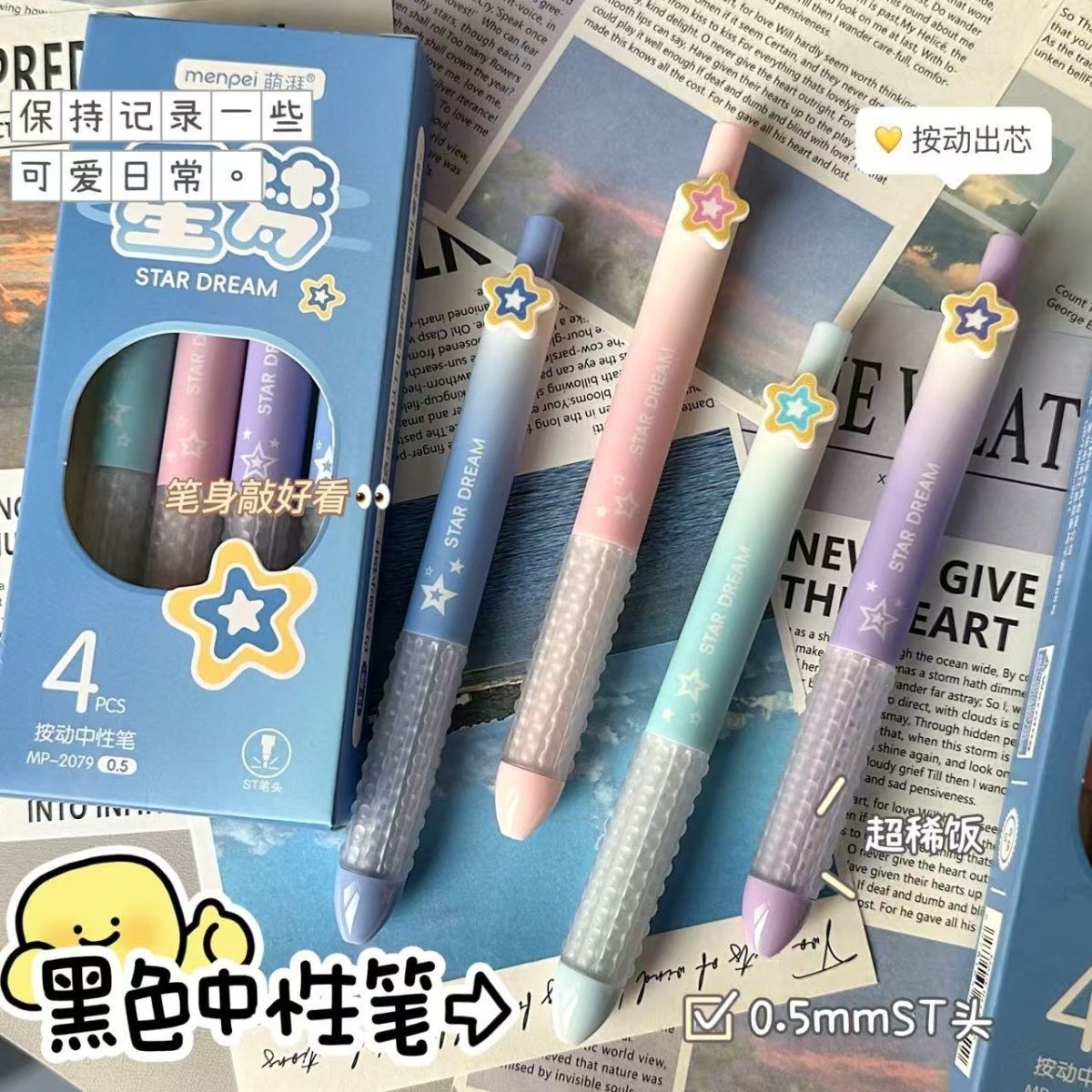 【开学季❗️星梦按动中性笔】开学季ins风高颜值,学生考试速干刷题笔,字迹清晰,速干成型!开学季学生考试中性笔刷题笔0.5黑笔笔芯顺滑水笔L