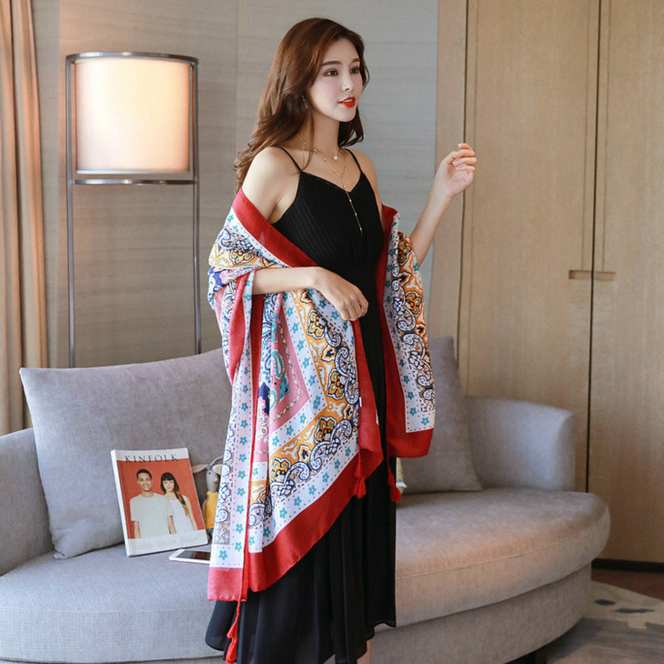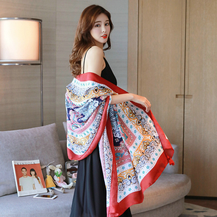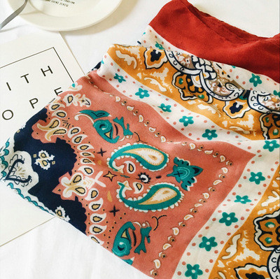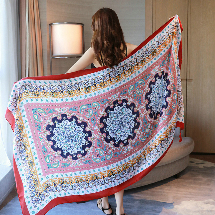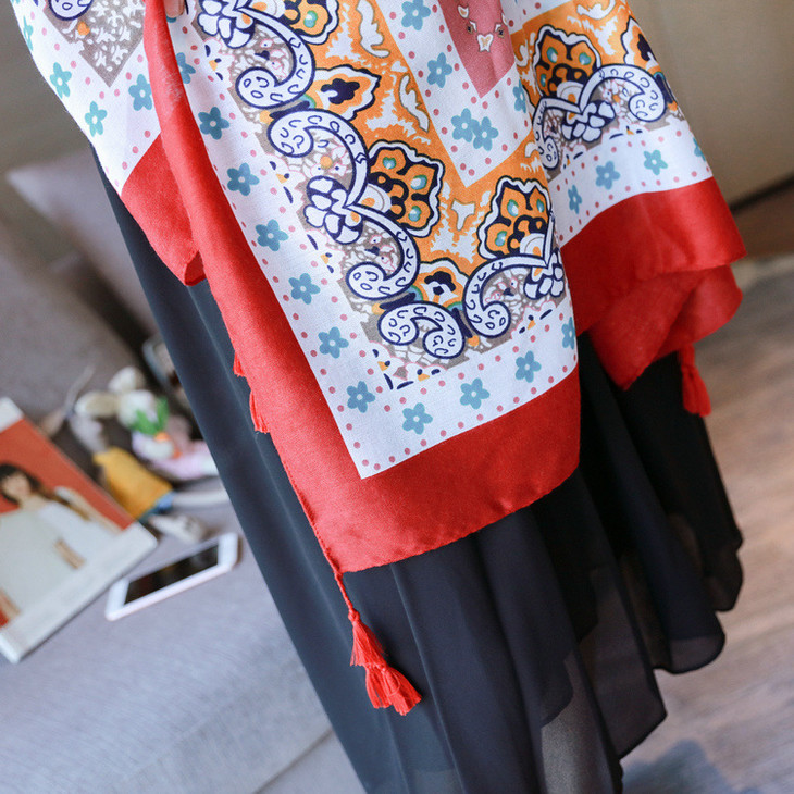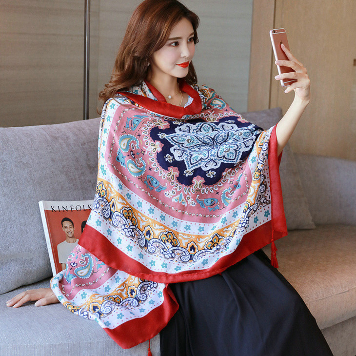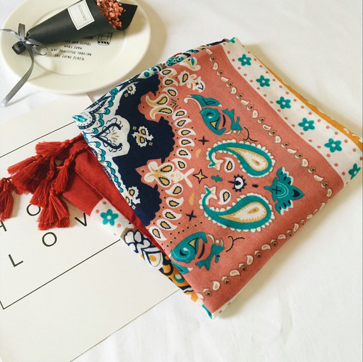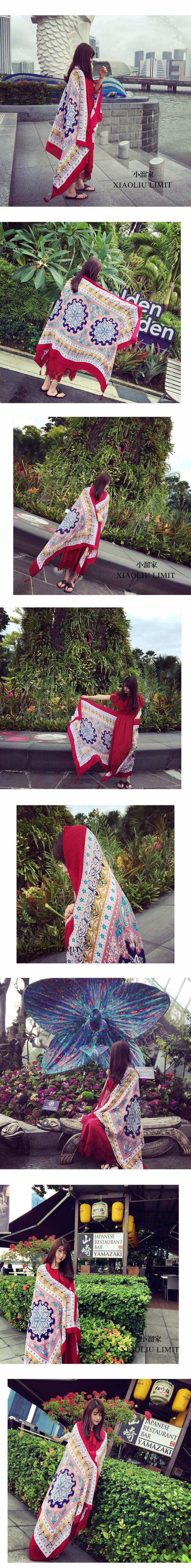 【服饰鞋包】春夏季图腾民族风围巾棉麻披肩两用女加大空调防晒纱巾女QK128