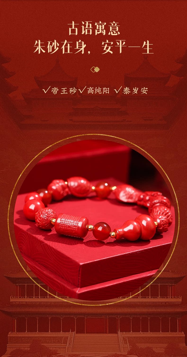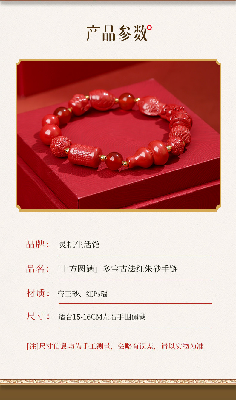 【祈愿吉品】「十方圆满」多宝古法红朱砂手链平安大红吉祥经手串
