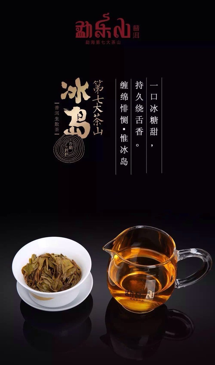勐库冰岛,于澜沧江、怒江环抱之中,受邦马大雪山山脉渗入土层深处的纯净雪水、冰川融水滋养,其茶入口绵,落口甜,汤感厚,滋味足,饮时口感清爽,饮后回味绵长,与班章齐名。