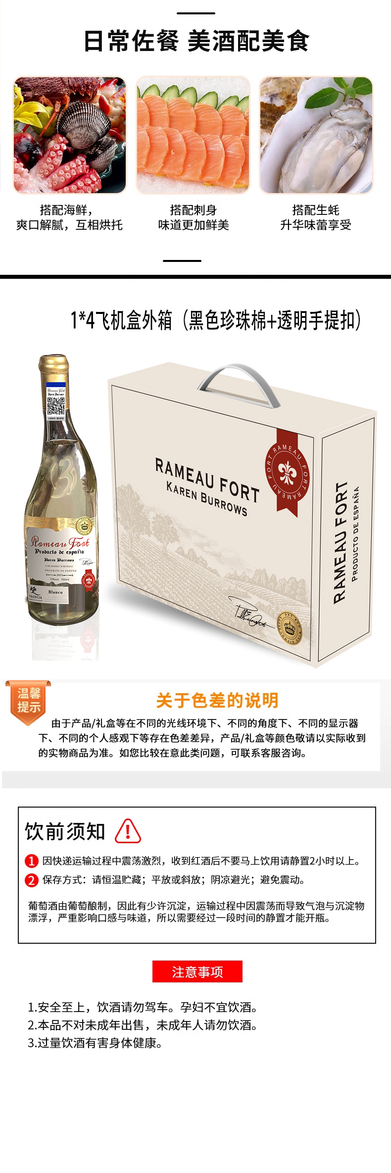 【品名】【超值4支装】拉摩图堡·凯伦巴罗斯半甜白葡萄 清爽可口 香气馥郁 750ml*4支 【规格】750ml*4支+手提礼盒 【产地】西班牙 【发货包装】独立包装 【发货地】山东 【发货快递】邮政 【不发货区域】新疆、西藏、港澳台 【补邮费地区】内蒙古、宁夏、青海、甘肃、广西、海南、云南+16元 【发货时效】48-72小时,周末节假日顺延 |