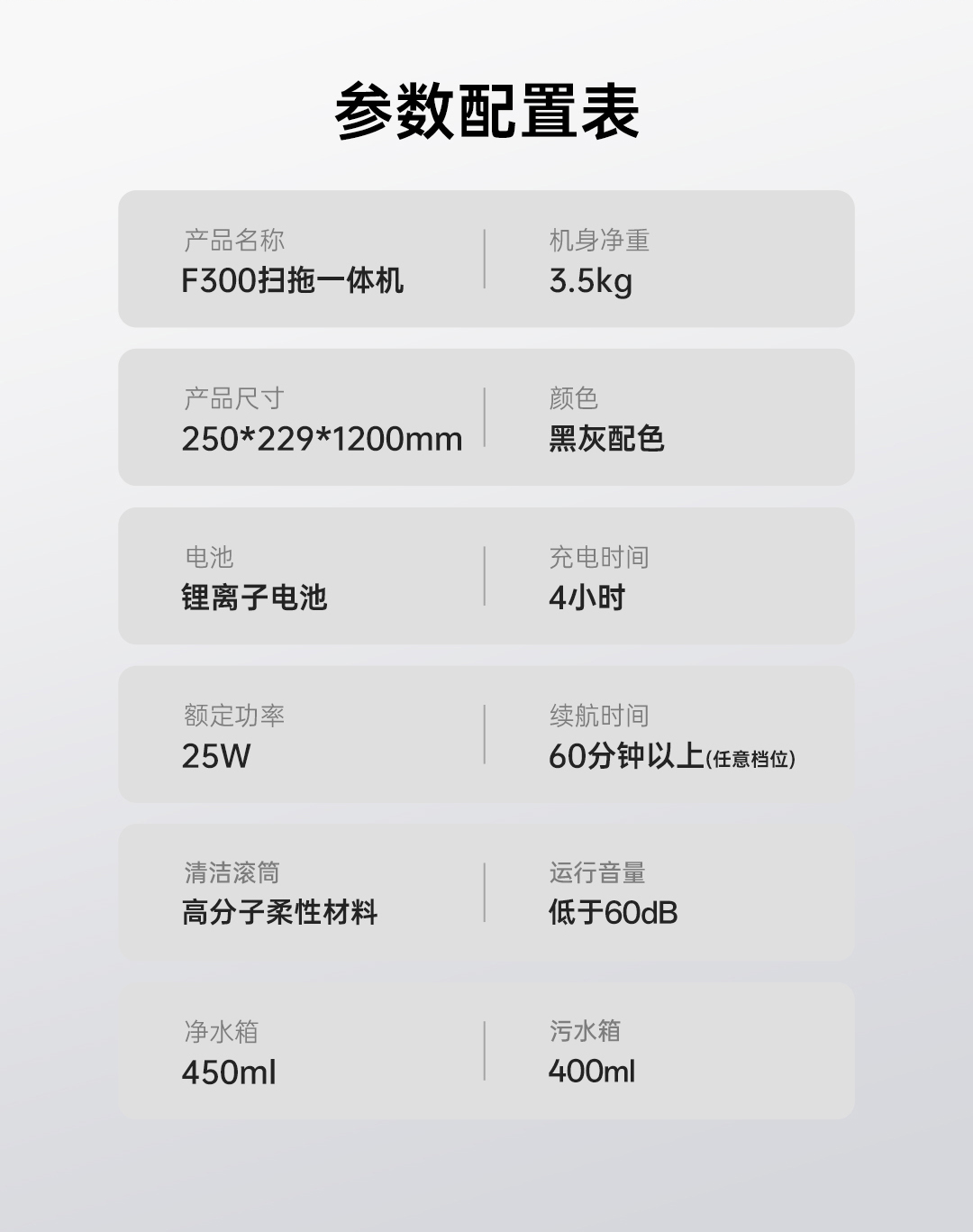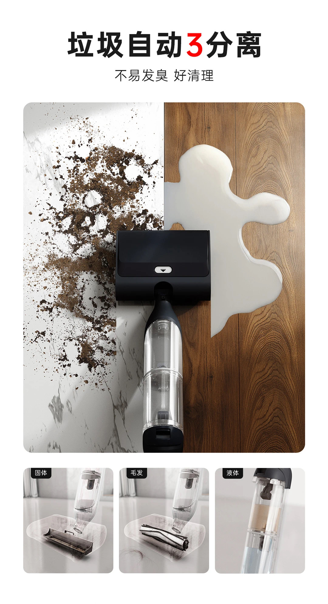 HIZERO赫兹 F300 超轻mini款 扫拖洗擦 自清洁 干湿分离 仿生黏附洗地机