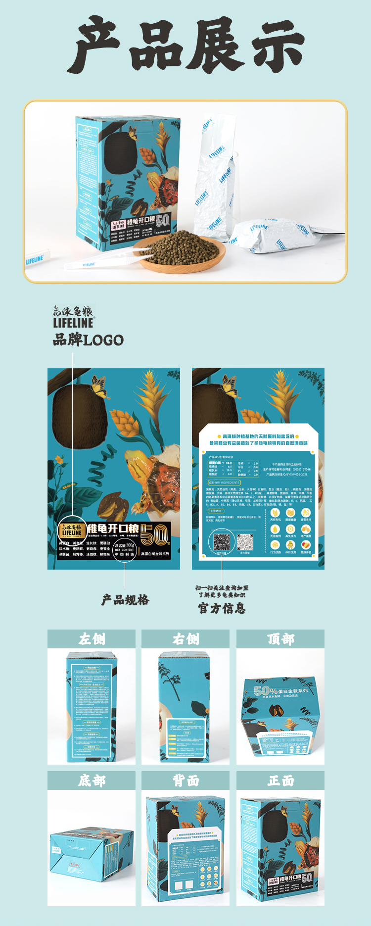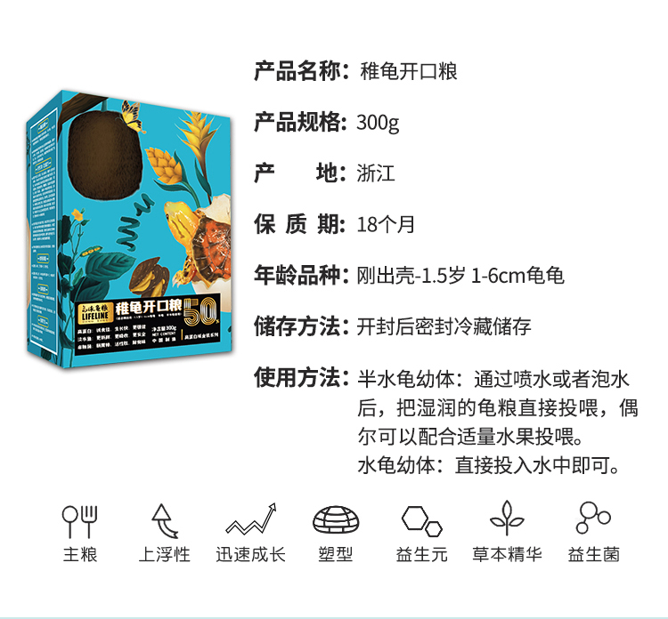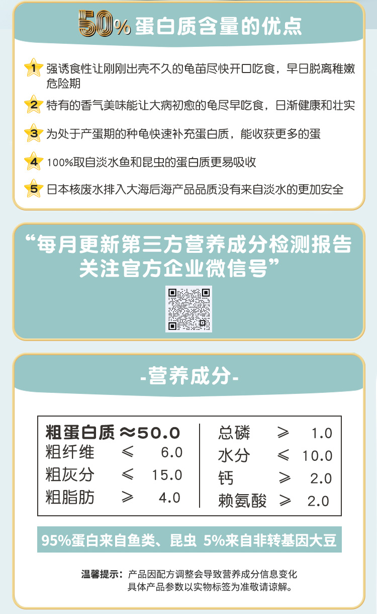 【补钙增体】金装系列50%高蛋白快速成长型诱食龟苗开口粮0-1岁稚龟粮
