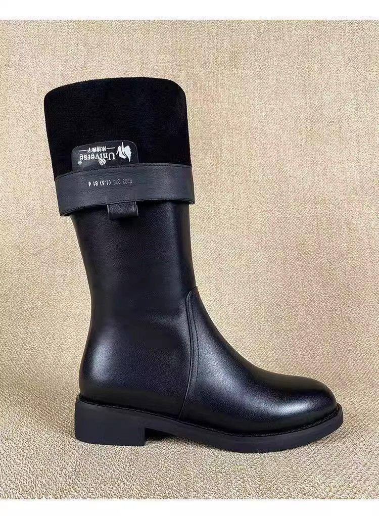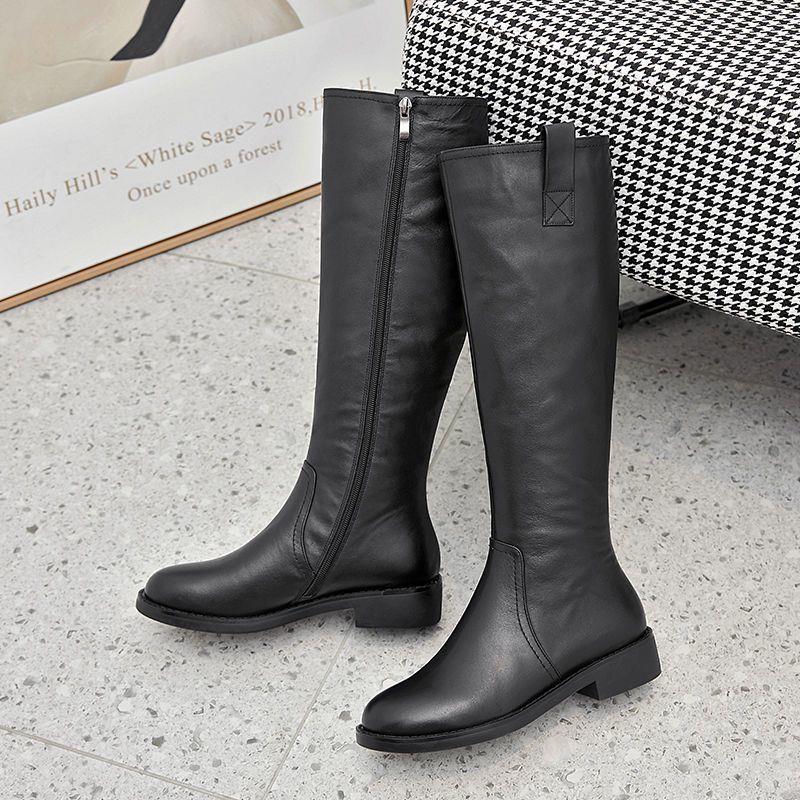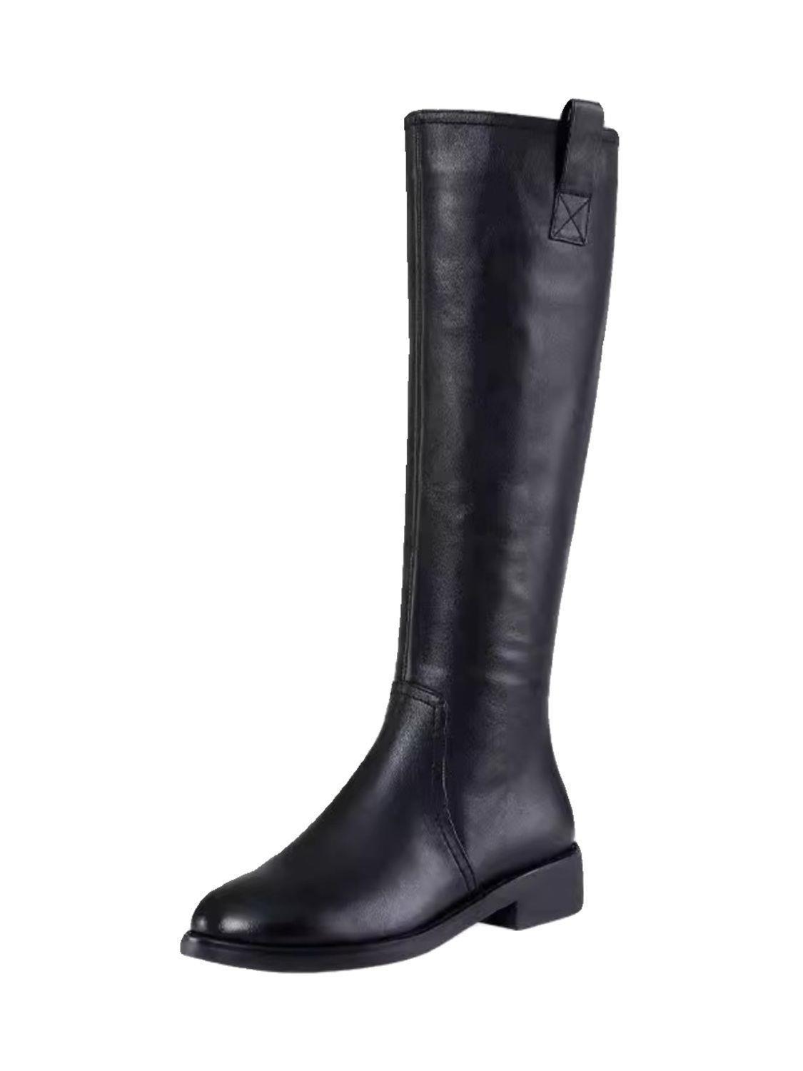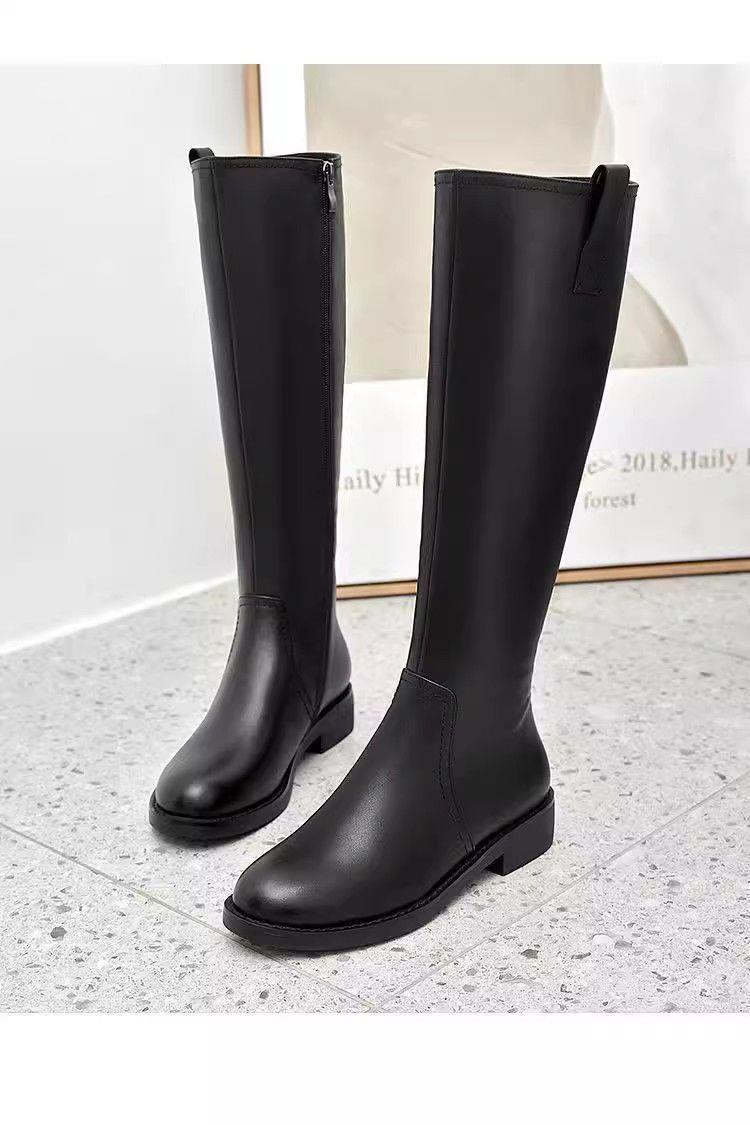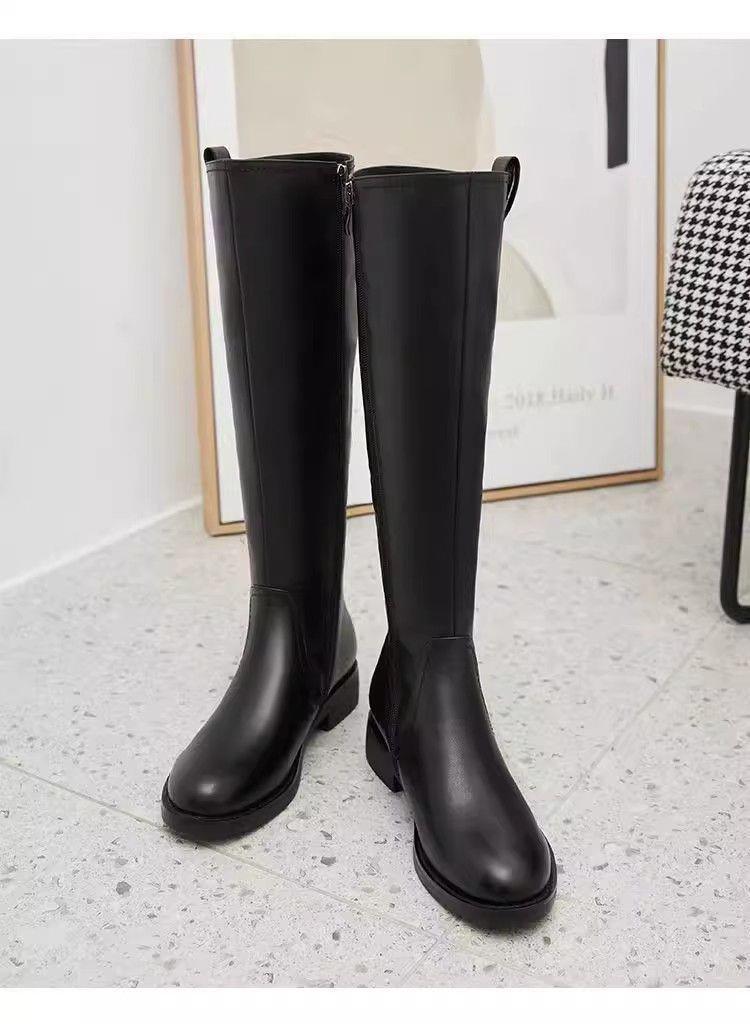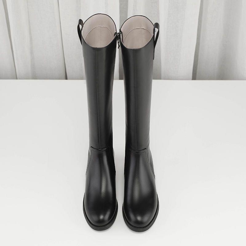 女士软皮高筒骑士靴女马丁靴款小个子长筒不过膝靴子女马丁靴35-40