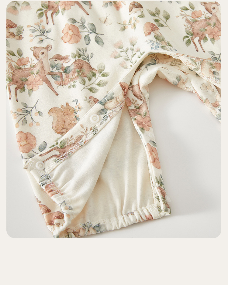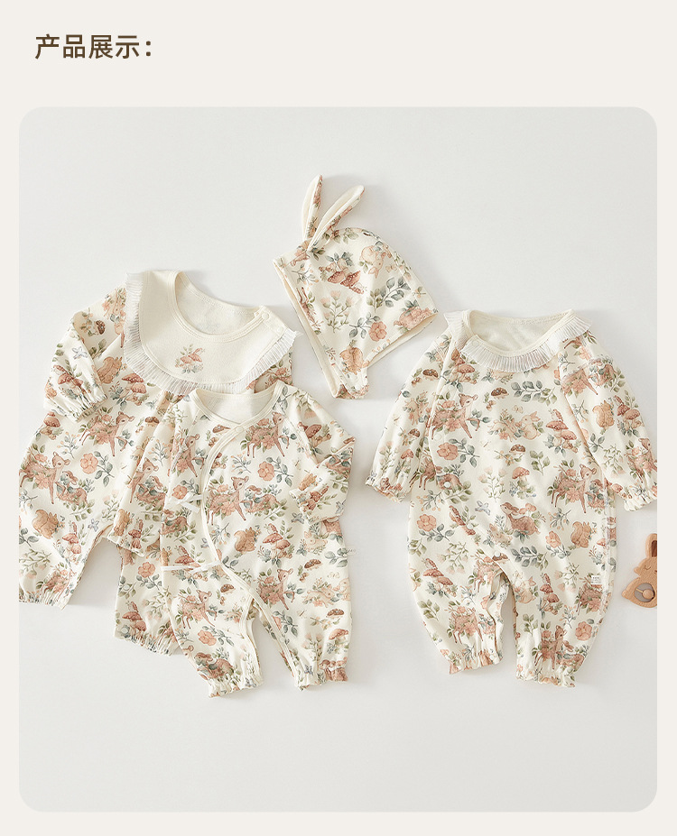【韩版小鹿棉毛连体哈衣】婴儿连体衣纯棉春秋款女宝宝碎花公主四季衣服新生儿月子服包屁衣