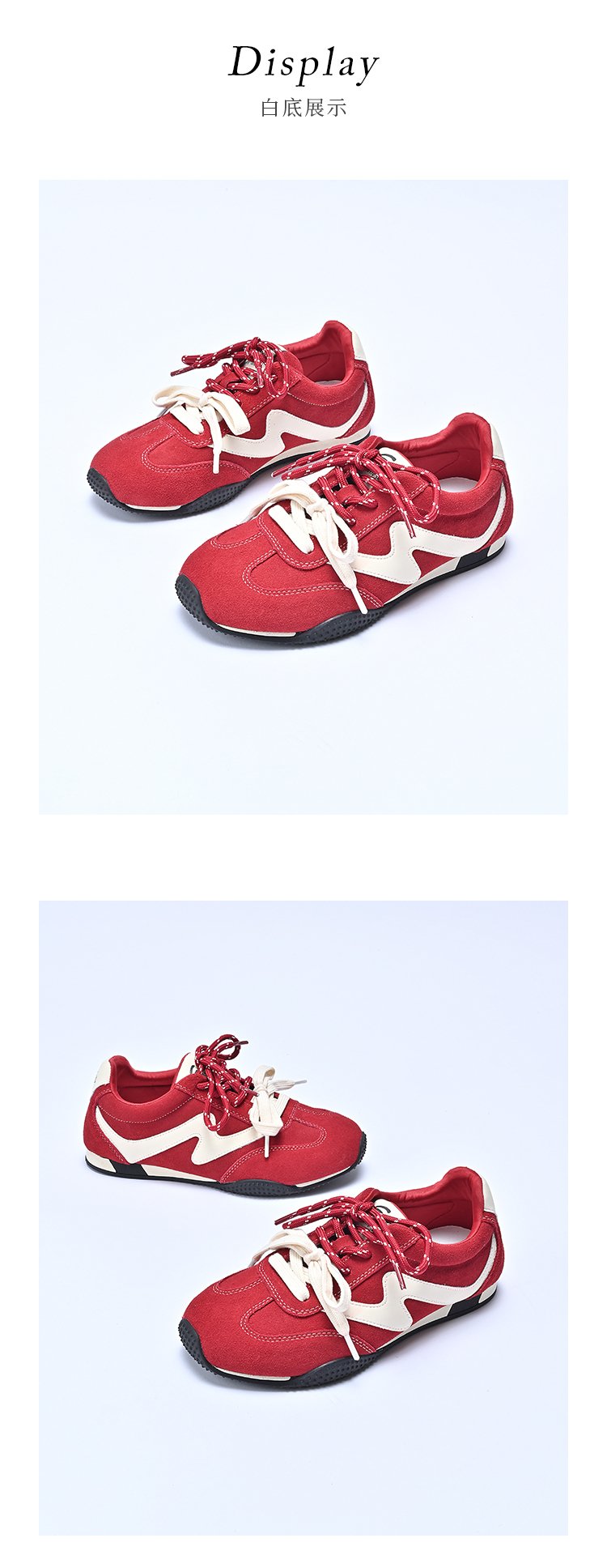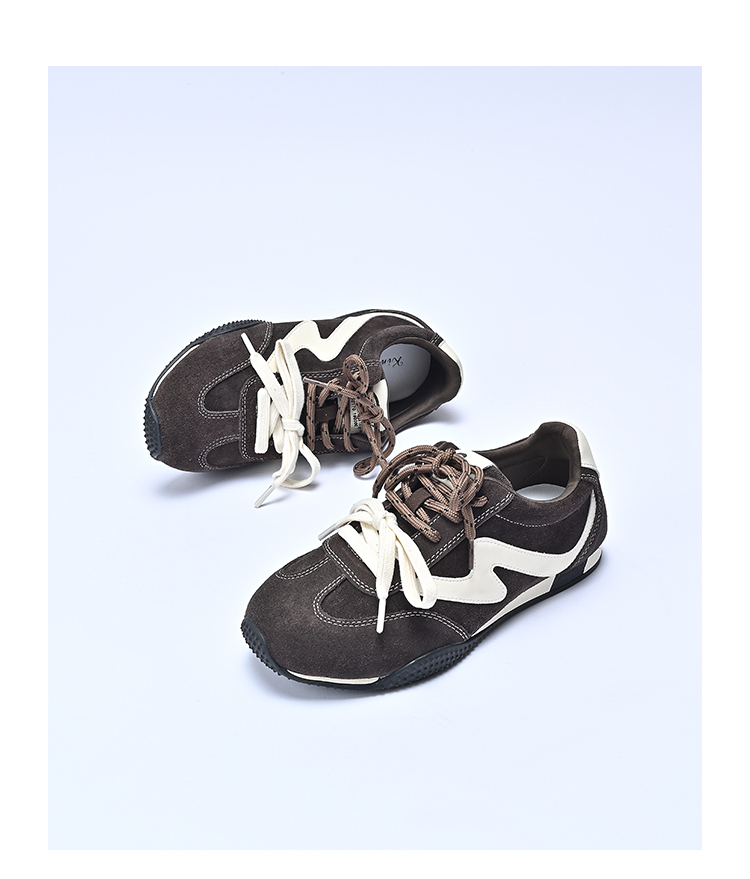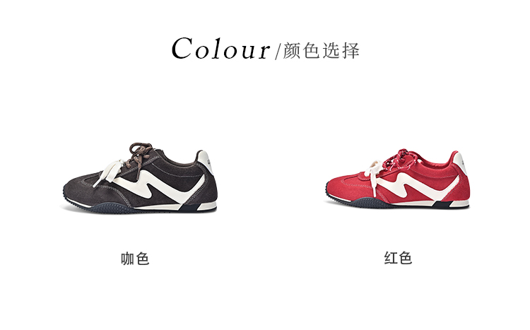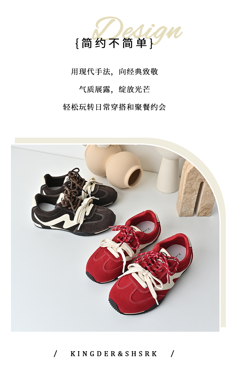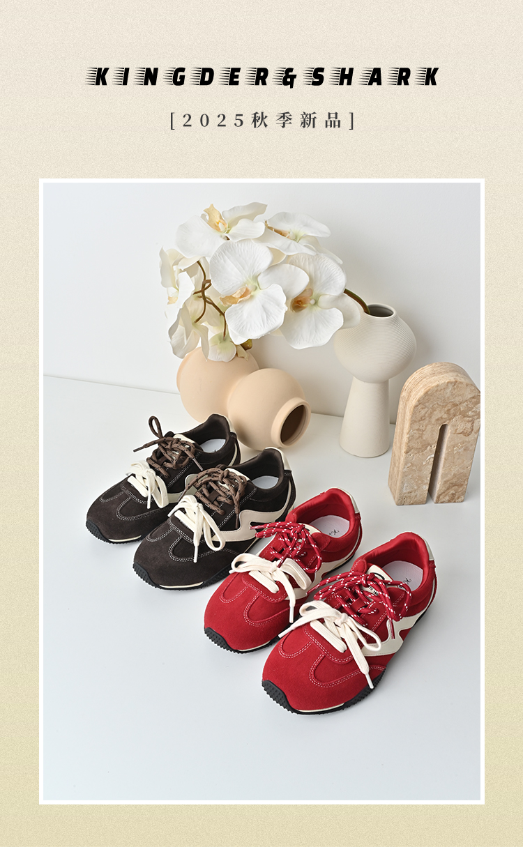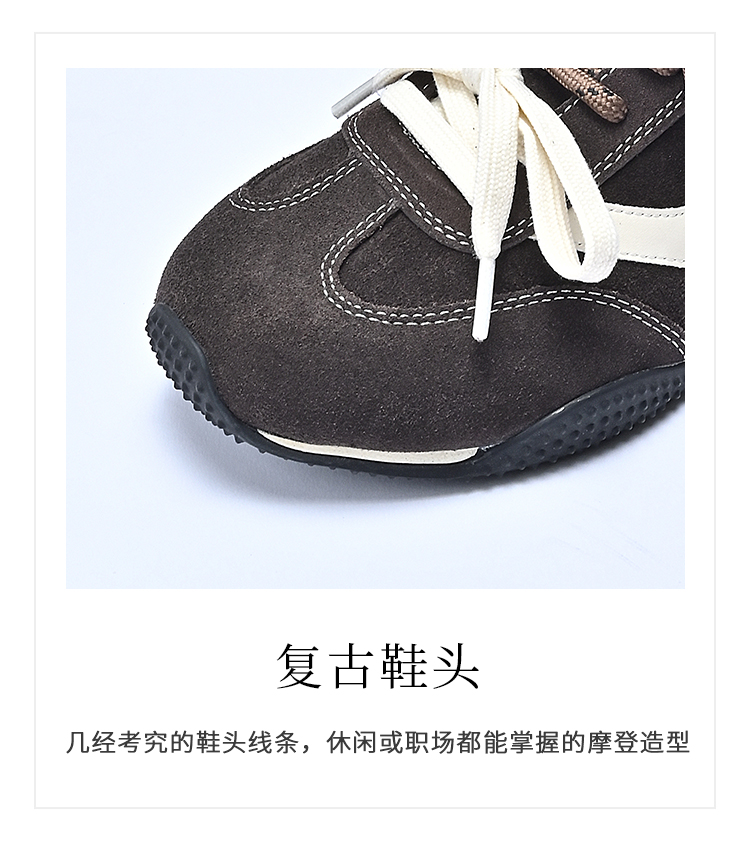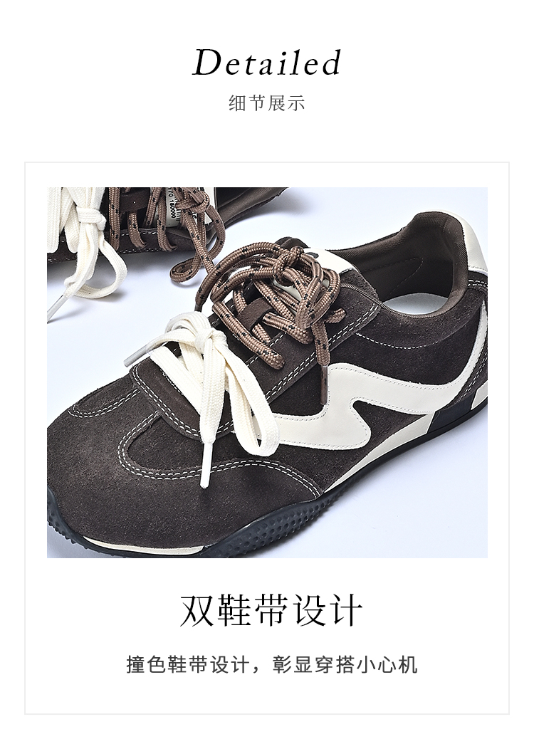 经典鲨2025秋专柜新款牛皮革潮流拼色系带平底舒适德训鞋女KW396-537011
