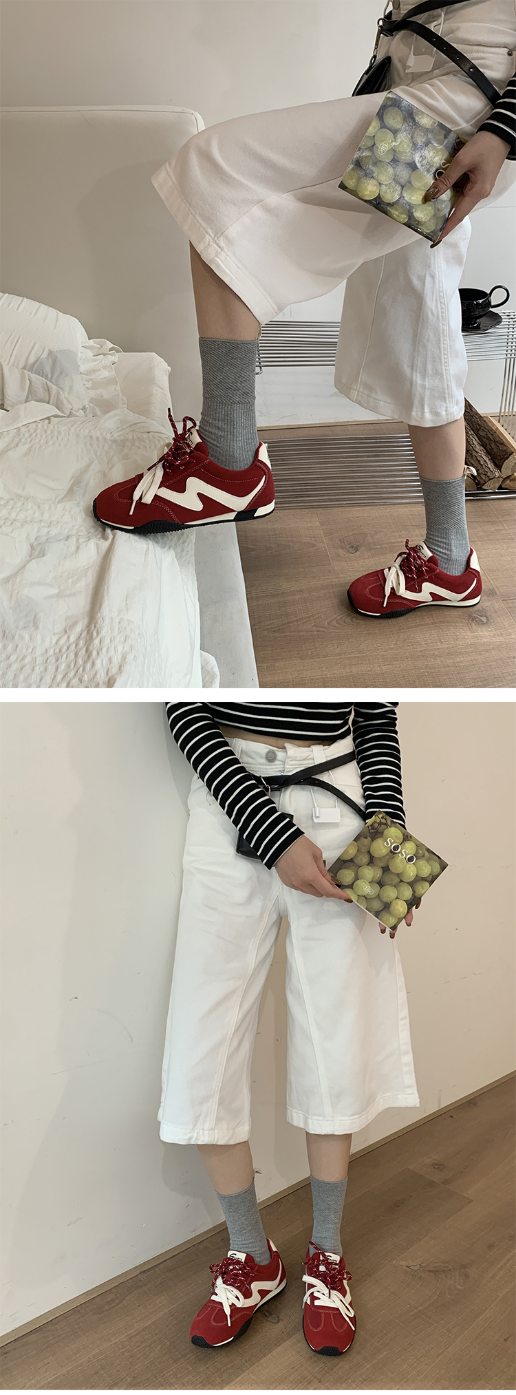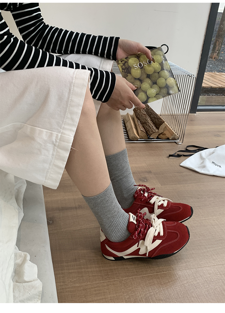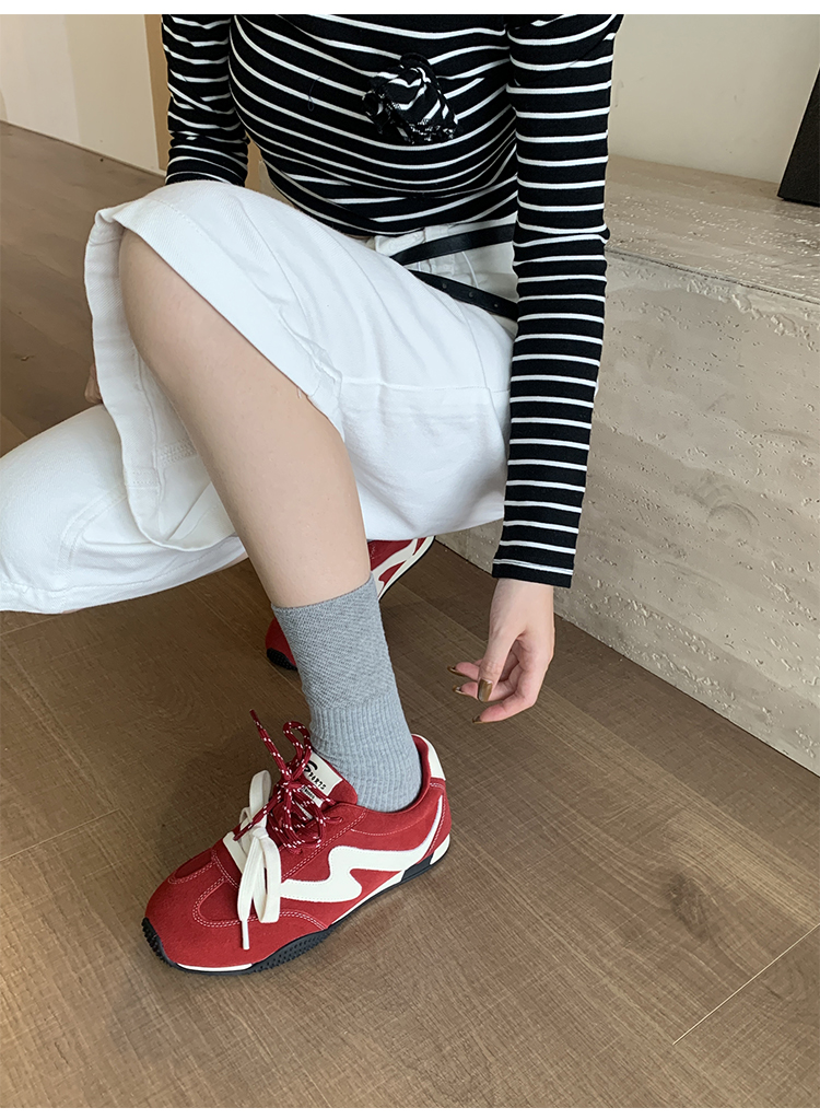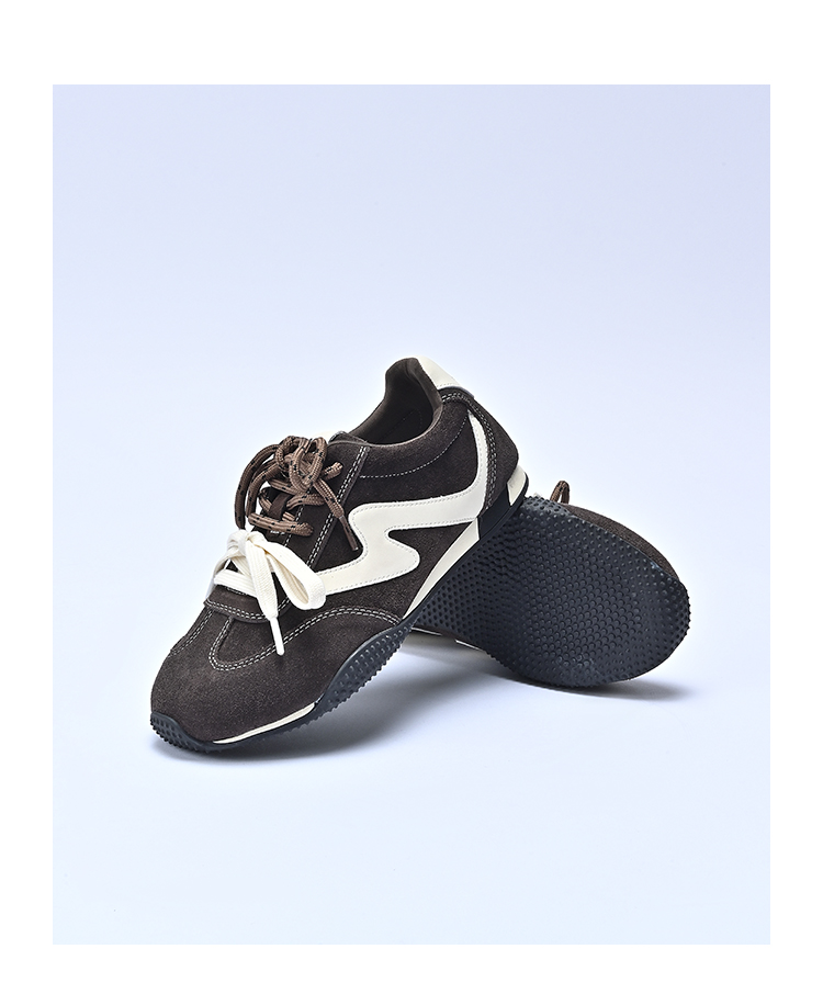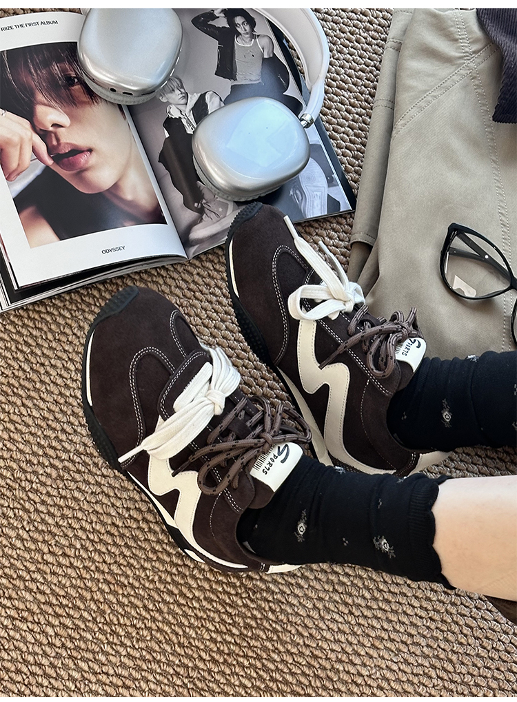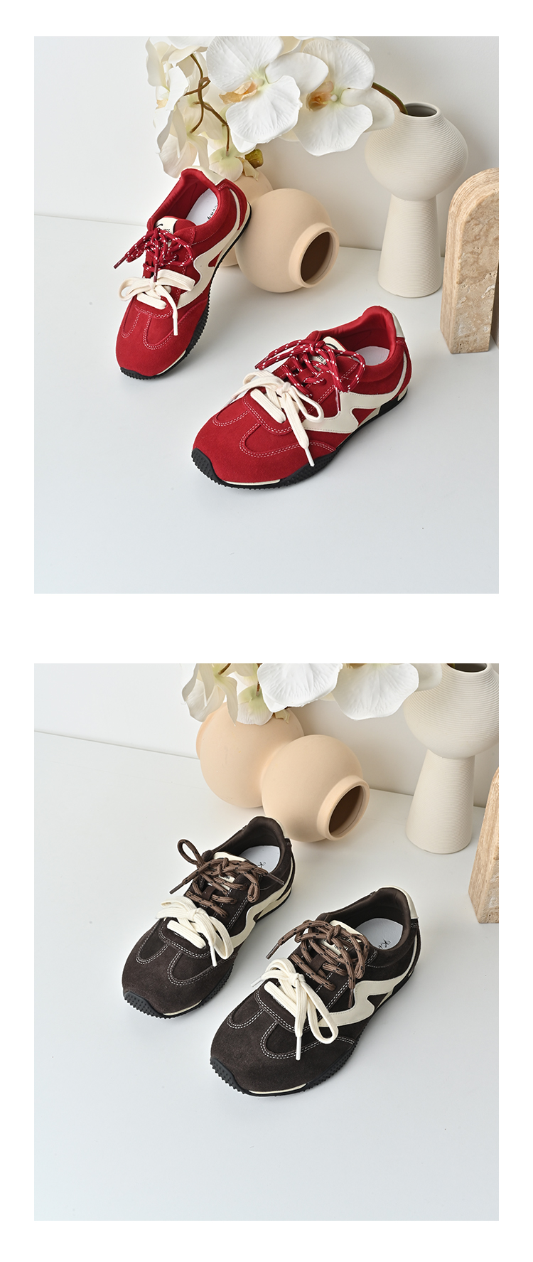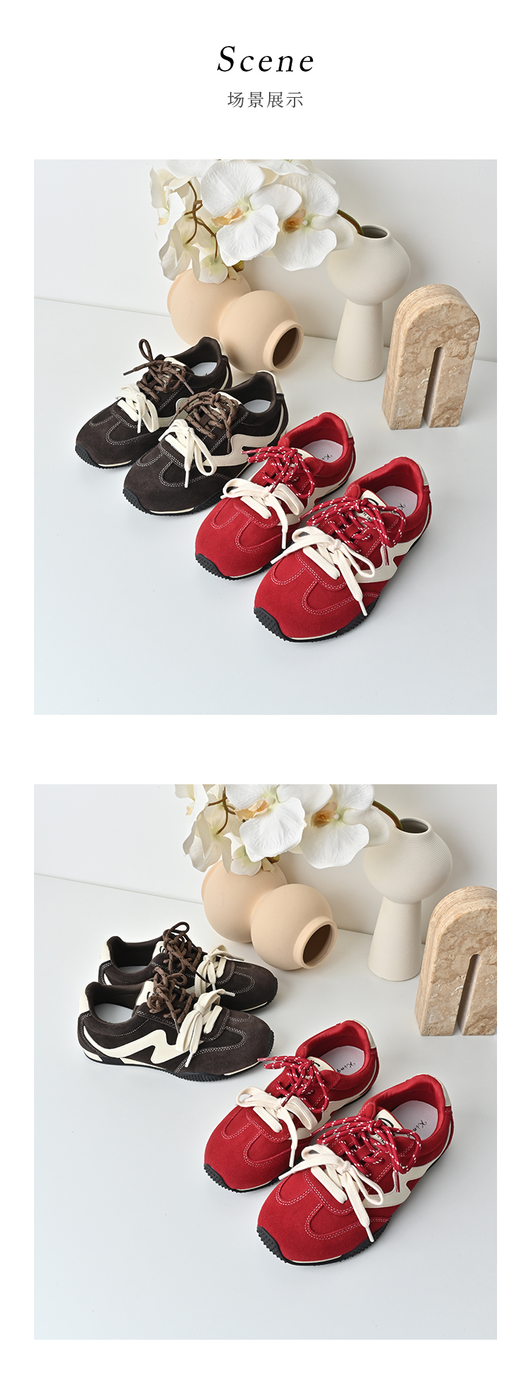 经典鲨2025秋专柜新款牛皮革潮流拼色系带平底舒适德训鞋女KW396-537011