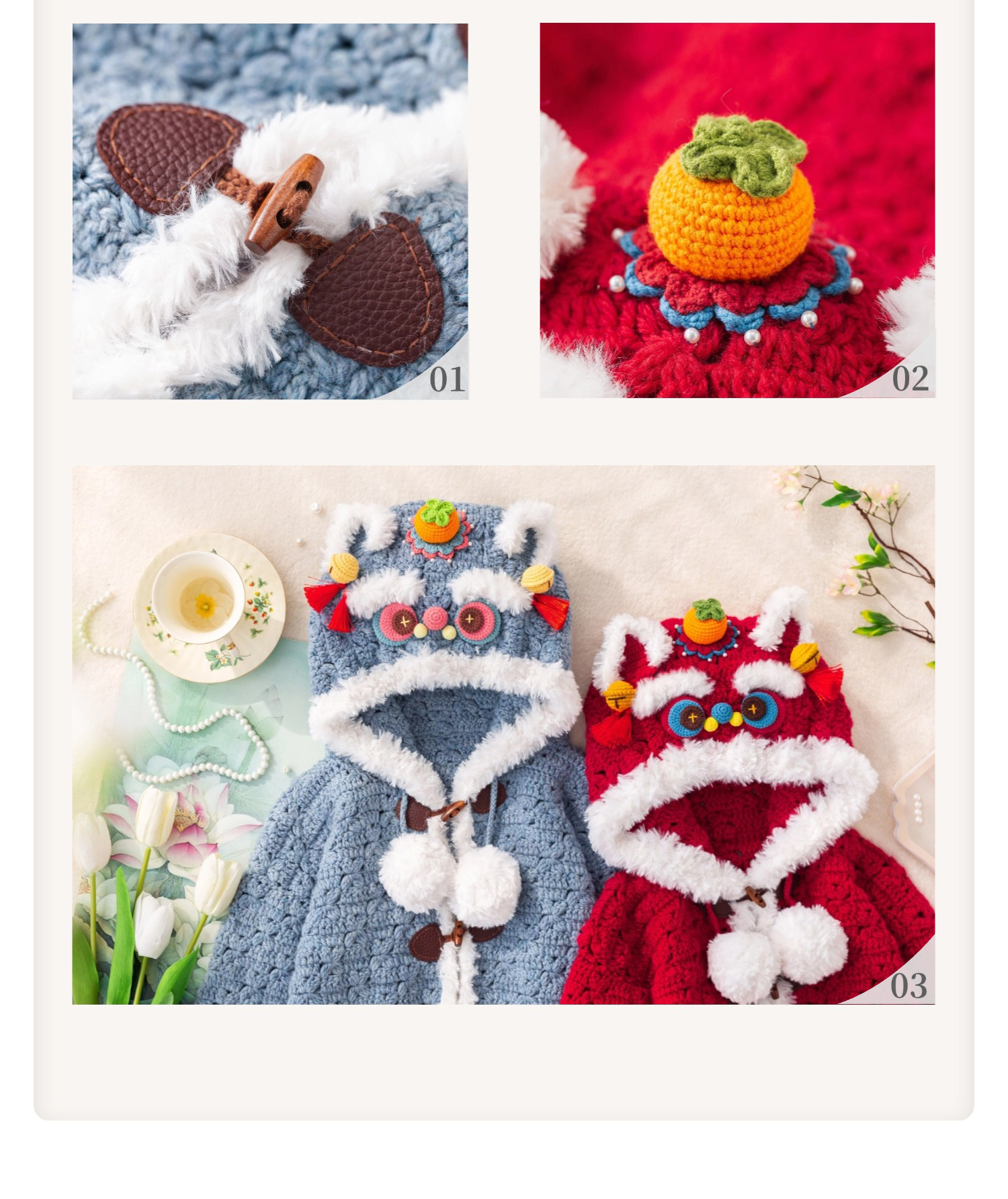 苏苏姐家醒狮开衫手工diy编织钩针毛线团自制外套材料包冬
