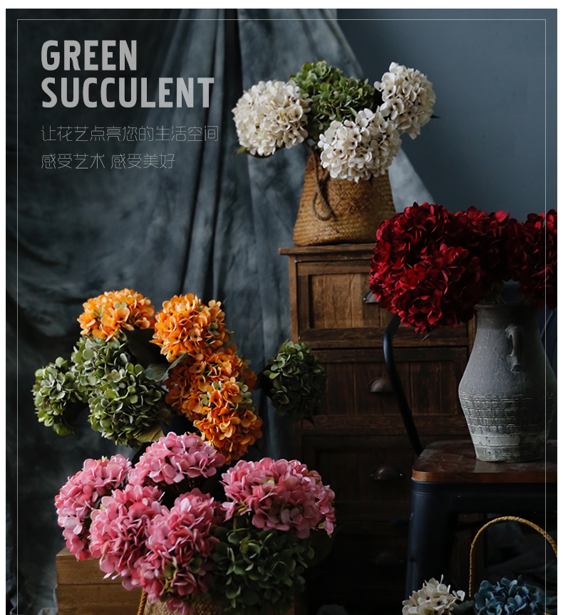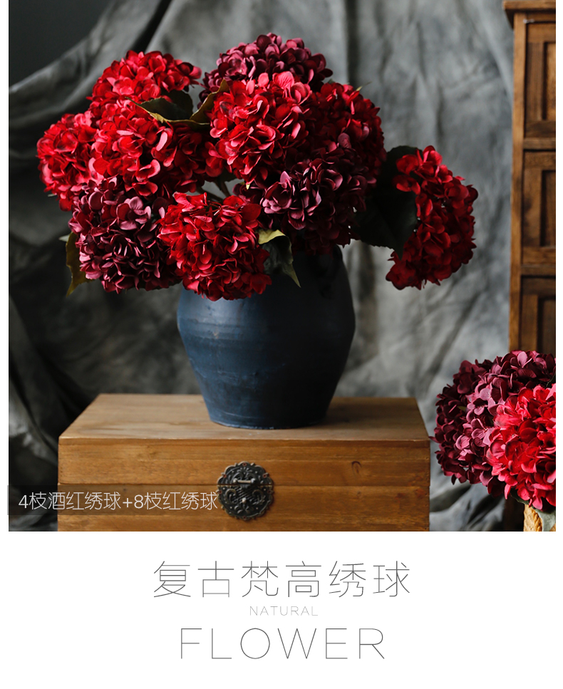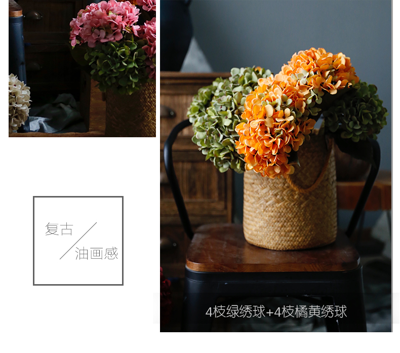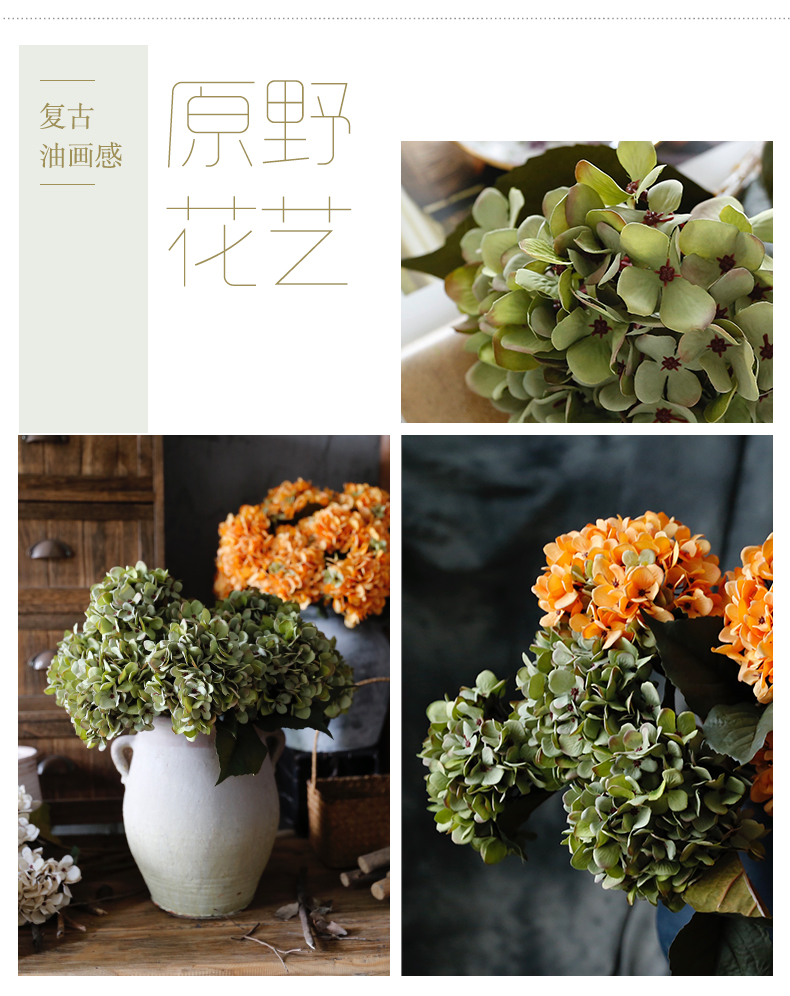 复古油画感梵高绣球花仿真花假花装饰花客厅餐桌婚礼手捧花摆设件