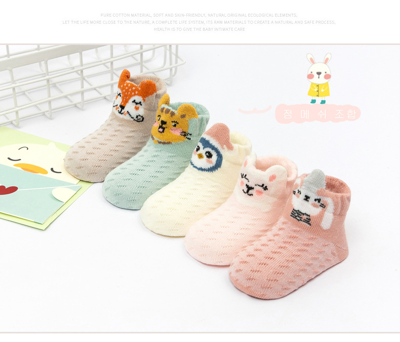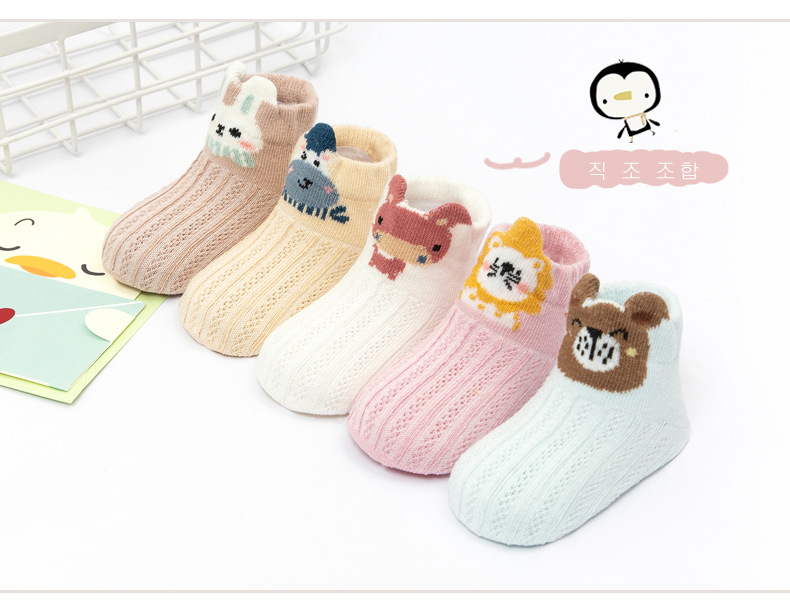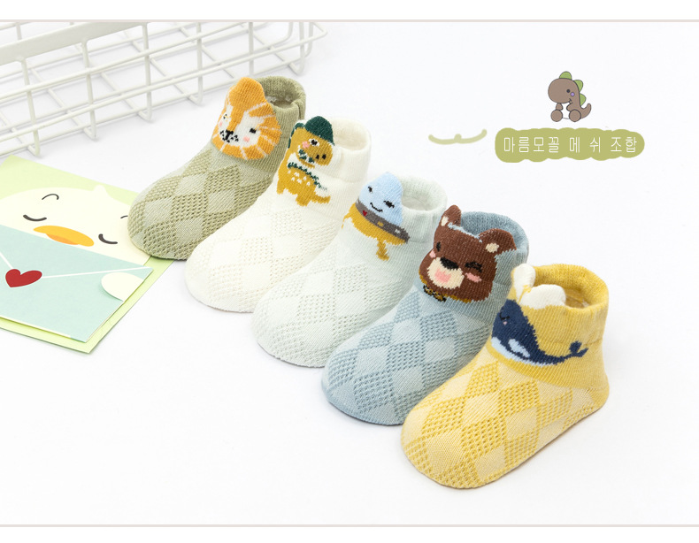 【5双装 舒适透气 柔软亲肤】春夏新款立体薄棉低帮儿童袜卡通婴幼小童宝宝袜五双装网眼船袜