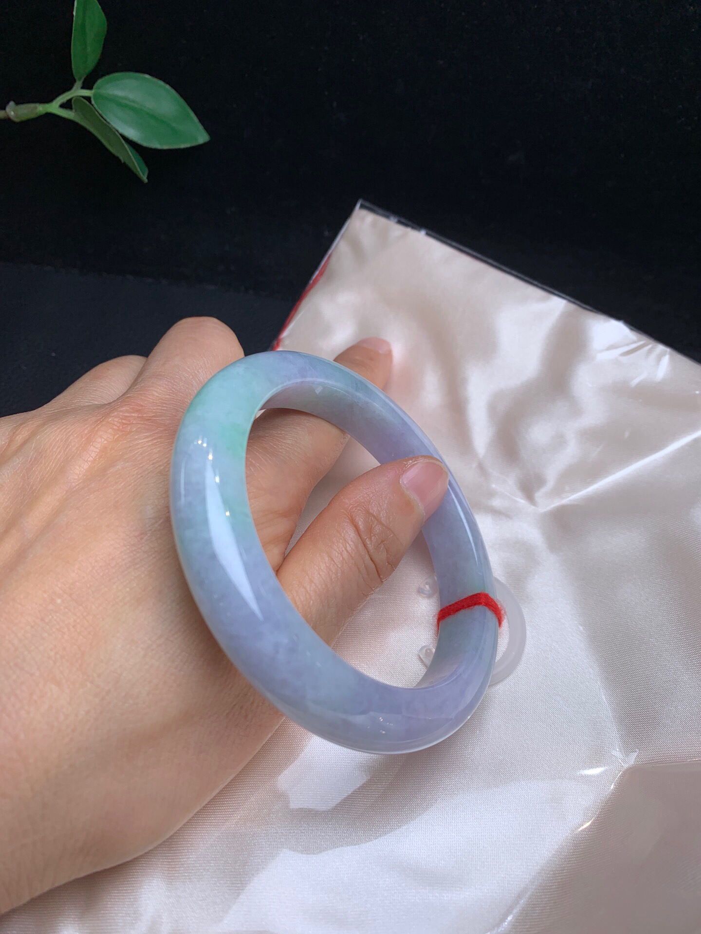 612342,61.8春彩大圈口手镯,12.7/9mm,有紫有绿,紫色见光不失色,上手效果漂亮,略有些颗粒感,完美的,超值价💰12500