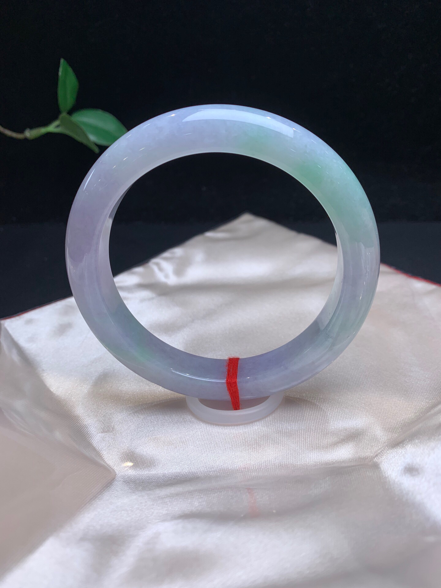 612342,61.8春彩大圈口手镯,有紫有绿,紫色见光不失色,上手效果漂亮,略有些颗粒感