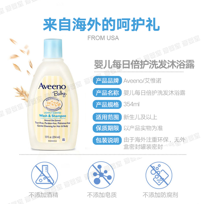Aveeno艾惟诺354ml婴儿每日倍护洗发沐浴露