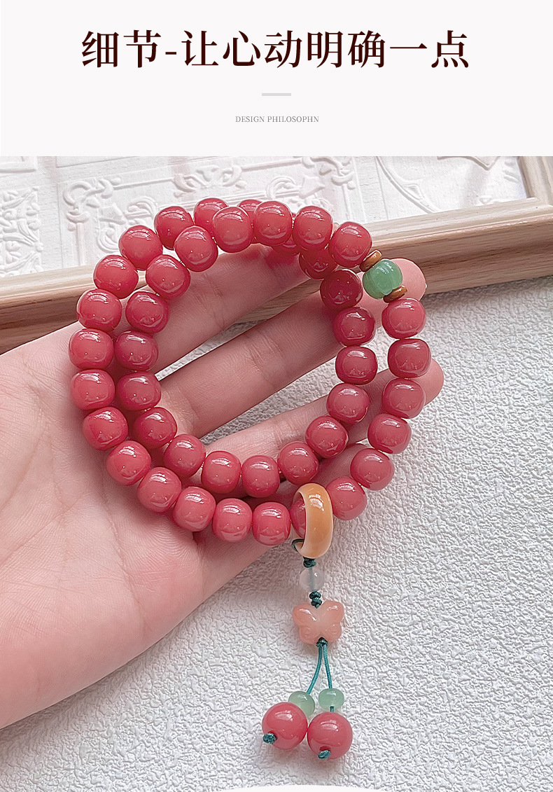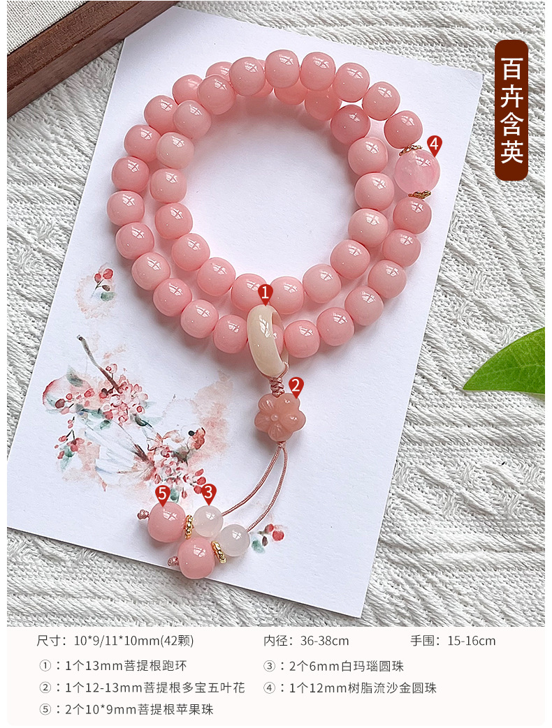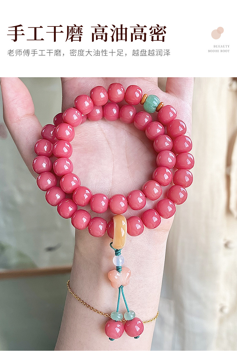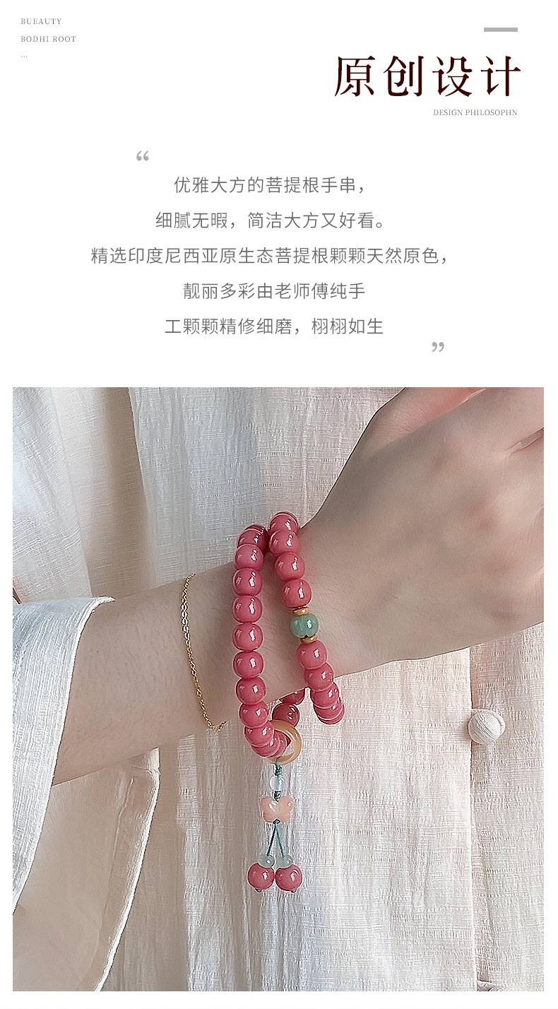 蜜桃粉菩提长手串 手持菩提子佛珠念珠男女文 玩手链