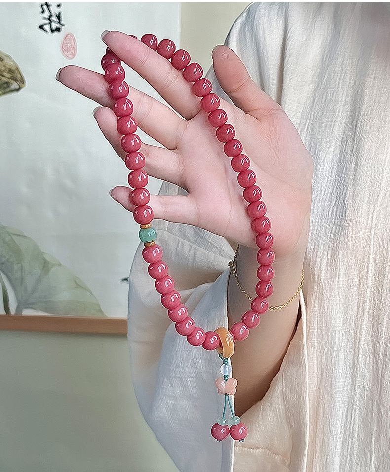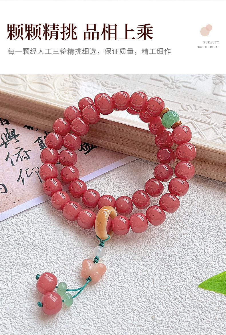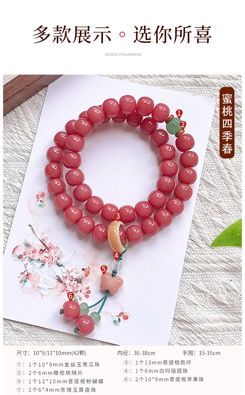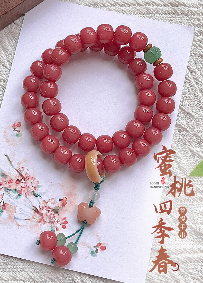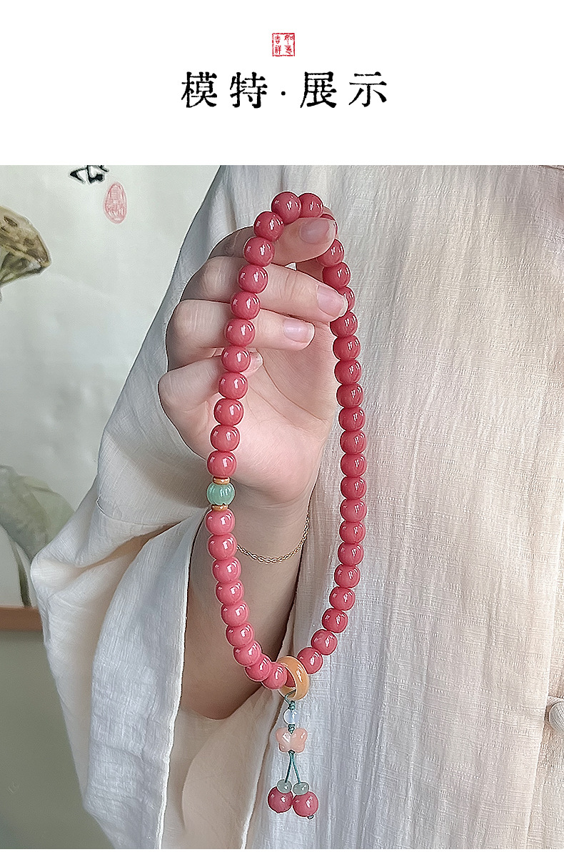 蜜桃粉菩提长手串 手持菩提子佛珠念珠男女文 玩手链
