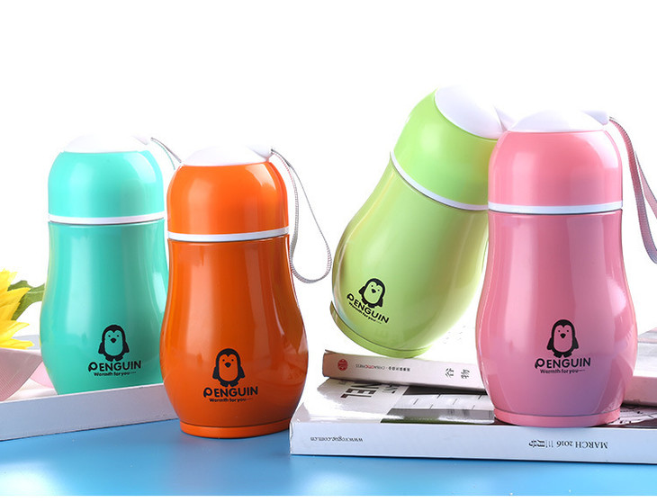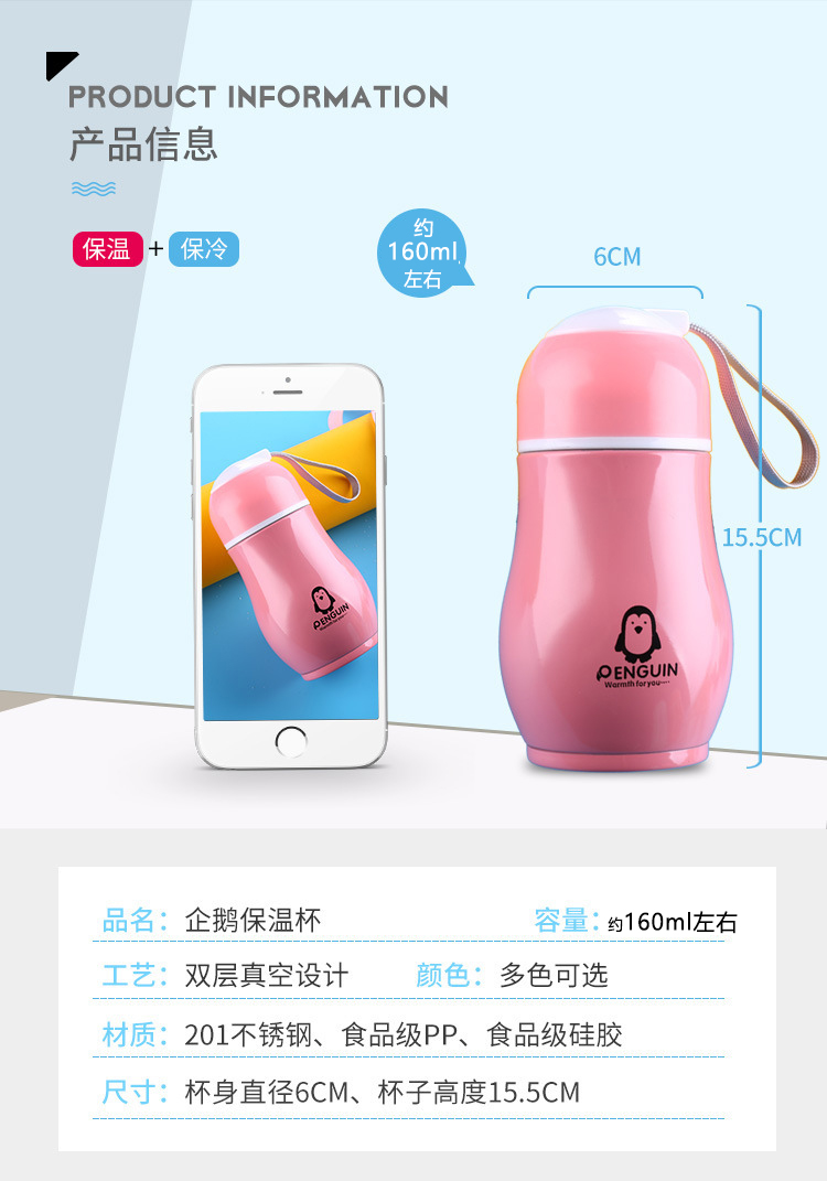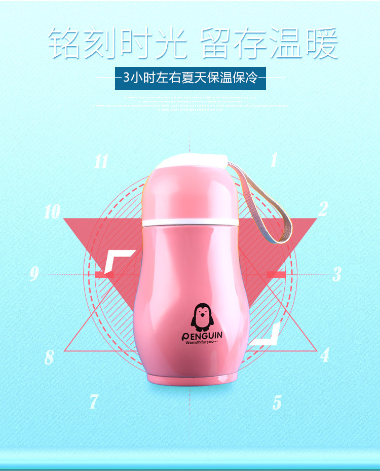 双层不锈钢企鹅保温杯四季可爱学生创意手提水杯保冷卡通密封保温杯子