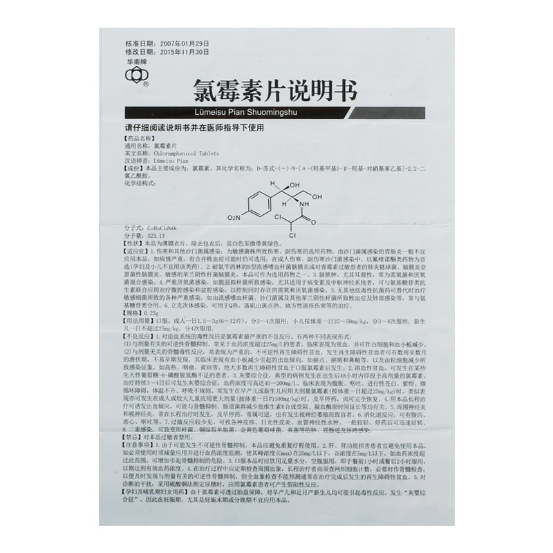 华南牌*片0.25g*100片*1瓶/盒盆腔感染细菌感染肺部感染厌氧菌感染高热肺炎百日咳败血症脑膜炎囊肿胃肠炎地方性斑疹伤寒