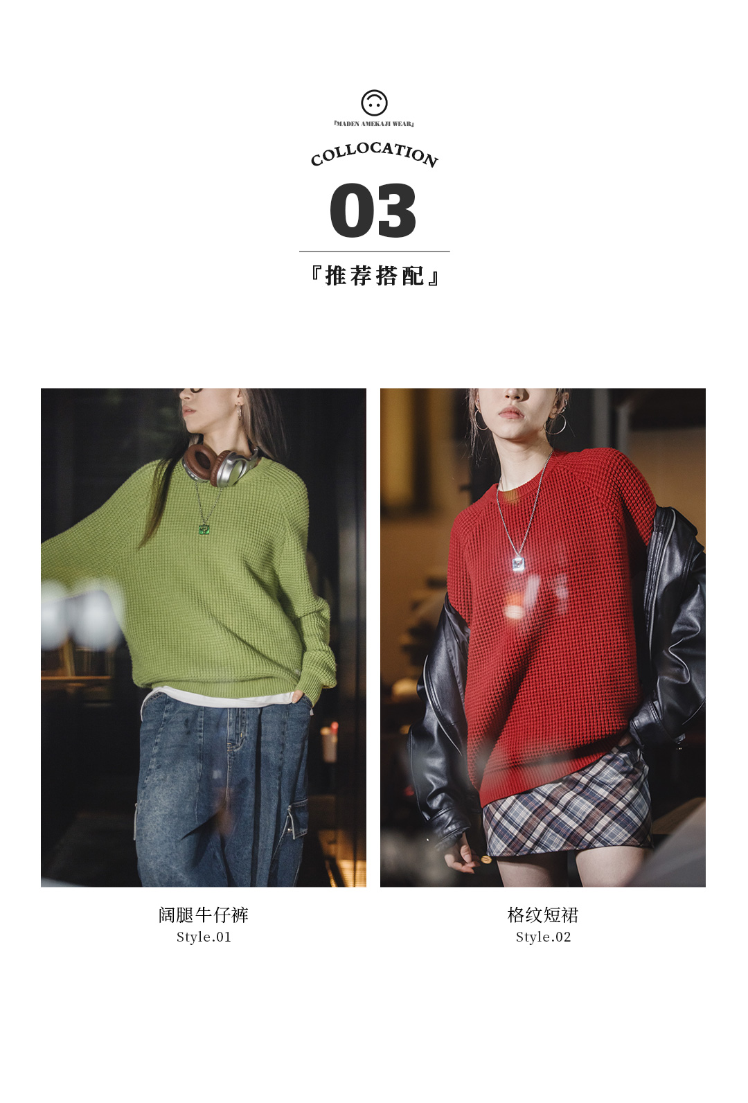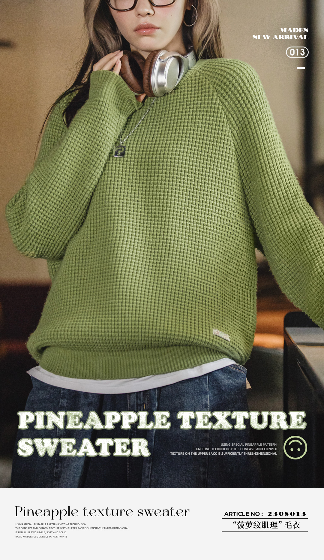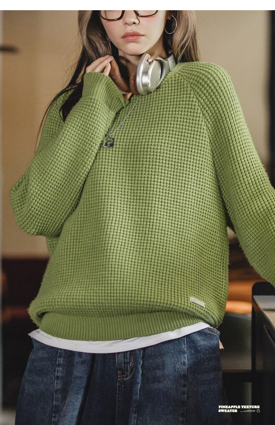 马登美式菠萝纹圣诞毛衣高级感宽松加厚套头舒芙蕾针织衫秋冬女