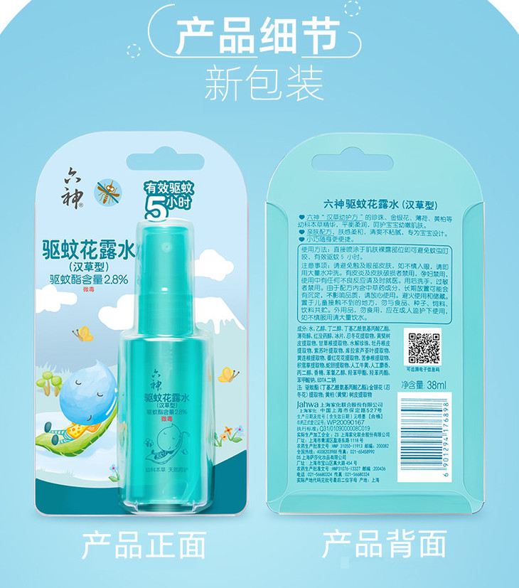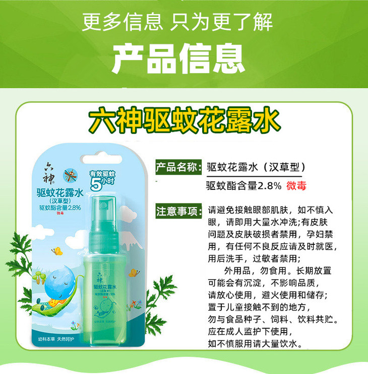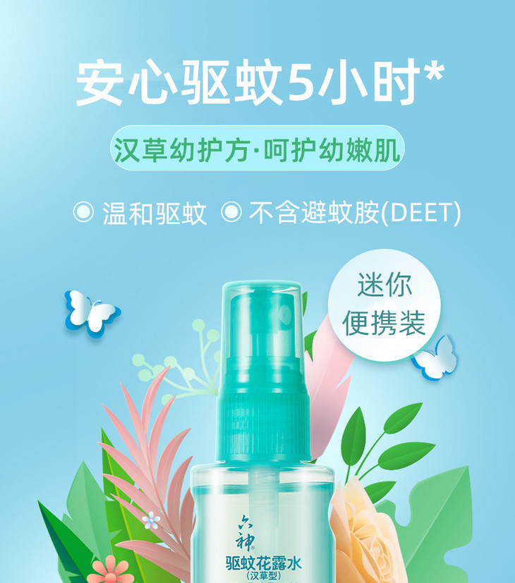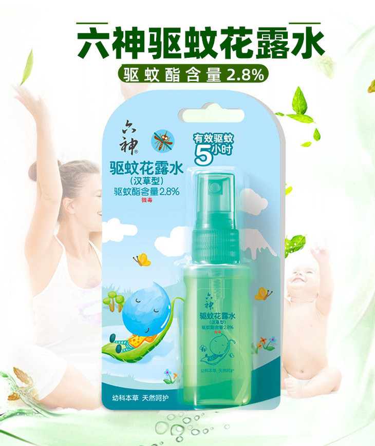 六神宝宝驱蚊花露水汉草型便携儿童驱蚊水液38ml/瓶
