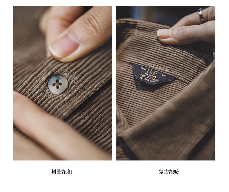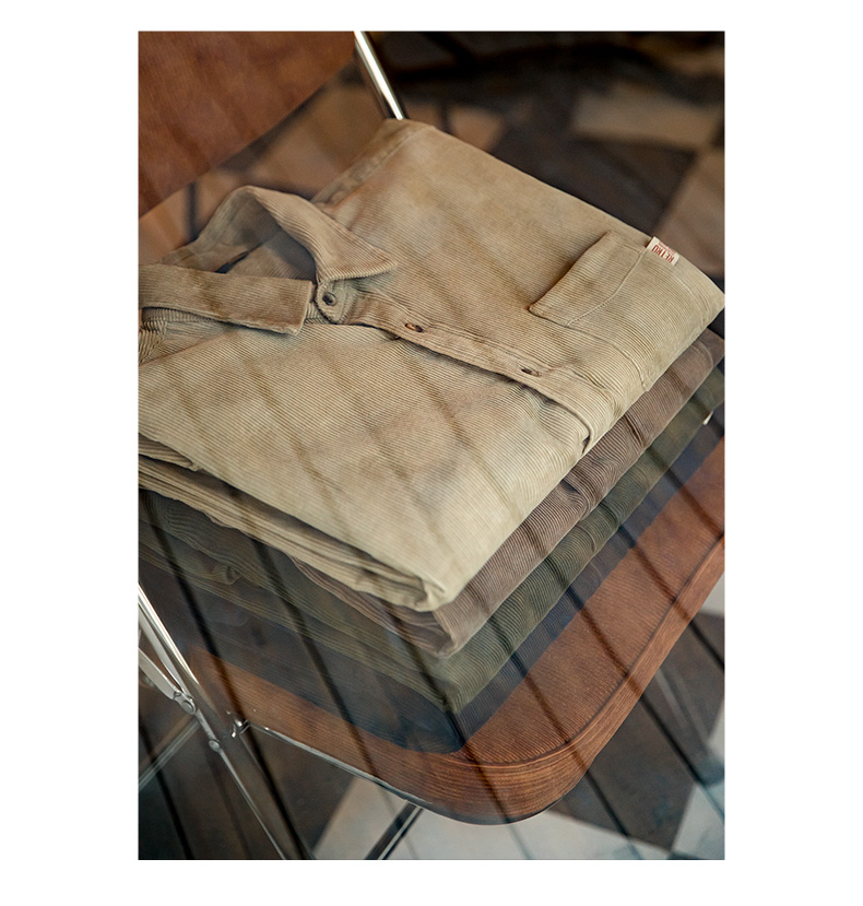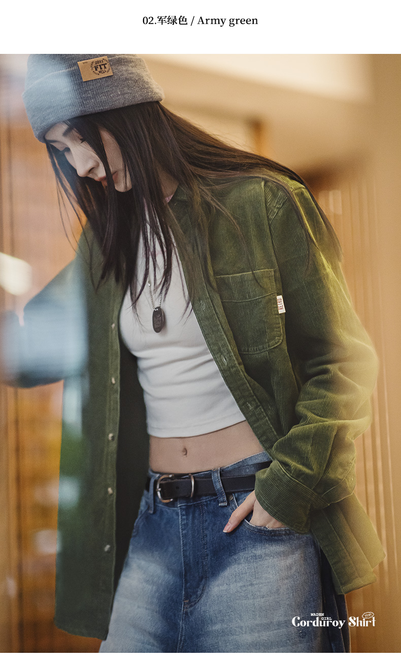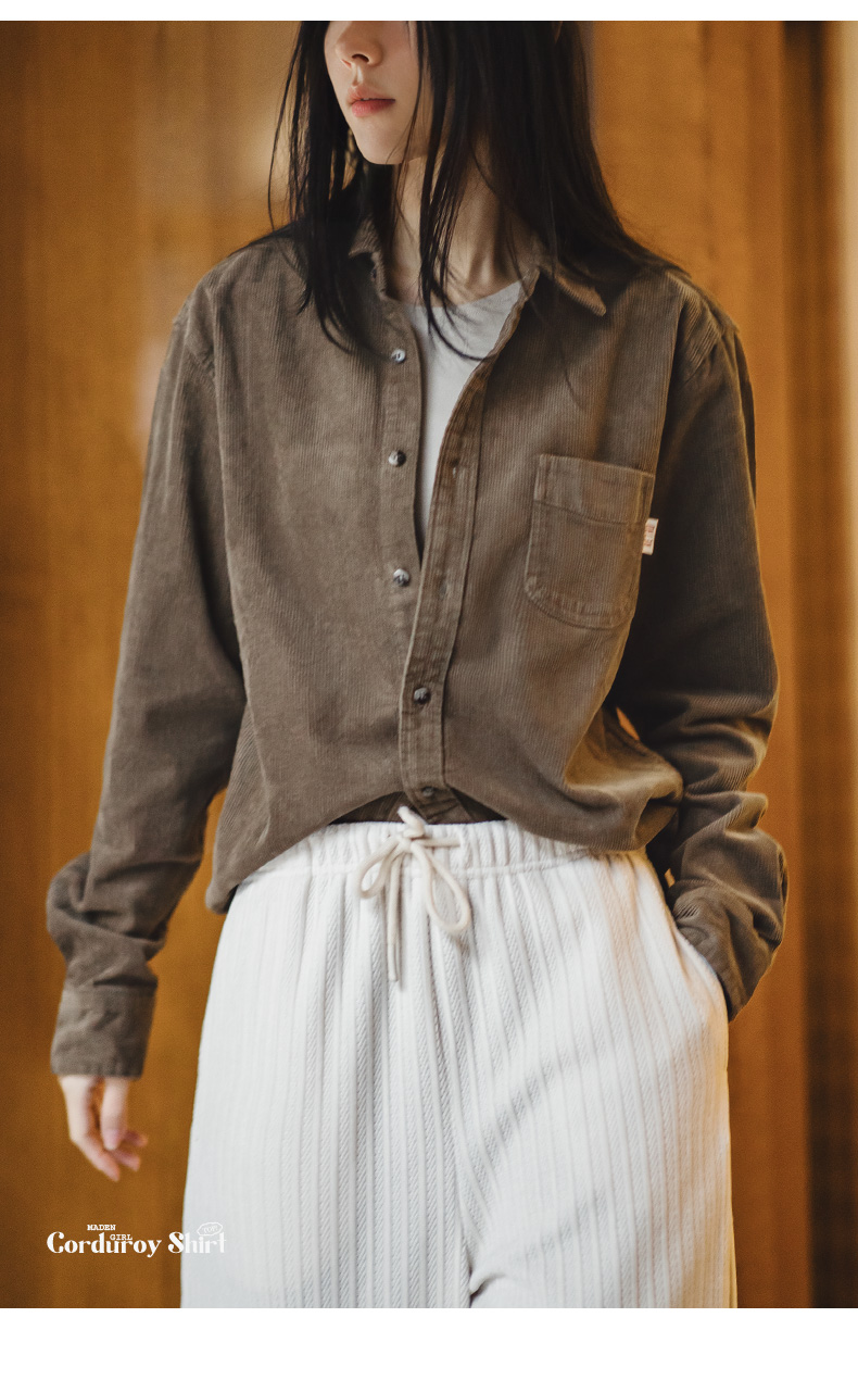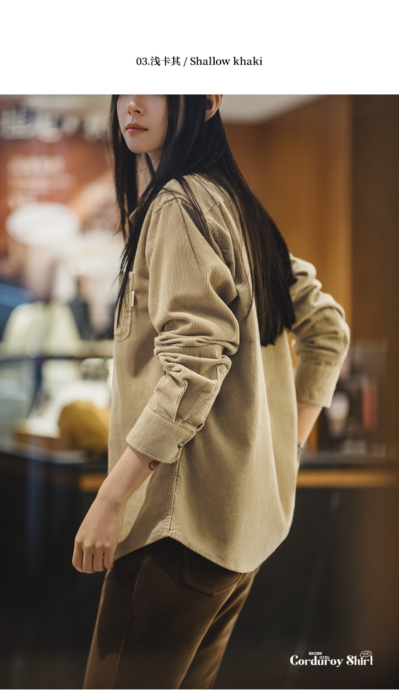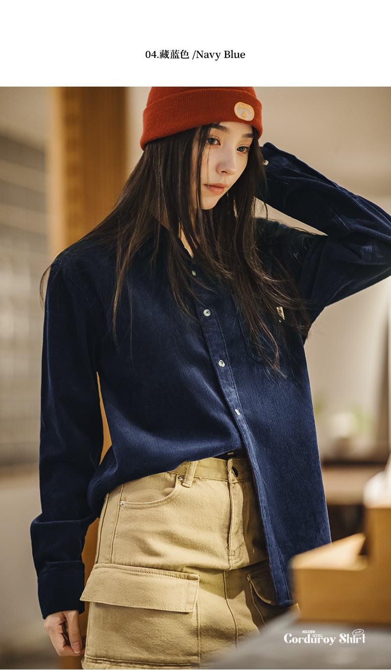马登女装复古灯芯绒衬衫宽松内搭休闲翻领长袖衬衣女秋冬款上衣