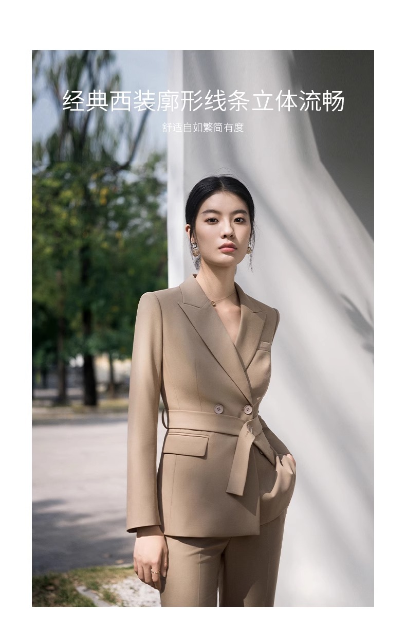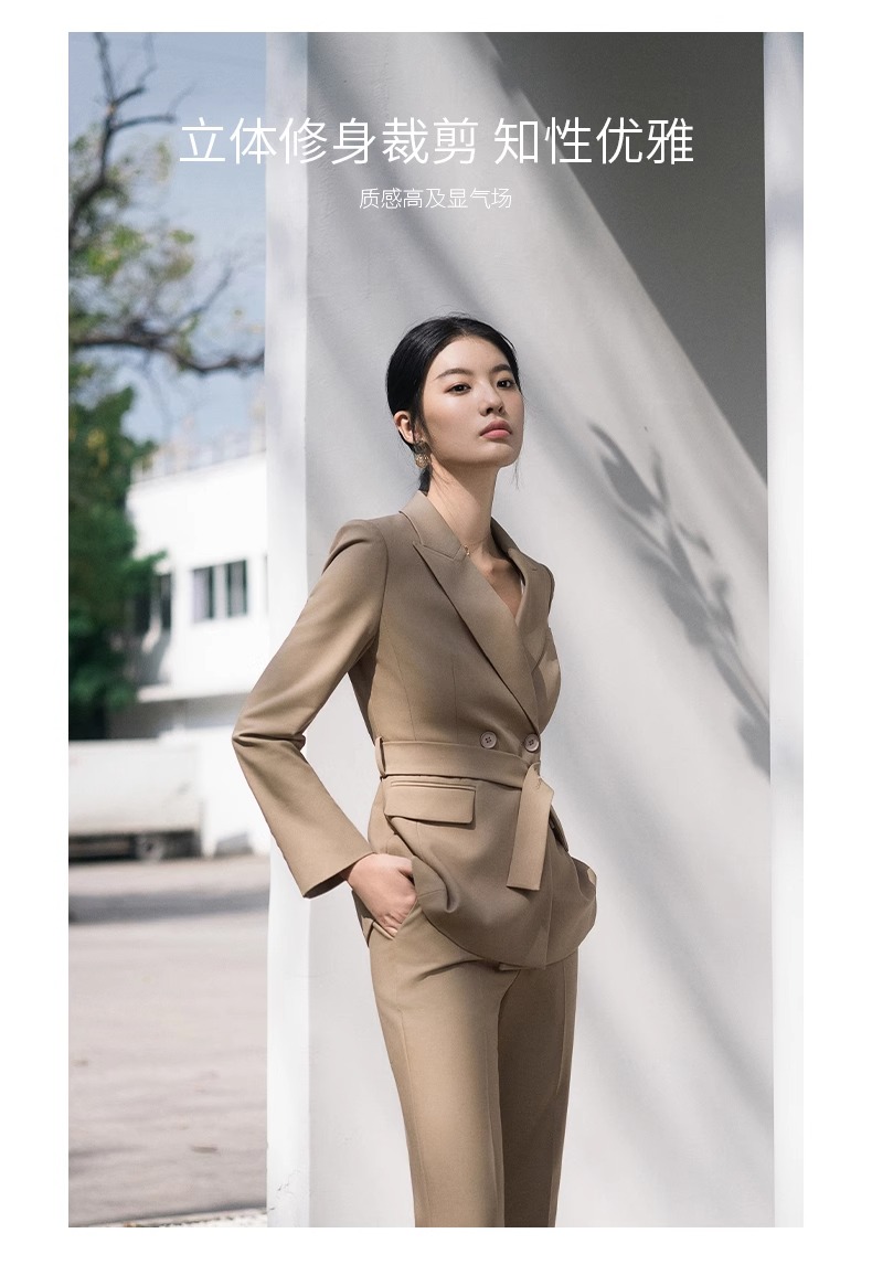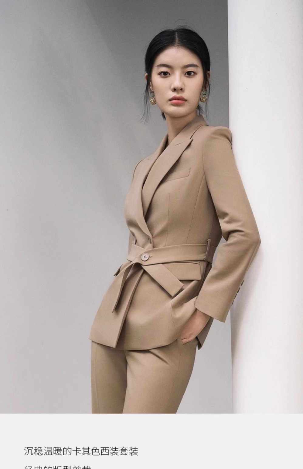 春季新款卡其色职业西装套装女2024年韩版修身西服高端律师