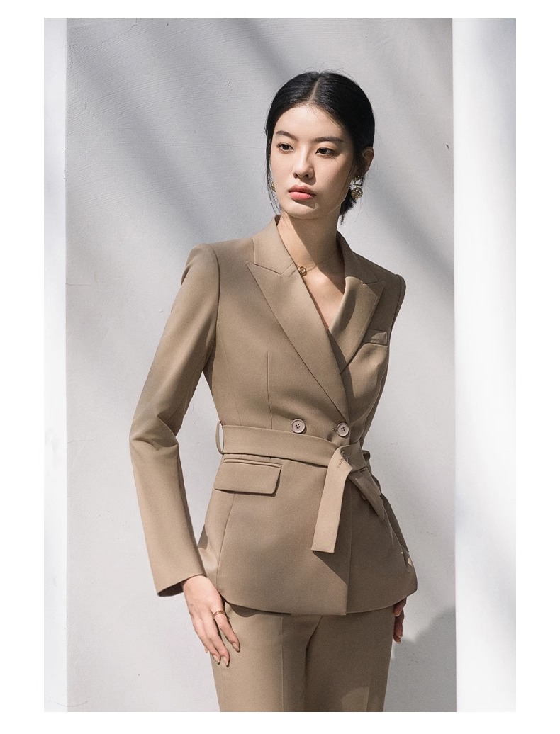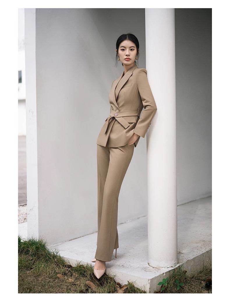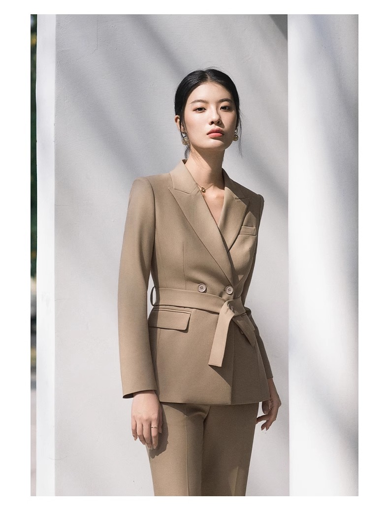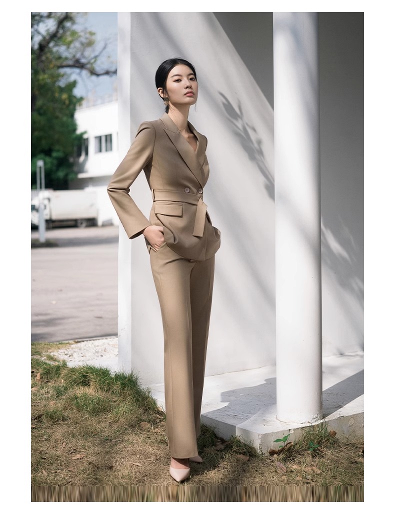 春季新款卡其色职业西装套装女2024年韩版修身西服高端律师