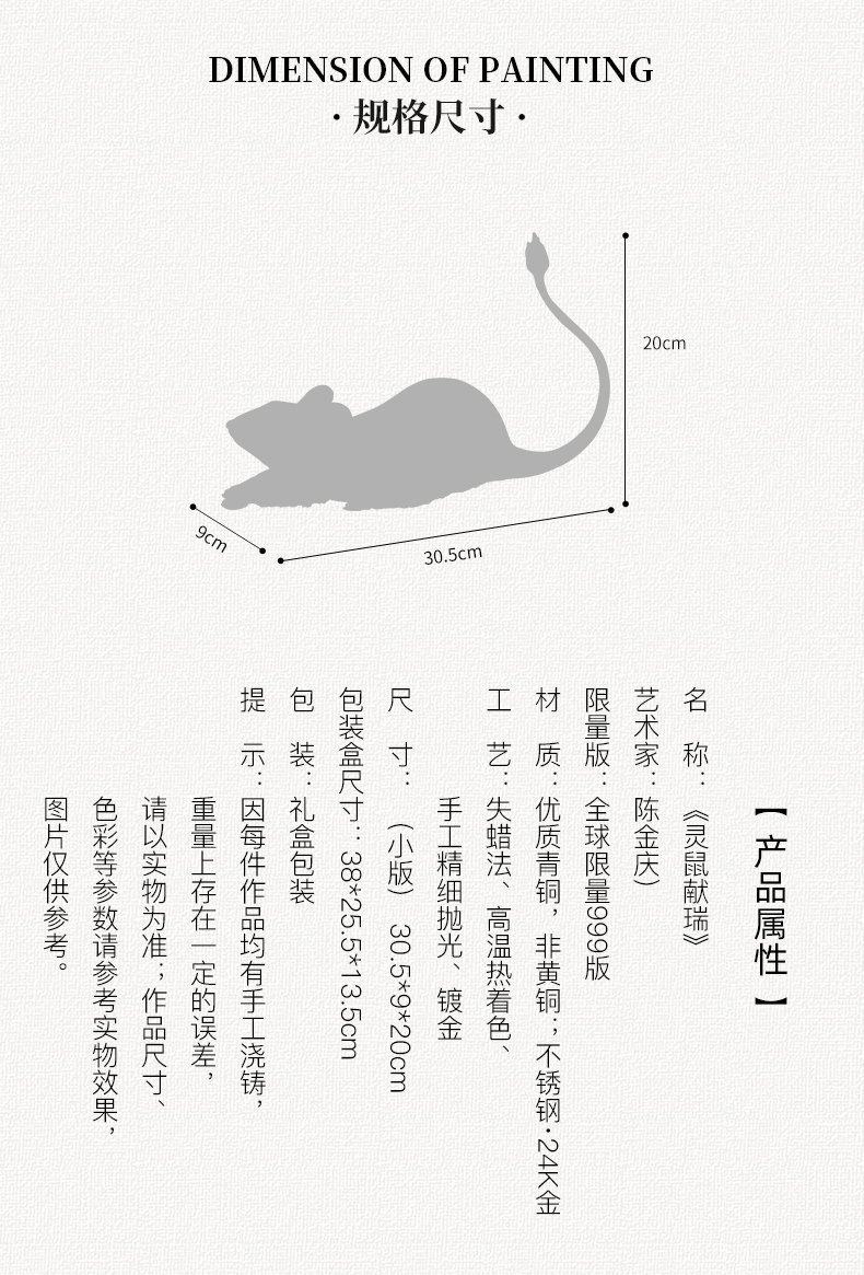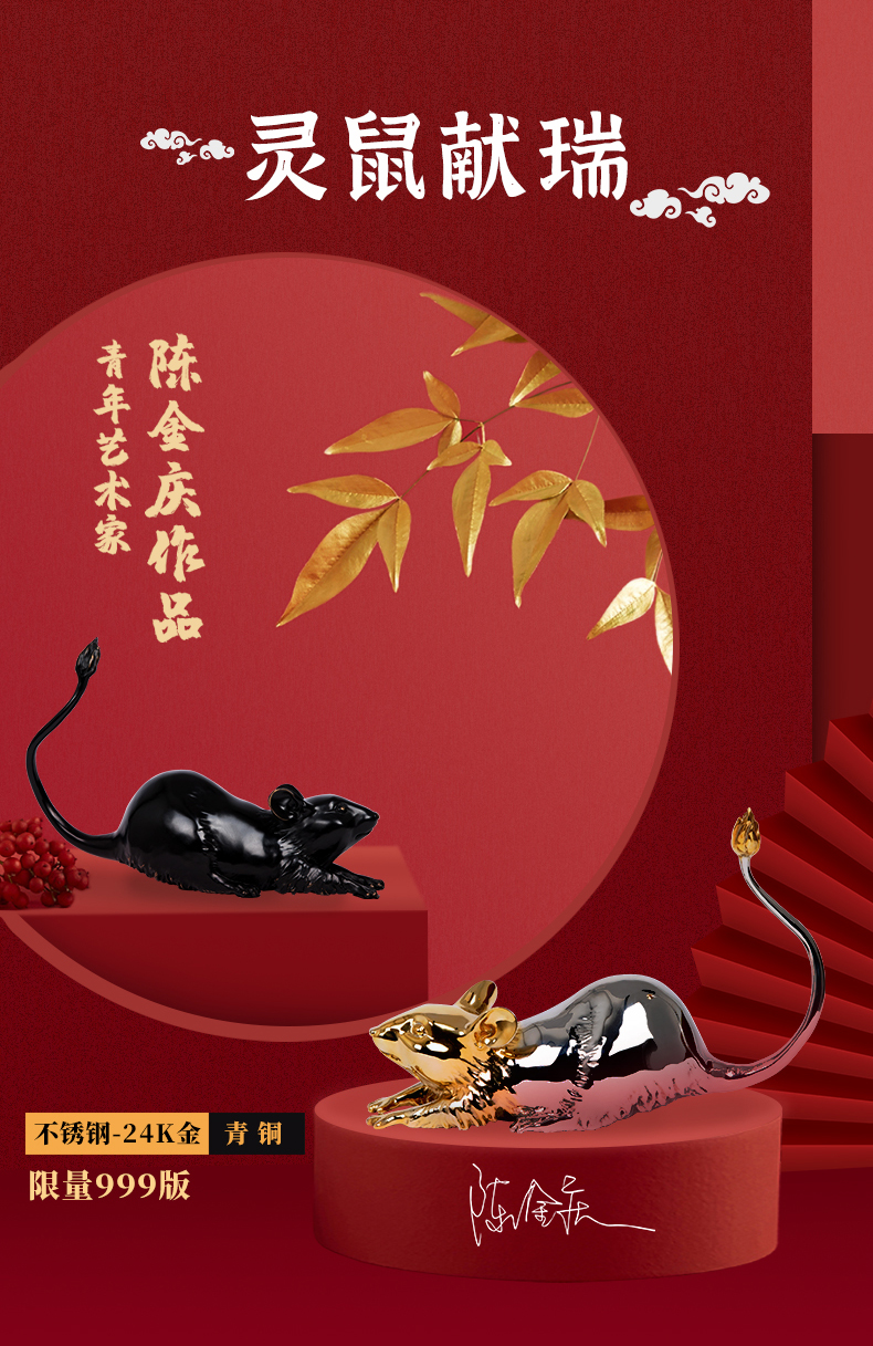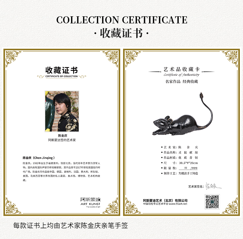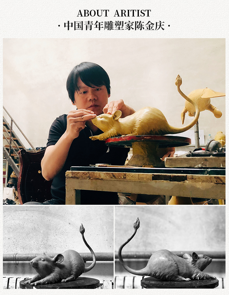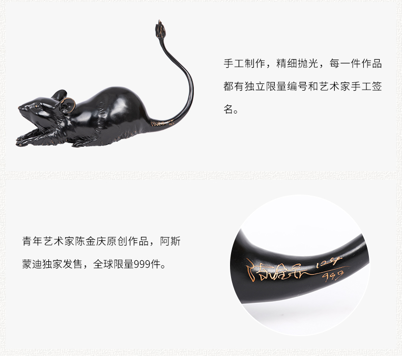 【6F】阿斯蒙迪陈金庆老鼠青铜摆件艺术品创意摆件生日礼品生肖鼠收藏品