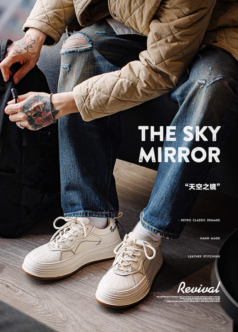 马登2025新款重制厚底小白鞋男复古休闲鞋小众拼接潮流运动情侣鞋