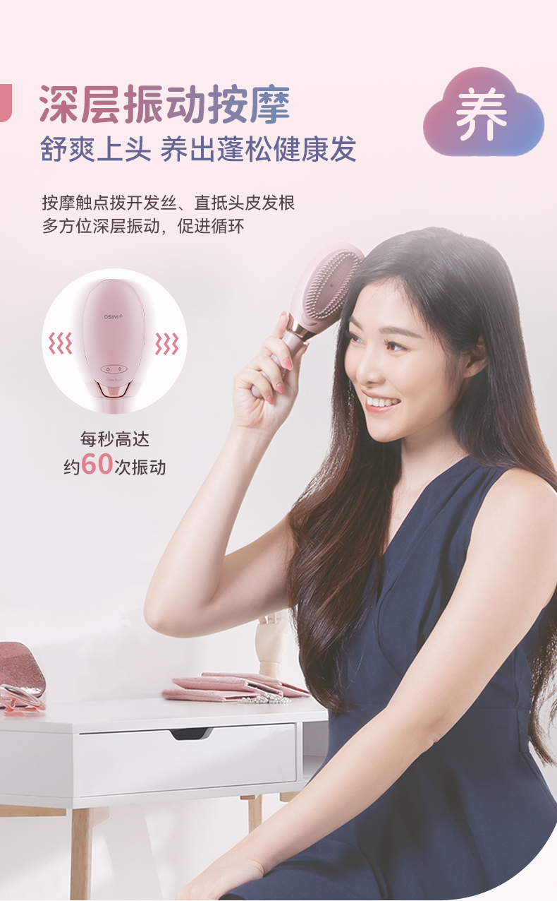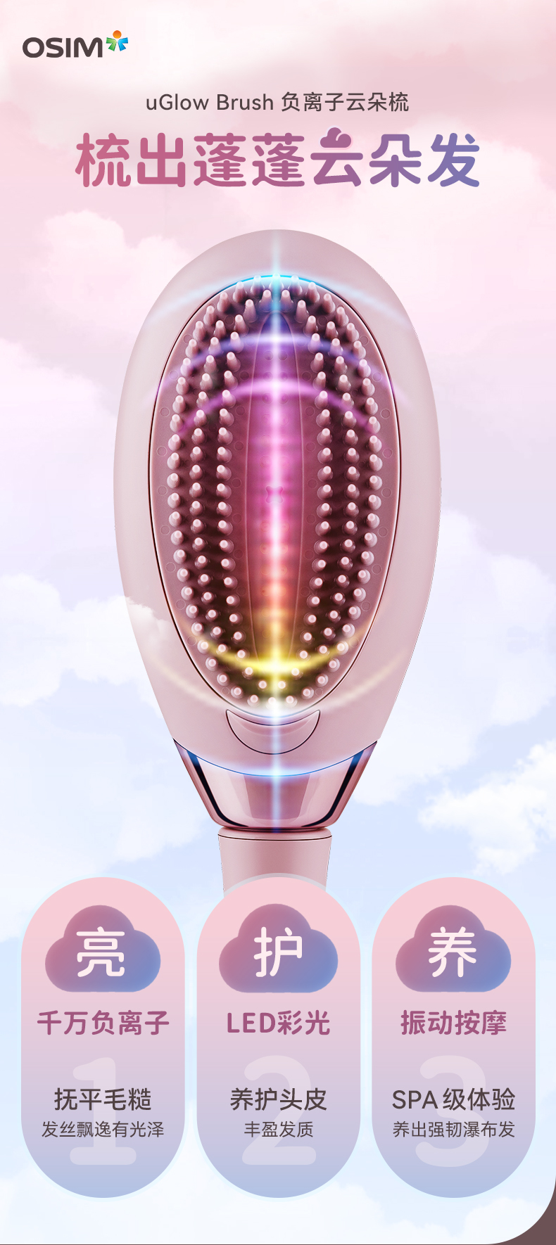 【6F】OSIM傲胜负离子蓬蓬梳云朵梳直发梳不伤发手持便携美发按摩梳1223