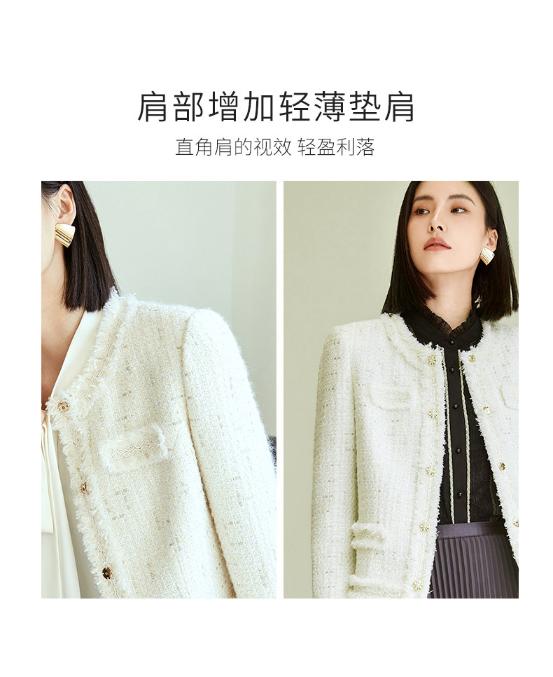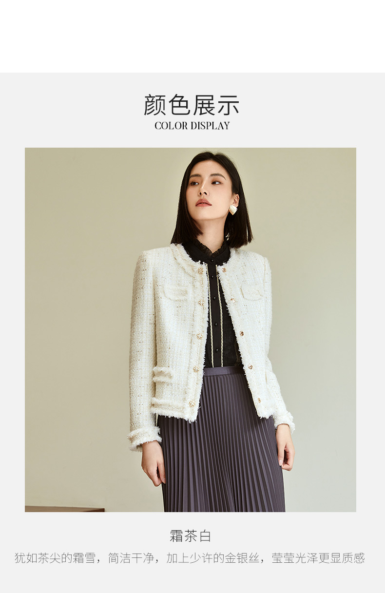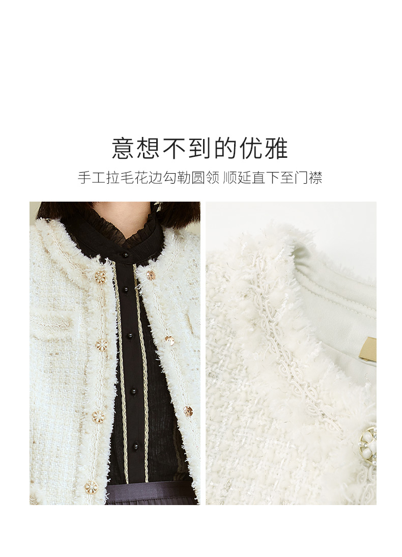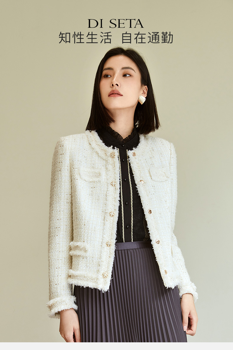 玳莎拉毛设计感小香风外套女2023年秋季新款优雅圆领收腰显瘦上衣 DC37304