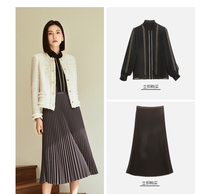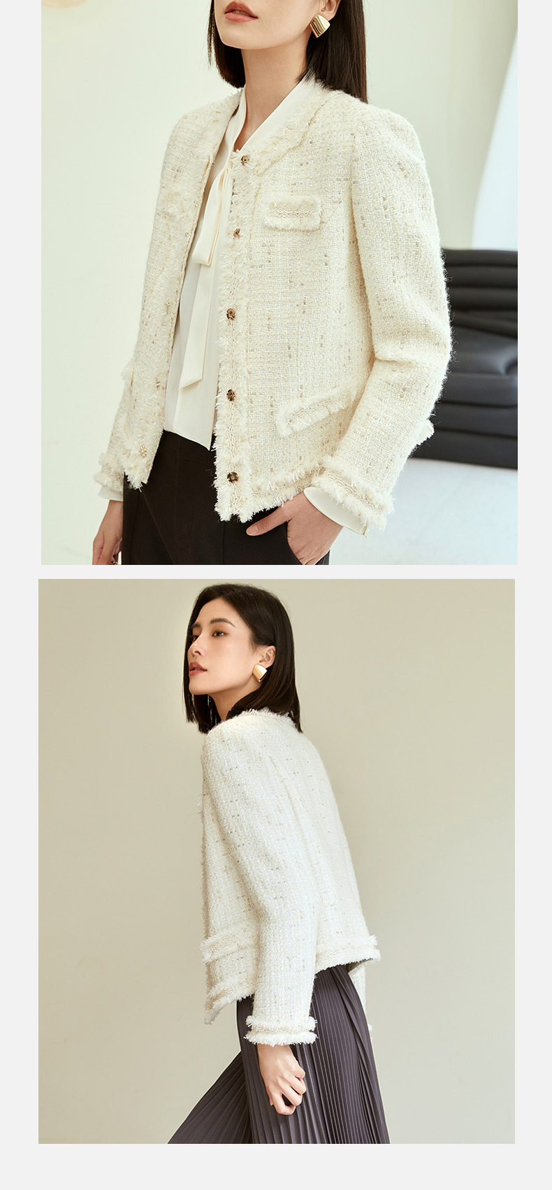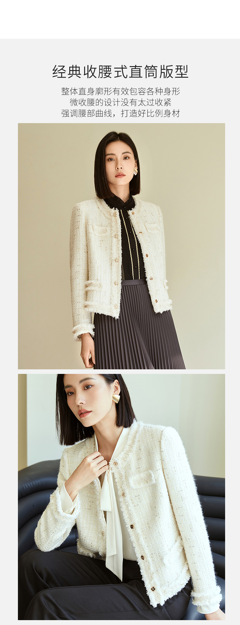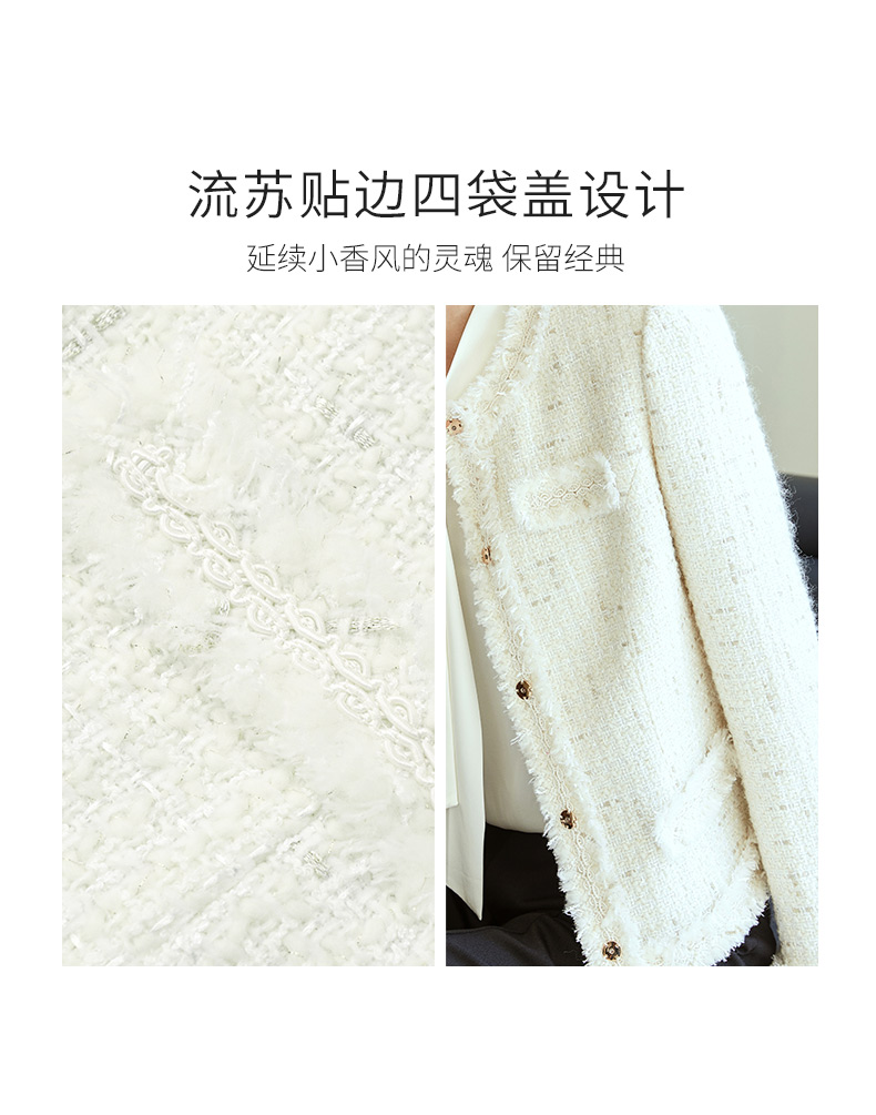 玳莎拉毛设计感小香风外套女2023年秋季新款优雅圆领收腰显瘦上衣 DC37304