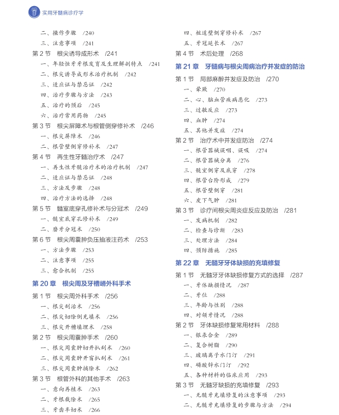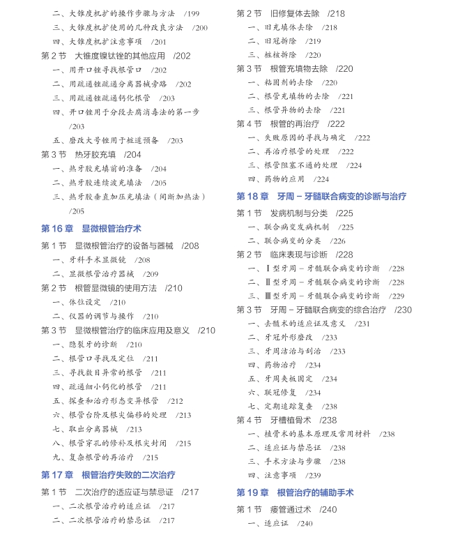 本书根据我国基层牙医的实际,全面介绍牙髓病与根尖周病诊疗需要了解的解剖、生理、病理、临床症状、检查诊断、治疗、修复方法及药物应用等方面的内容。本书除了介绍传统的治疗方法外,对现代根管治疗的器械、材料和方法都做了详细的介绍,并介绍目前对牙髓炎保髓治疗的前沿科技新方法。此外,本书还吸收众多国内外专家学者的重要论述及宝贵经验,为同行提供良好的参考资料。