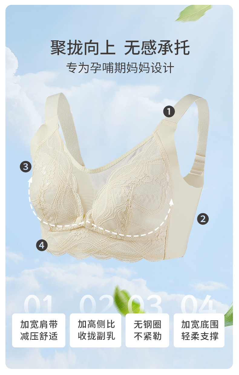 雅黛丽哺乳内衣防下垂聚拢产后喂奶文胸大胸显小薄款透气棉质胸罩
