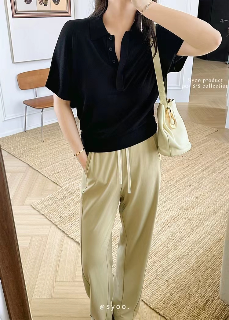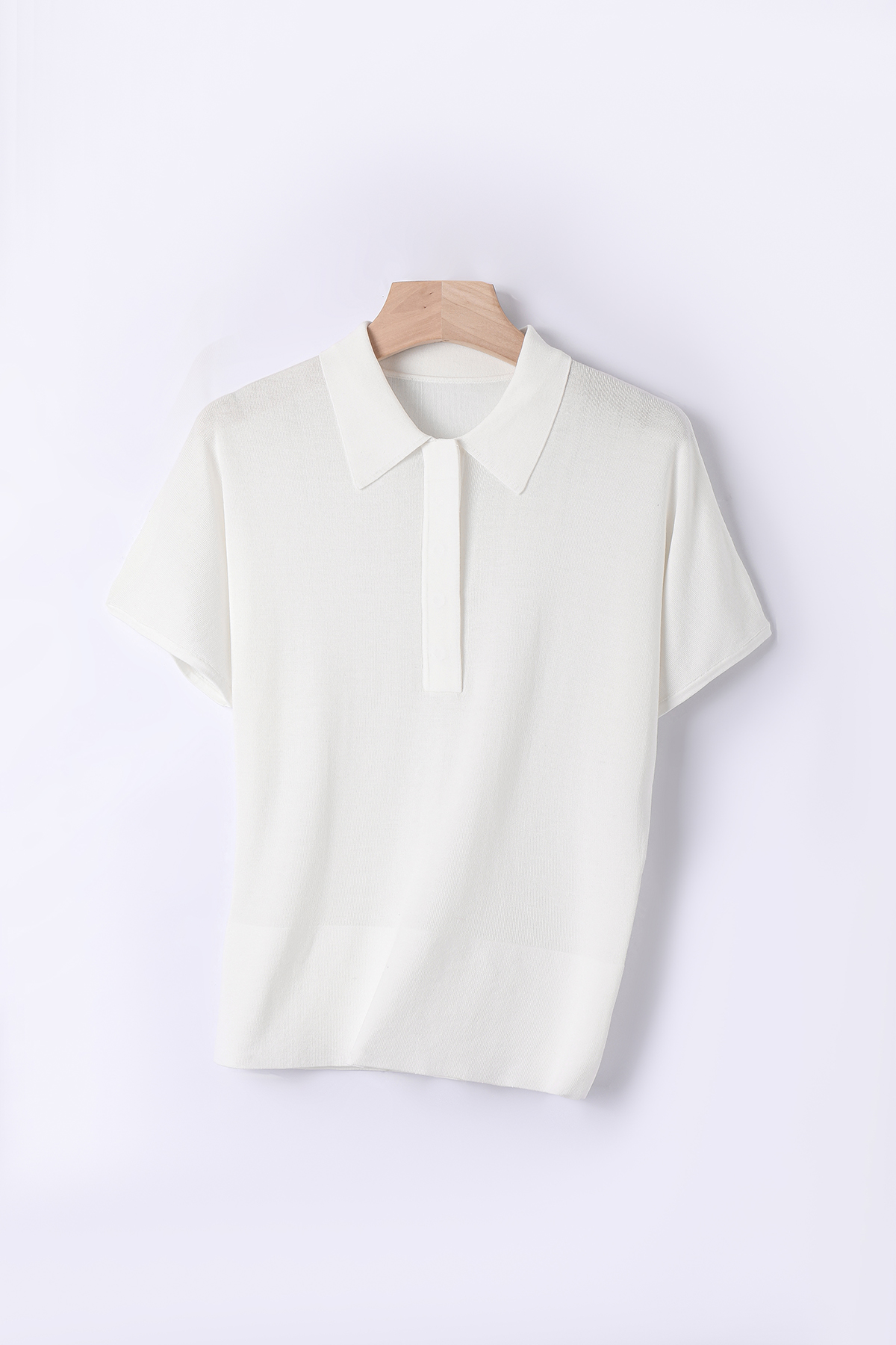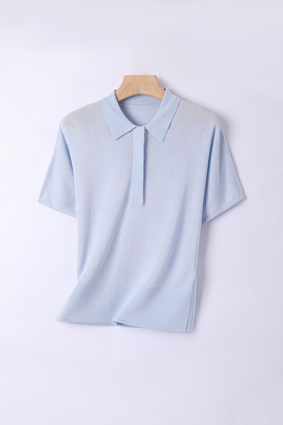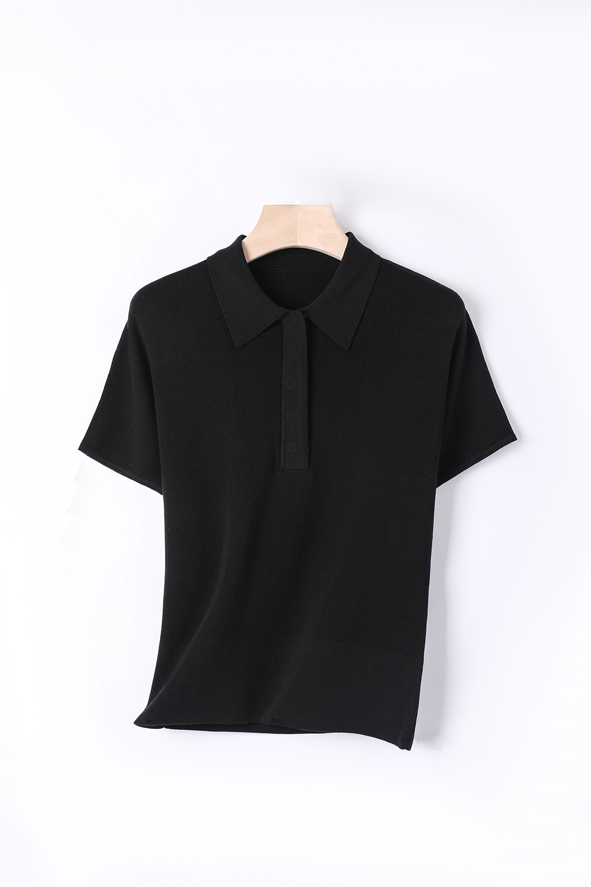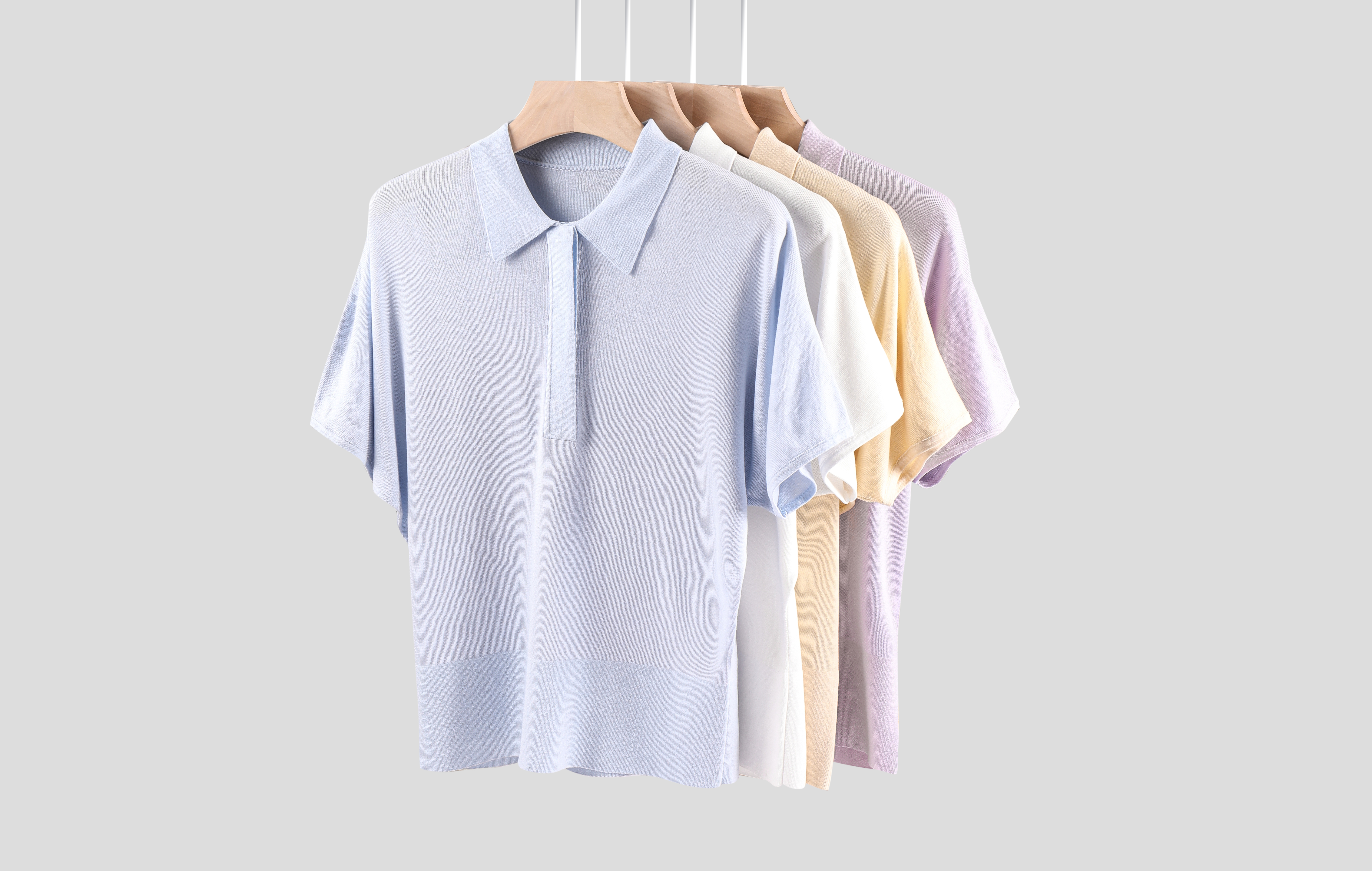 醋酸桑蚕丝面料 POLO领蝙蝠袖针织衫 成衣柔韧挺括自然 面料延展回弹力好 夏日穿毫无闷热感 不易松垮走形 上身垂坠有型不垮塌JZ2416