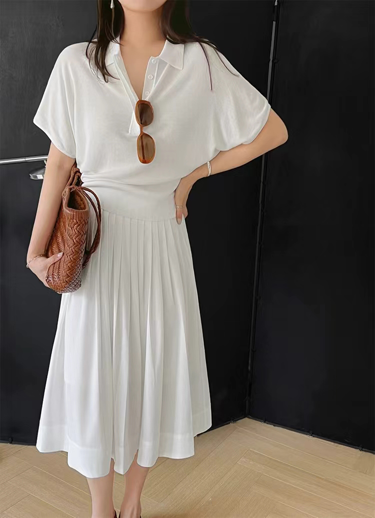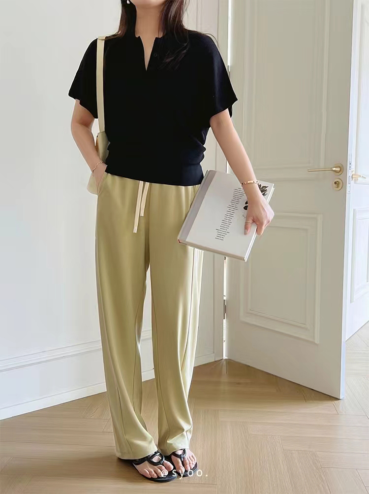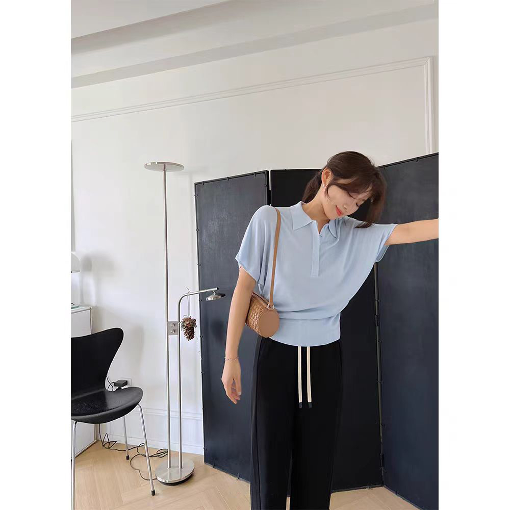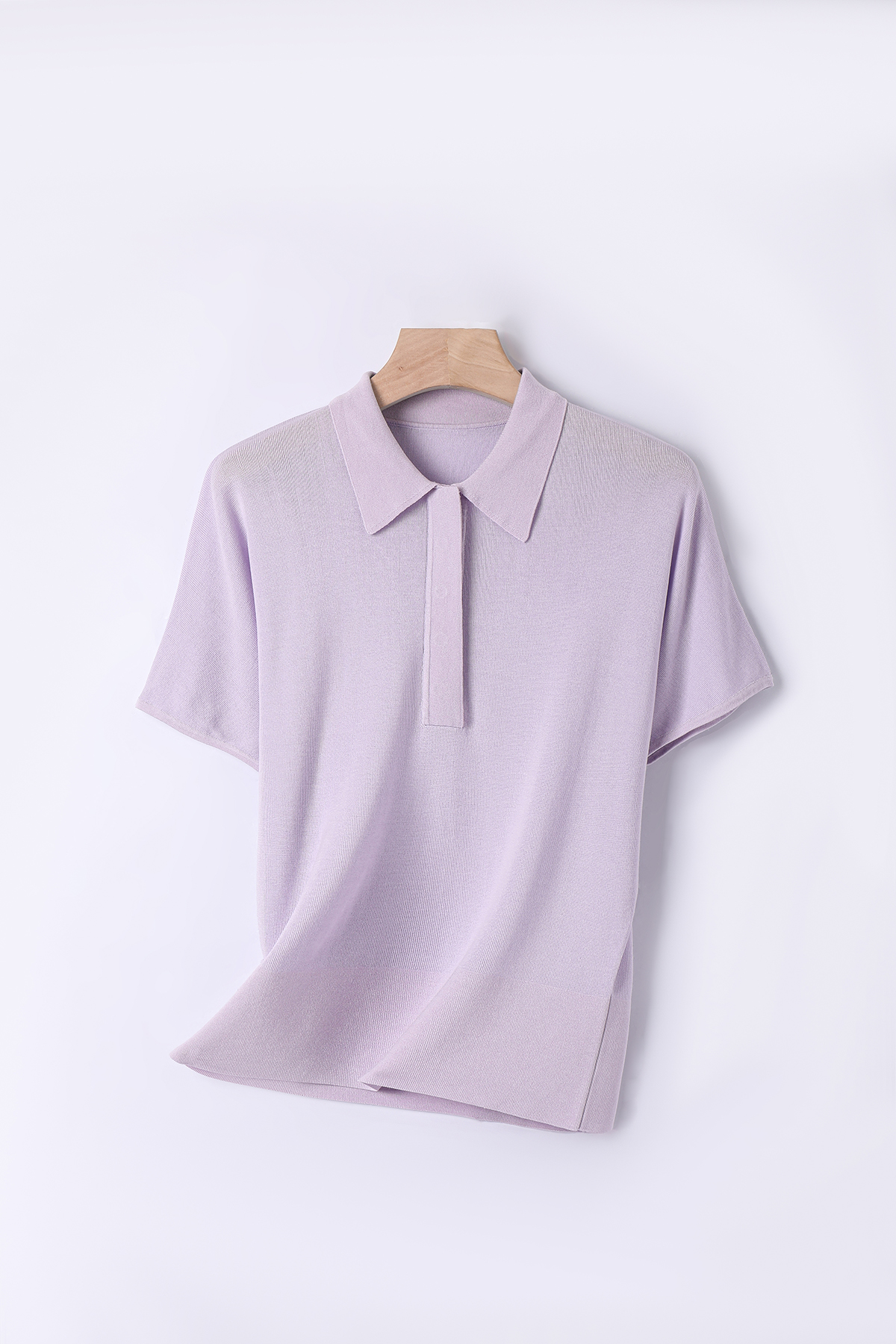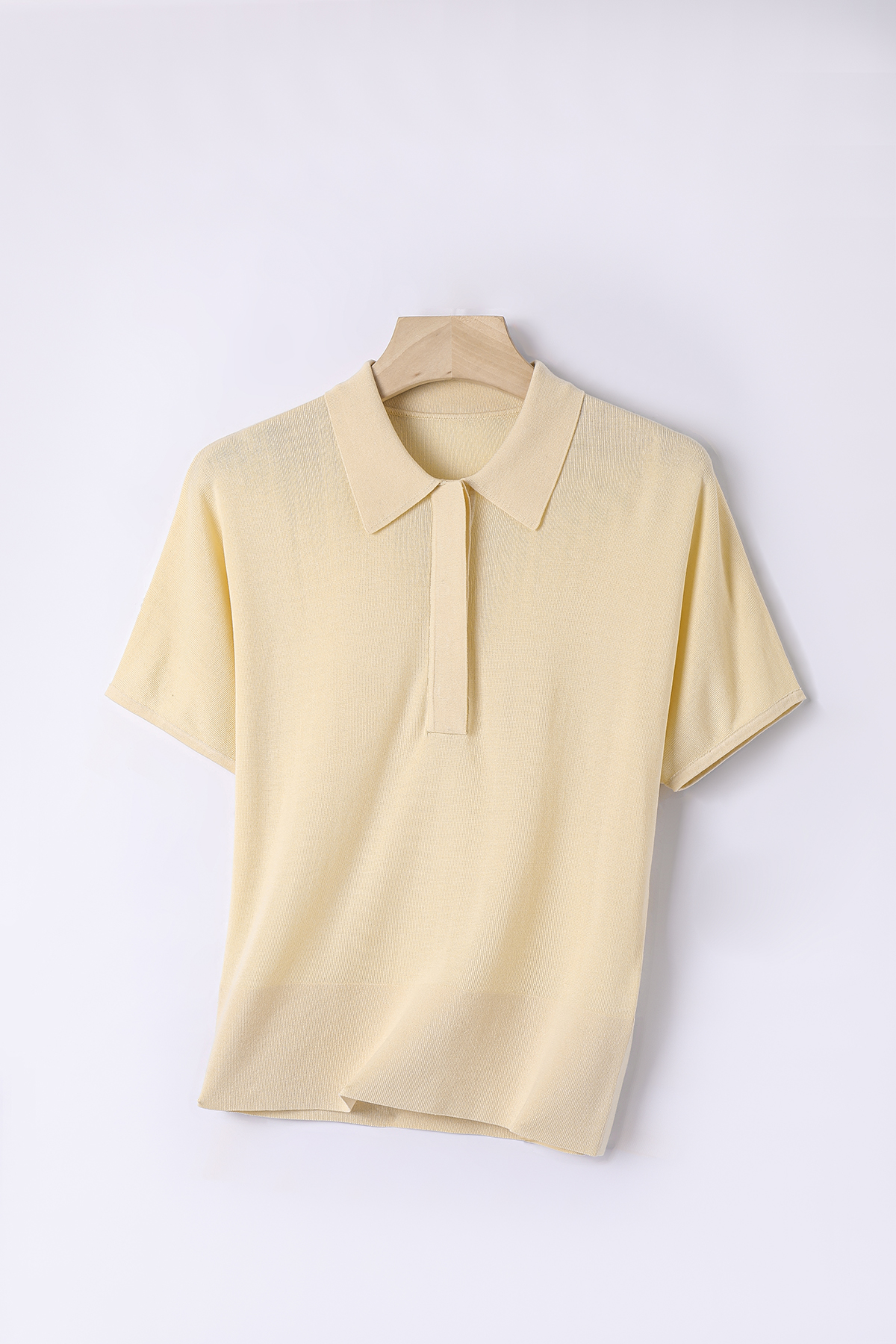 醋酸桑蚕丝面料 POLO领蝙蝠袖针织衫 成衣柔韧挺括自然 面料延展回弹力好 夏日穿毫无闷热感 不易松垮走形 上身垂坠有型不垮塌JZ2416