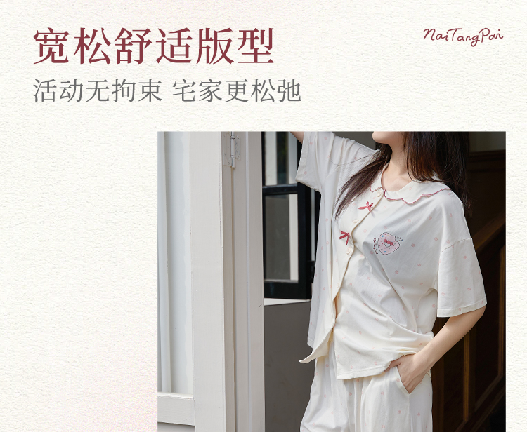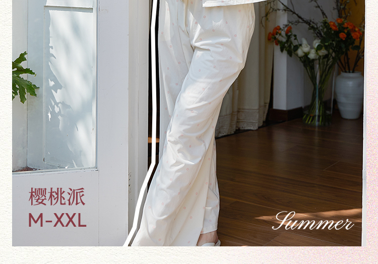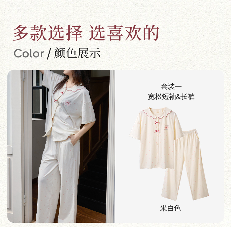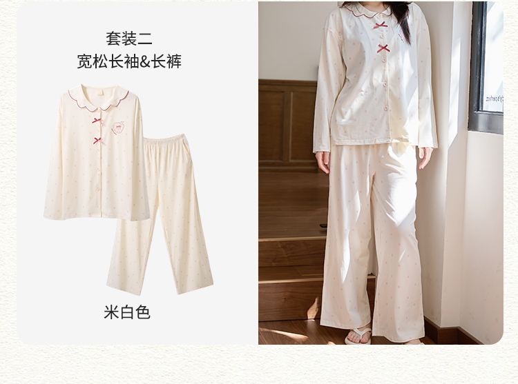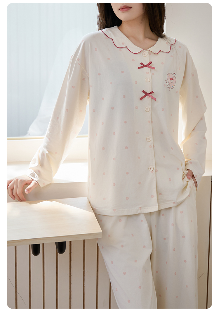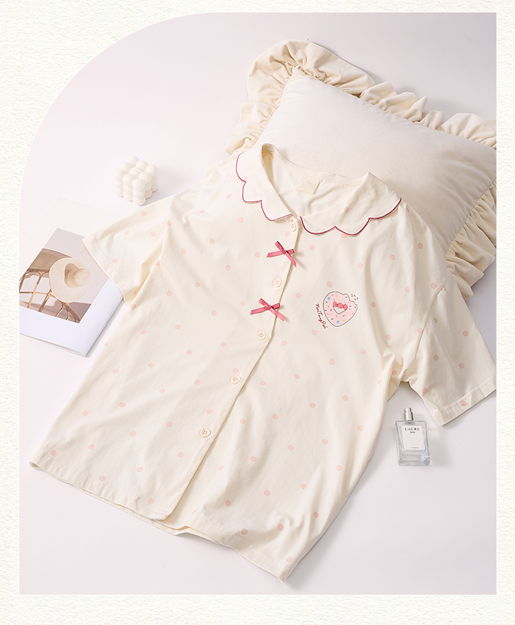 【积分兑换】[樱桃派家居服]春夏睡衣女甜美可爱蝴蝶结韩式波点显瘦套装