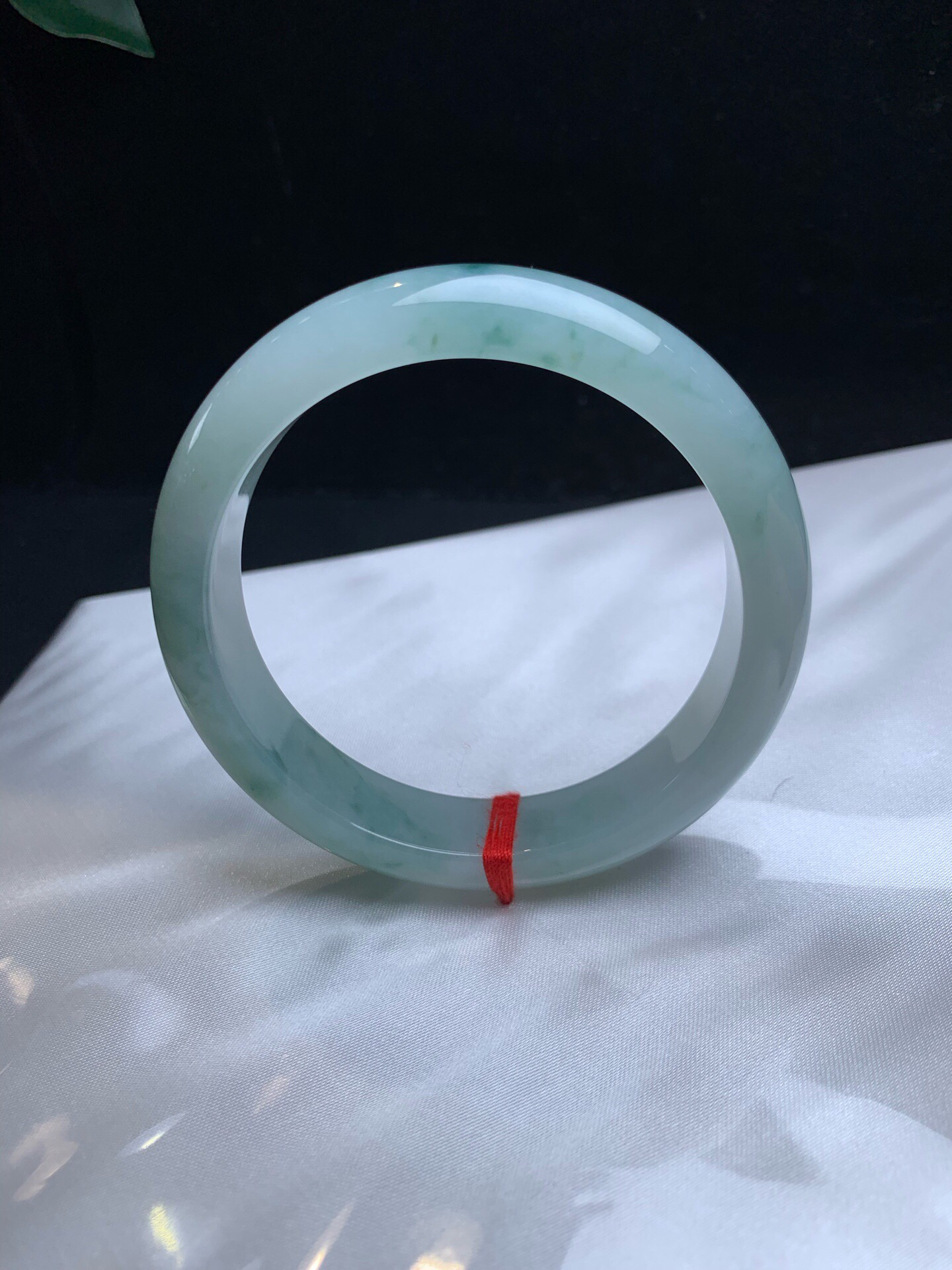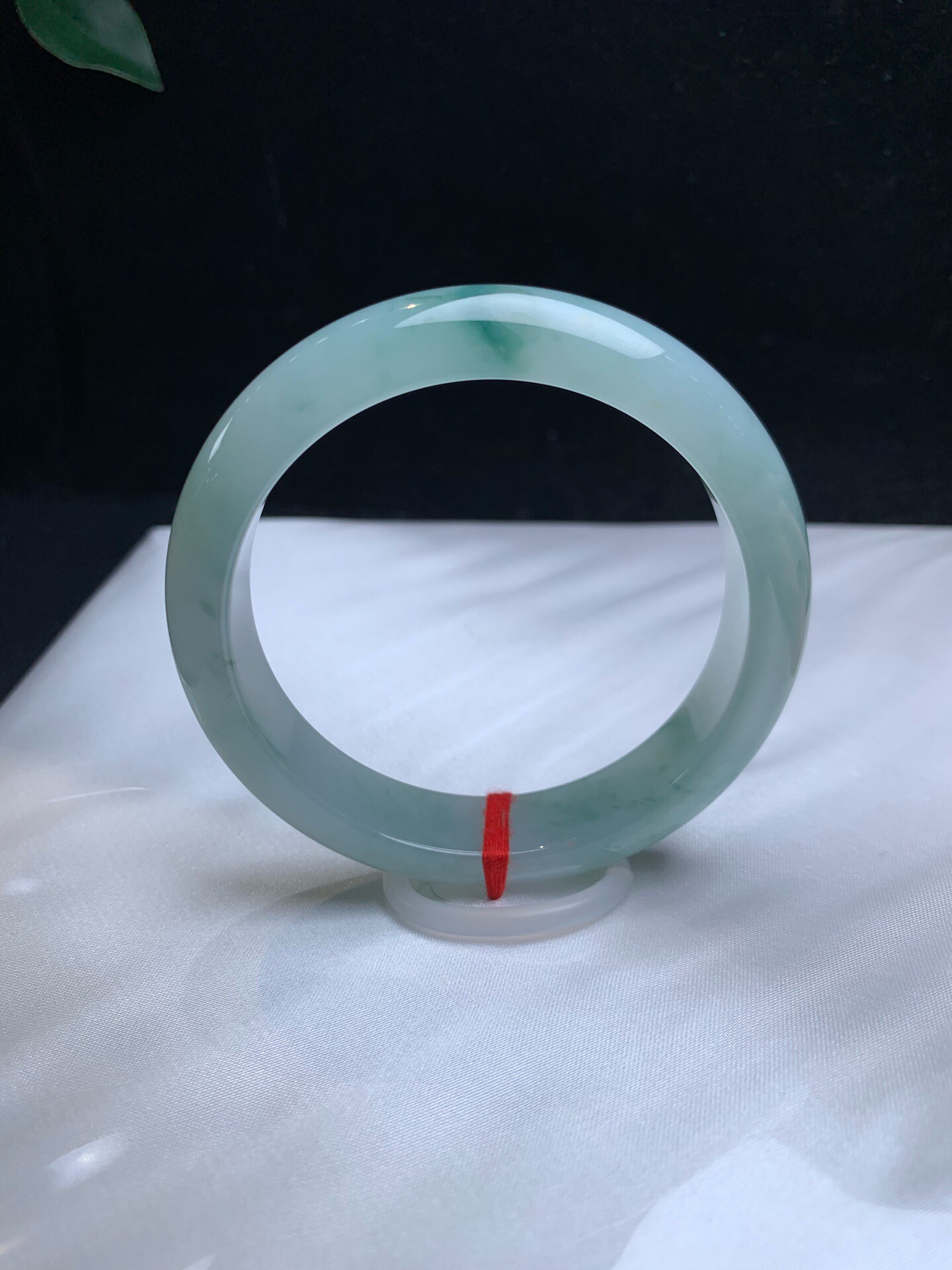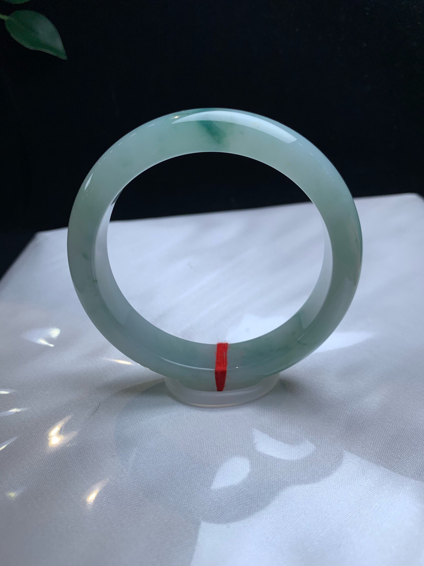 620726,56.3飘绿圆条手镯。12.5mm,条形好,整条带浅绿底,干净清爽,完美的