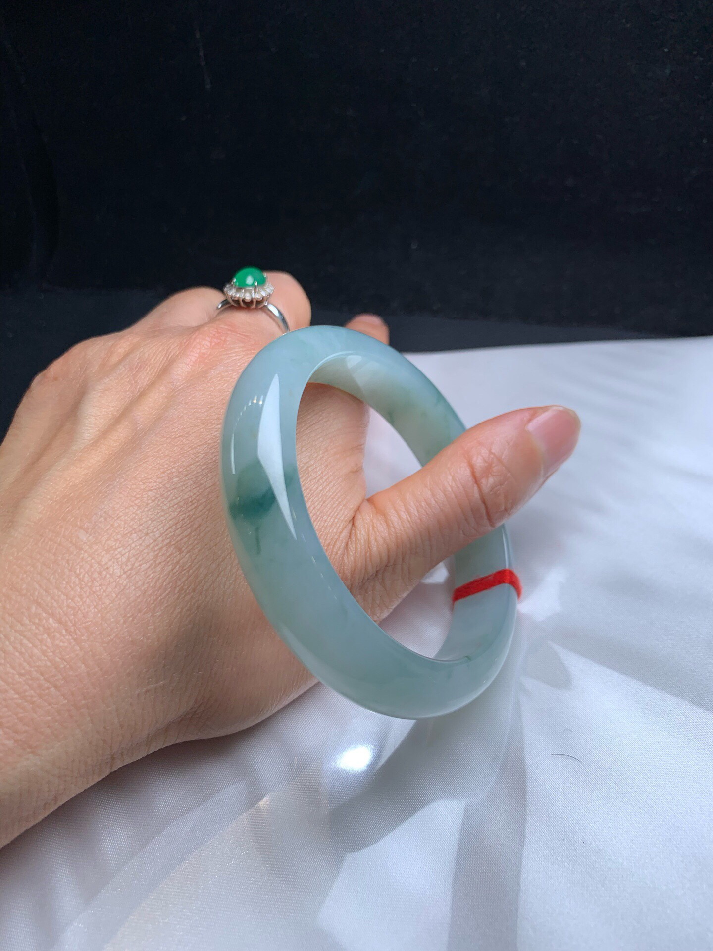 612861,58.5冰飘花手镯,13.5-7.8mm,整条底妆非常细腻干净, 胶胶润润的,飘清新蓝花,清秀完美,超值价💰50000 #优石客珠宝#香玉荟萃