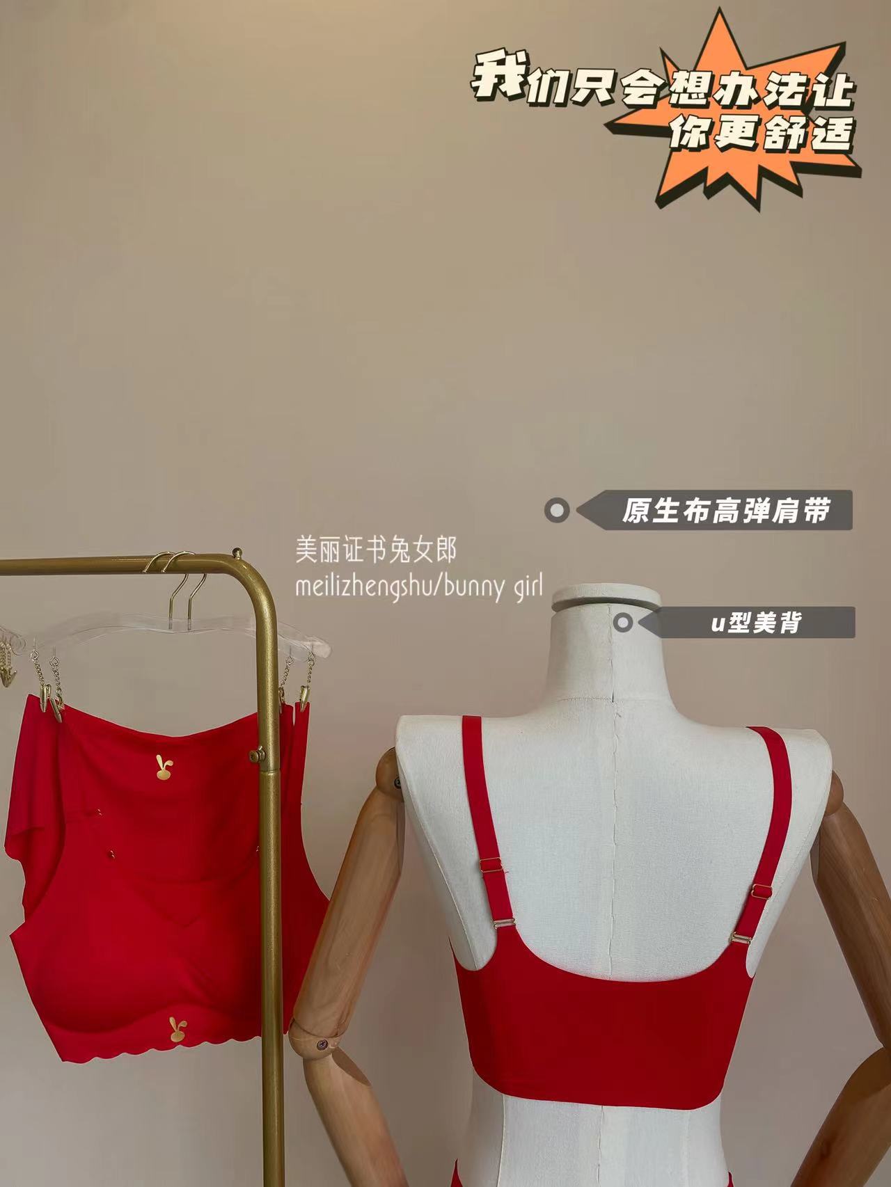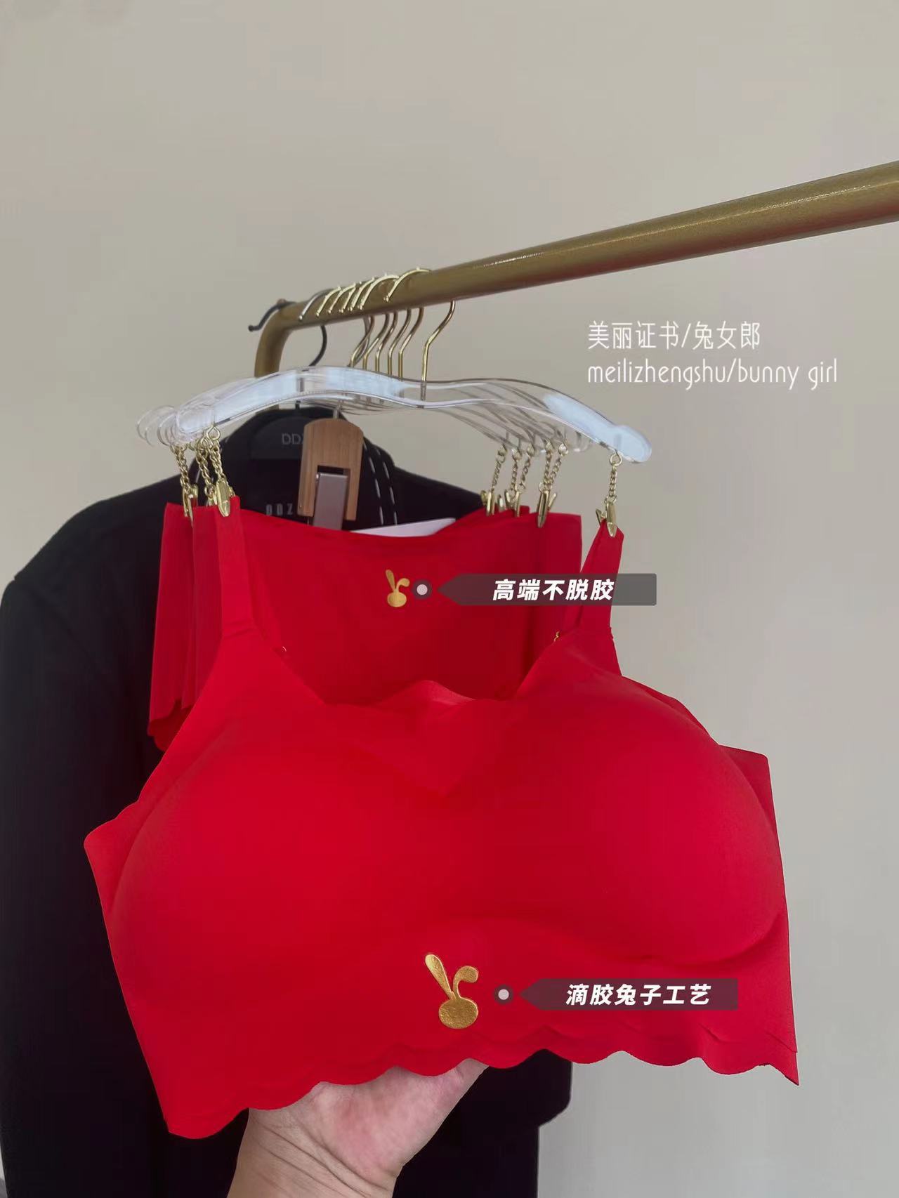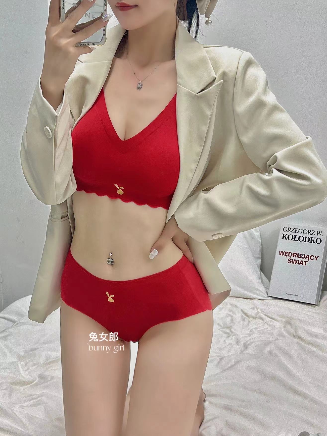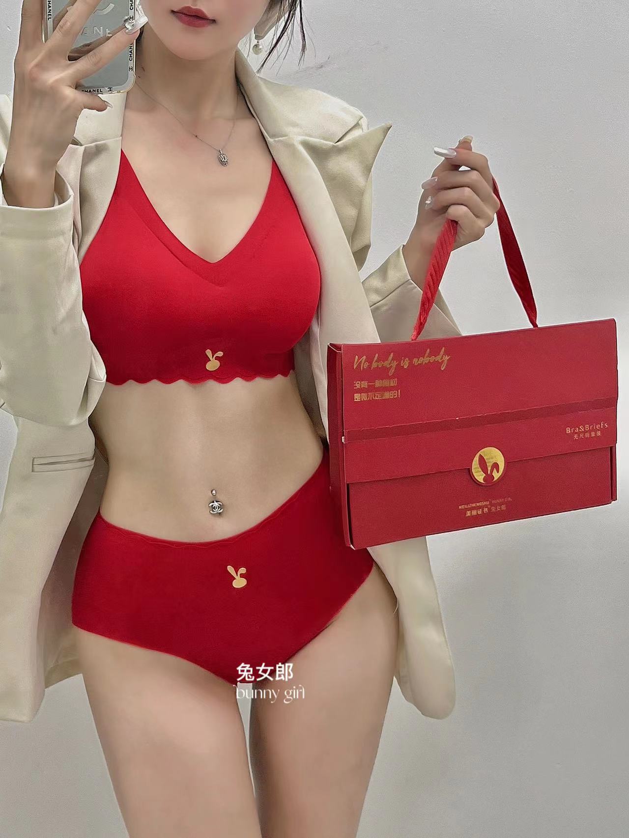 【新年限定❗️兔女郎文胸套装】桑蚕丝底档,心机小波浪增加甜美感!蛇年大红女士无痕本命年结婚无钢圈聚拢内衣礼盒装新年年货礼盒
