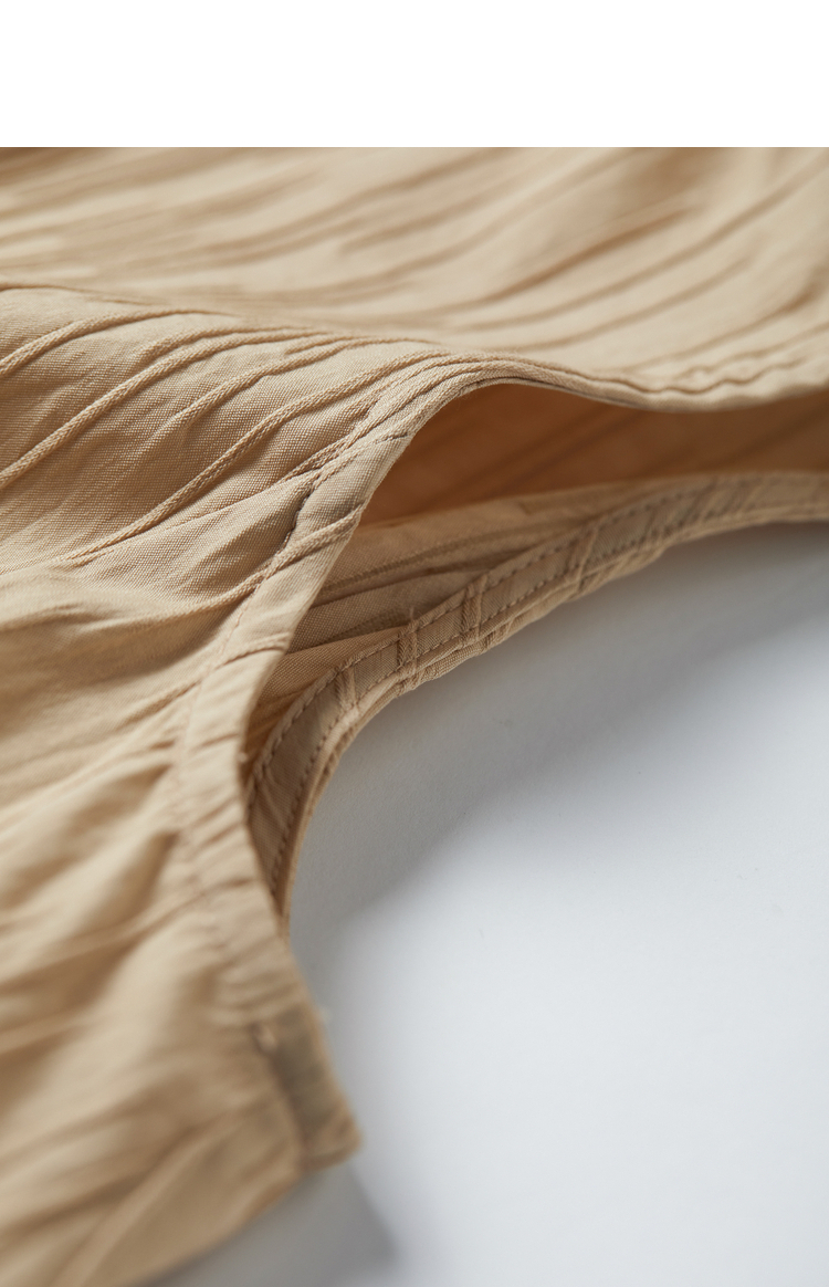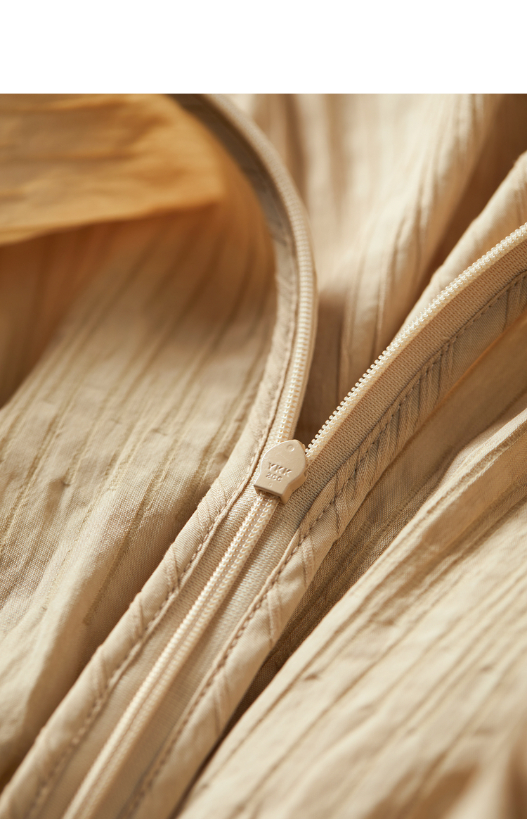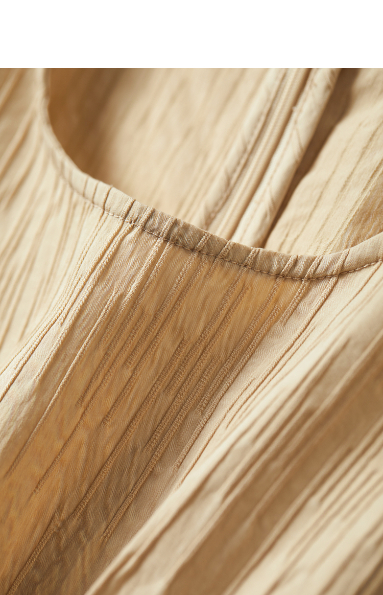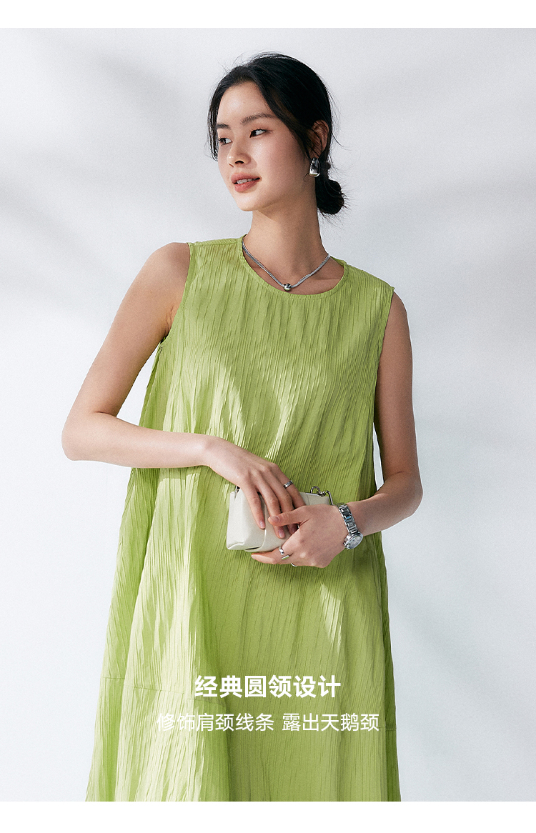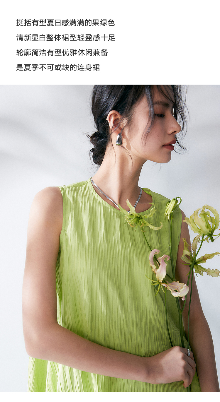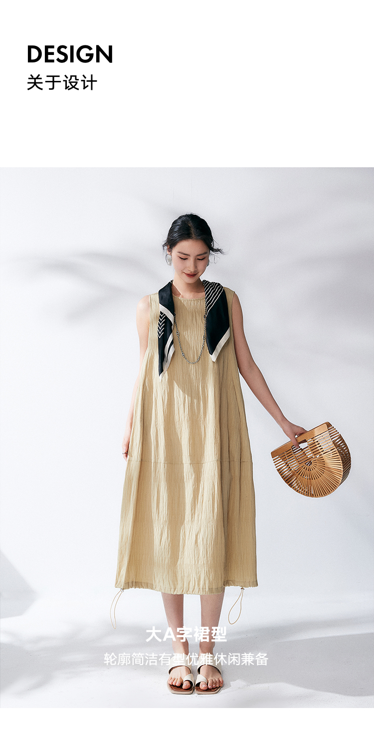 棉仓343616005-圆领立体花苞廓形抽绳立体肌理长款连衣裙