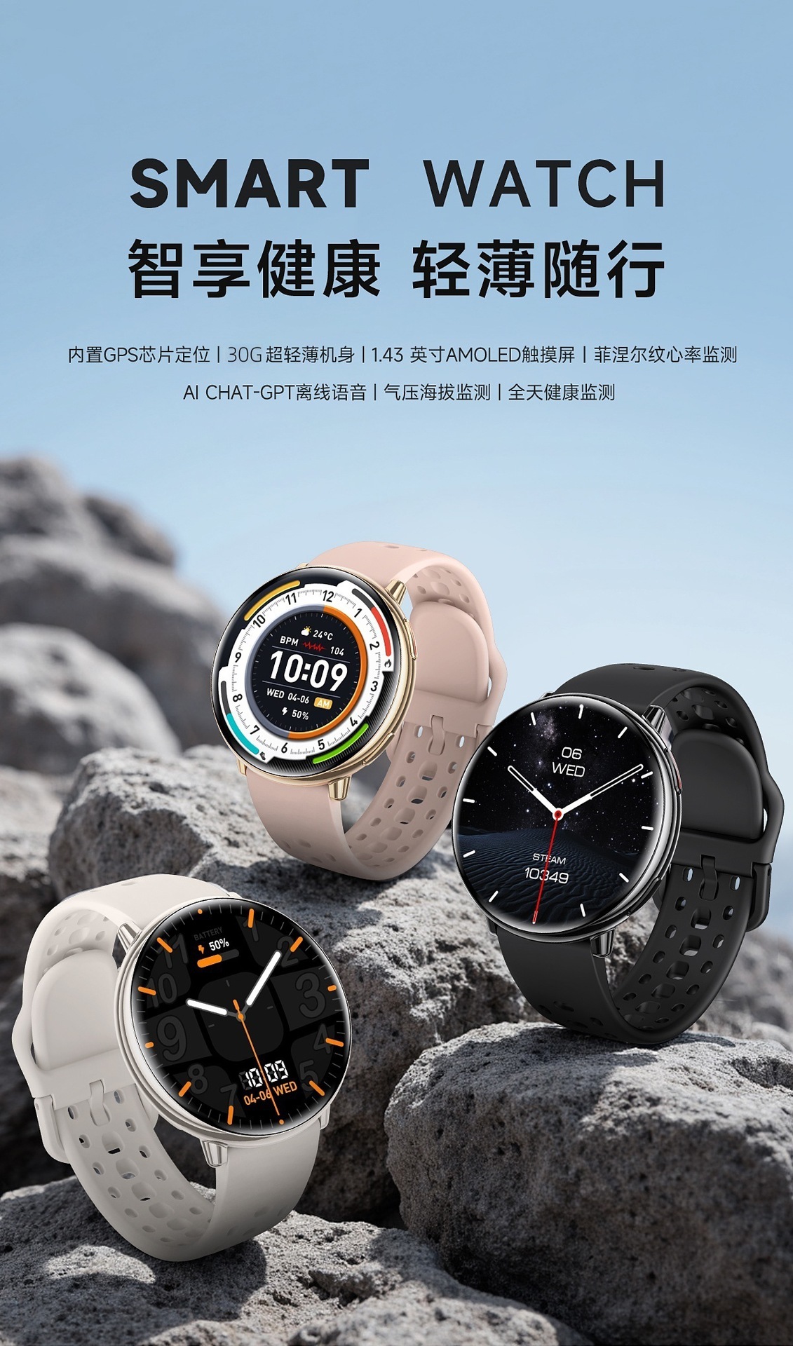 智能手表-户外配速跑步登山游泳泳姿运动手表GPS双频定位心率计步电子防水
