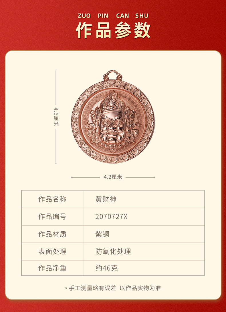 铜师傅《黄财神》紫铜铜挂件 家居装饰工艺品吊坠